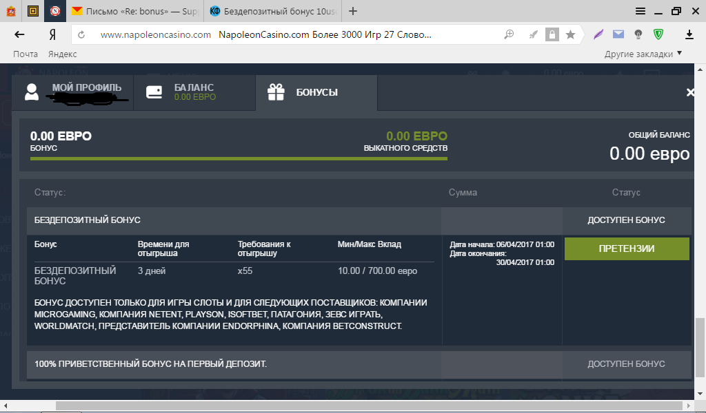 Благодарим Вас за регистрацию в Napoleon Casino.