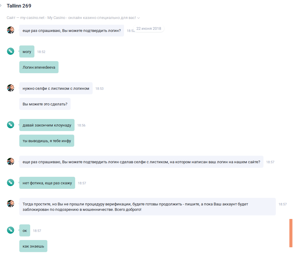 enevedeeva, что без завершения верификации не сможет продолжить вывод, но тот никак не хотел соблюдать условия, которые принял при регистрации, и был забанен.