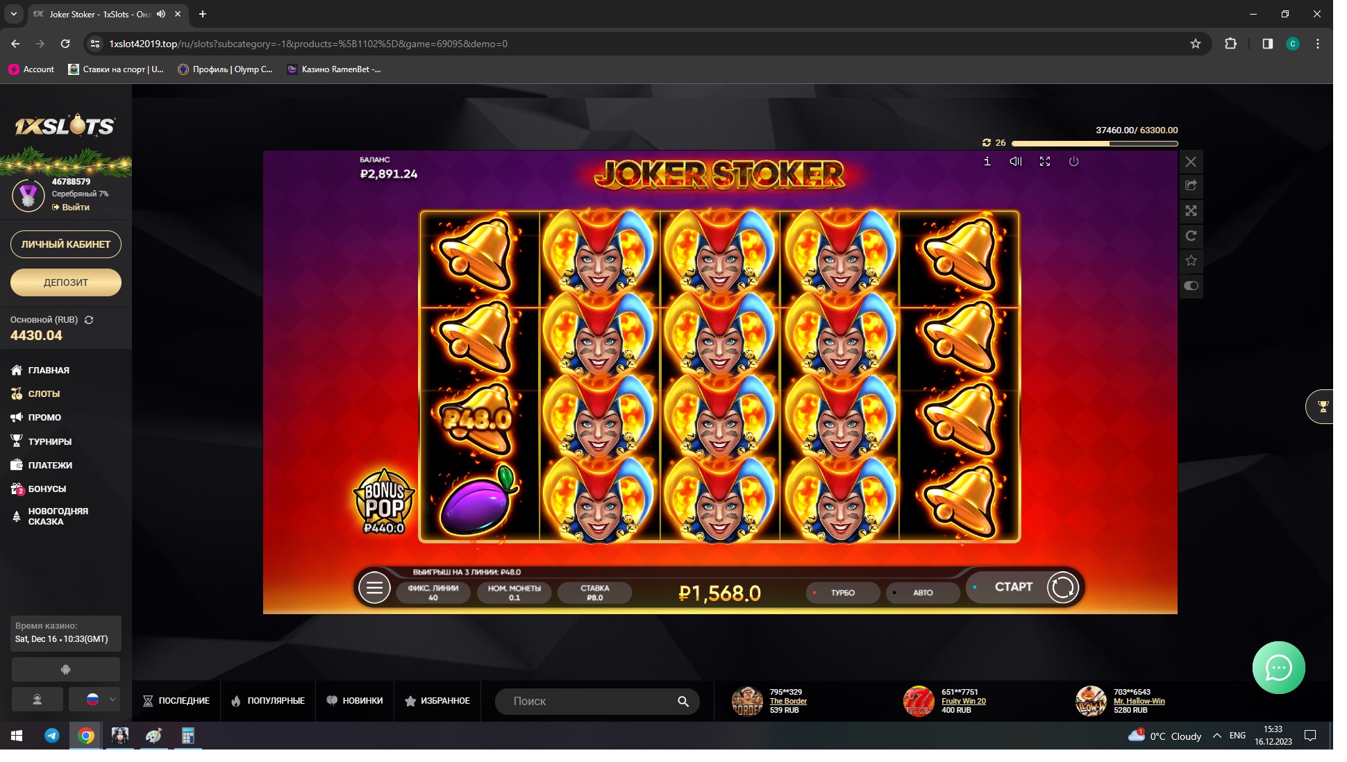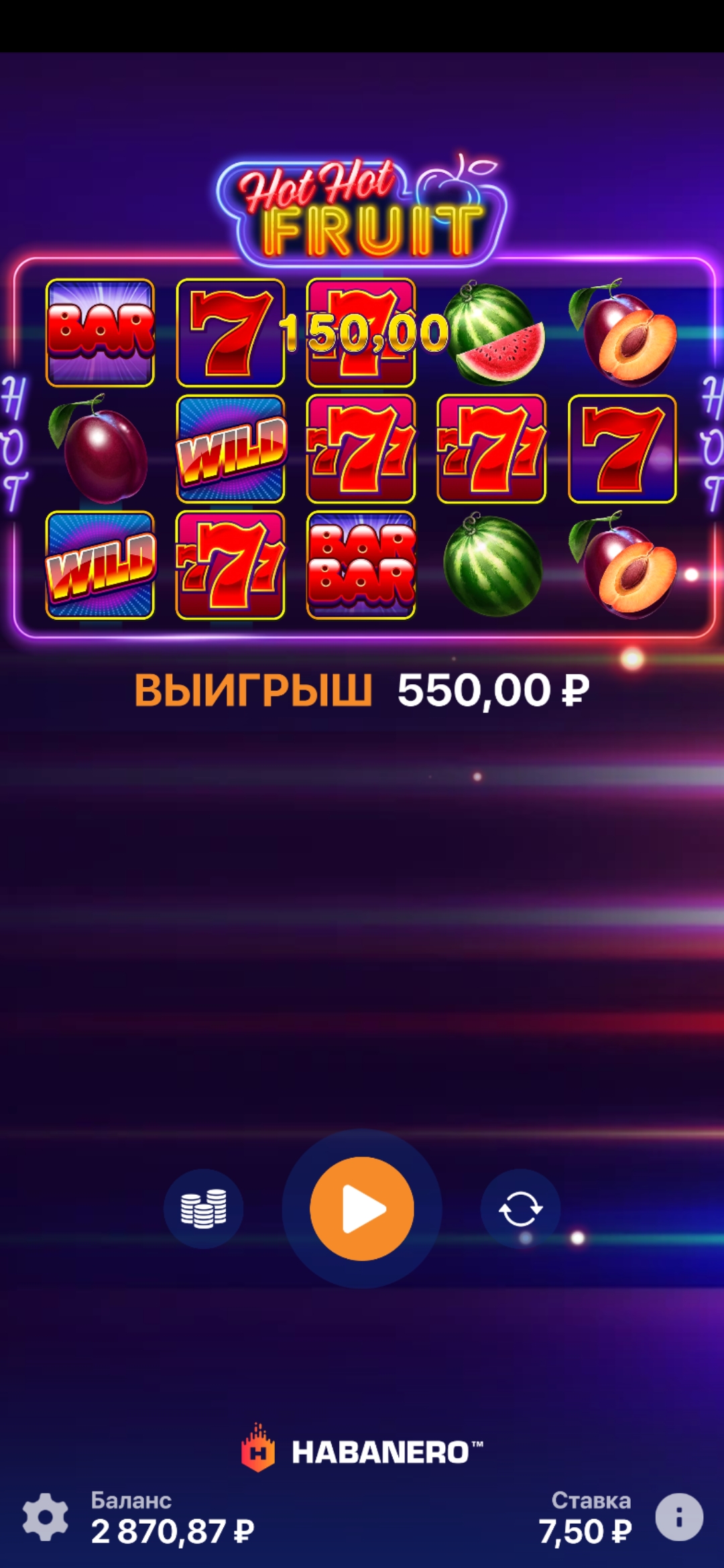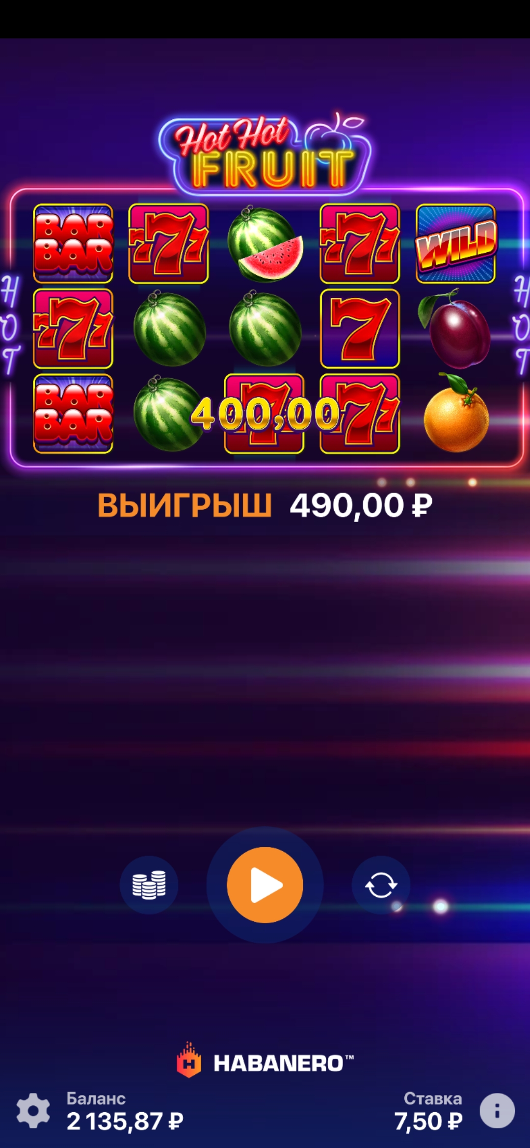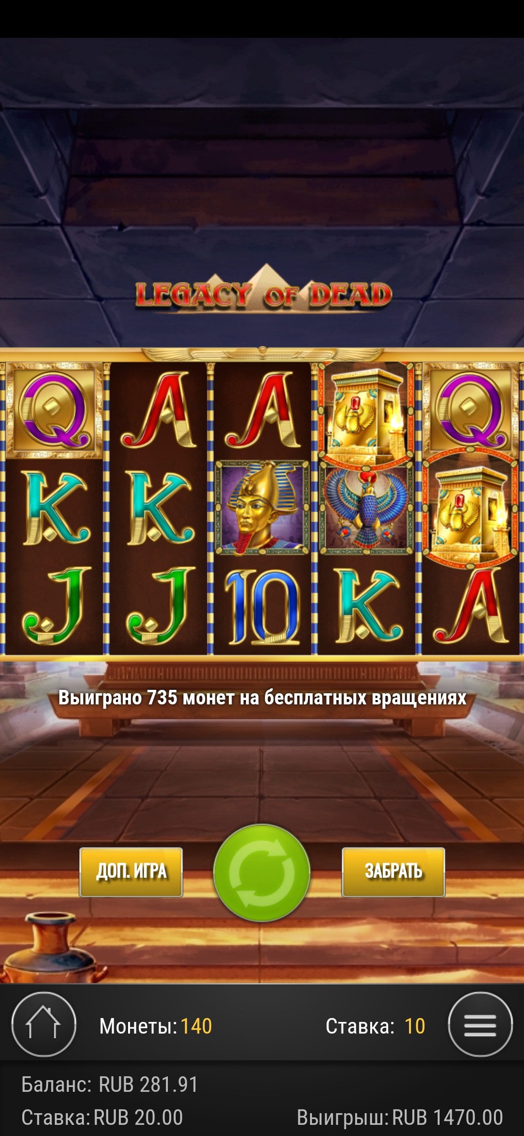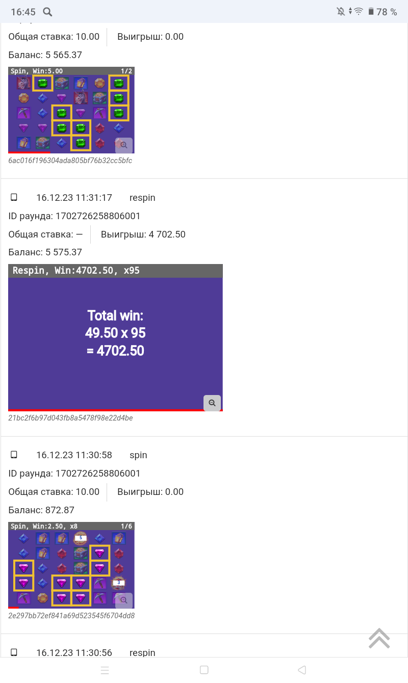 Скрины из истории ставок не принимаютсяСтавка 10 руб, спин выдал