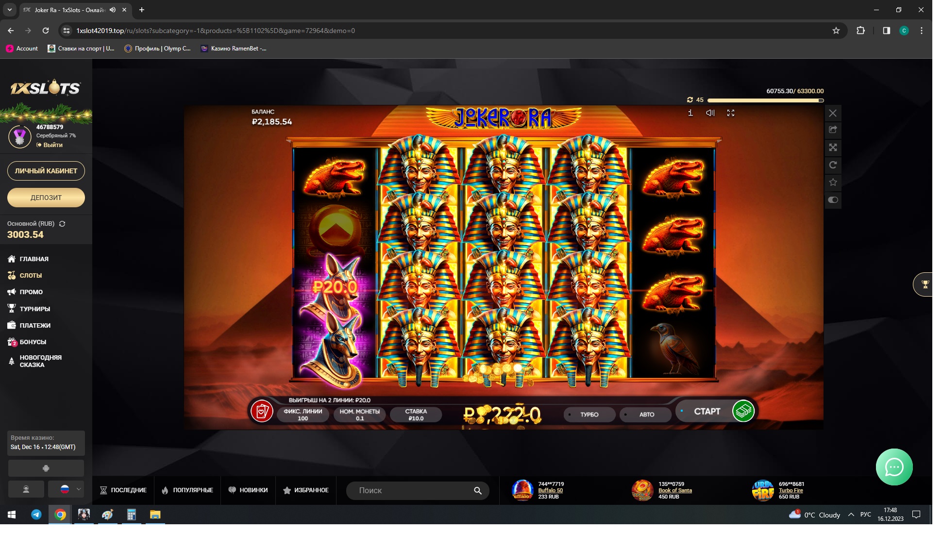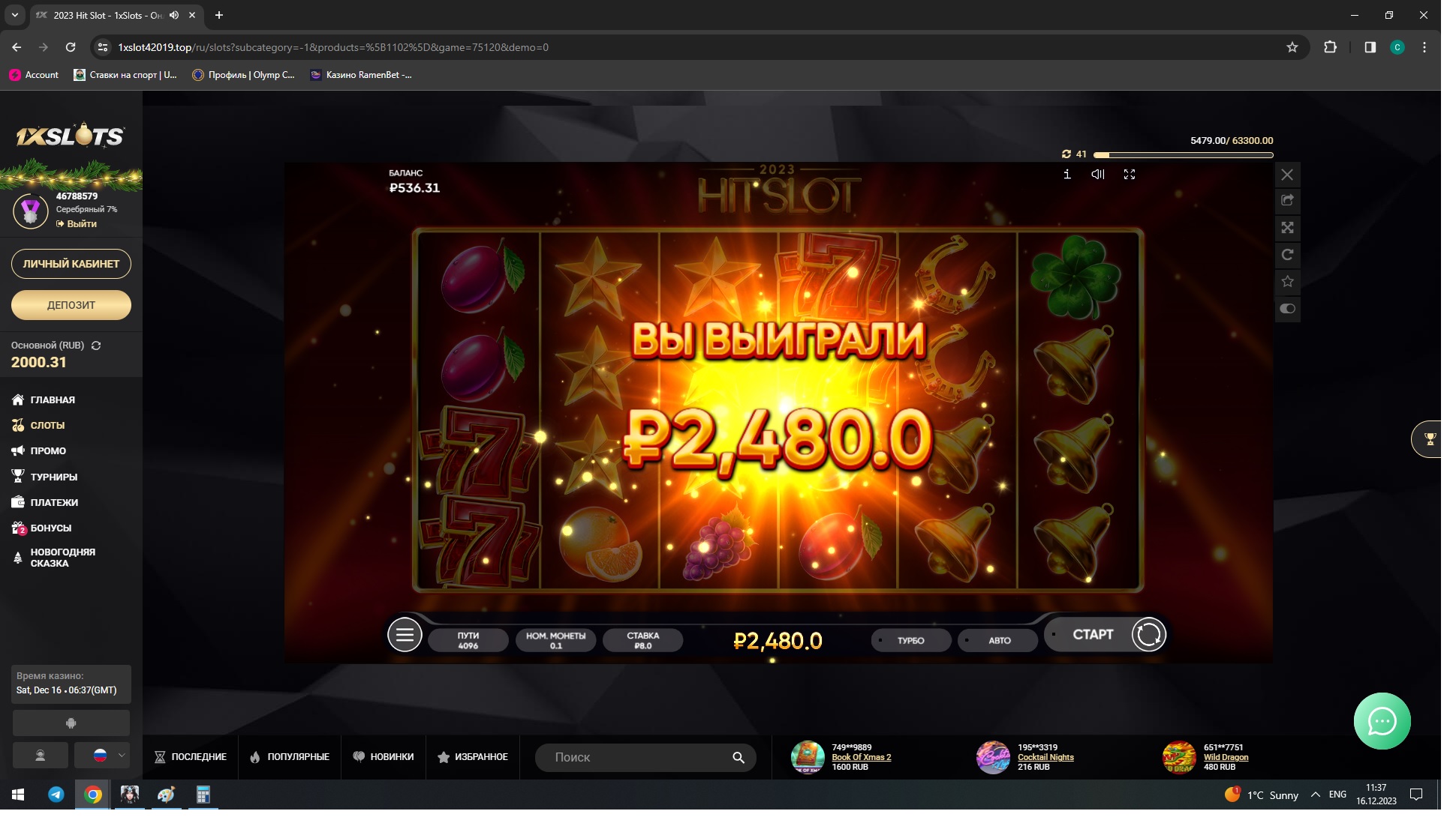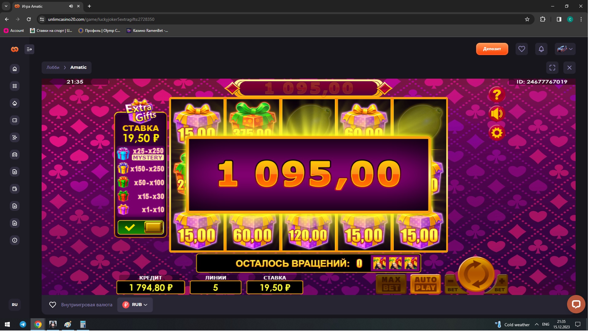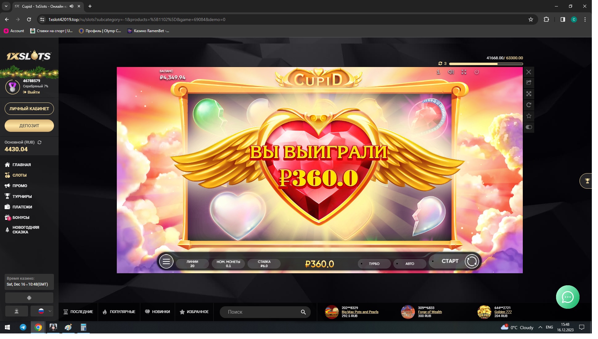Скрины из истории ставок не принимаютсяСтавка 10 руб, спин выдал