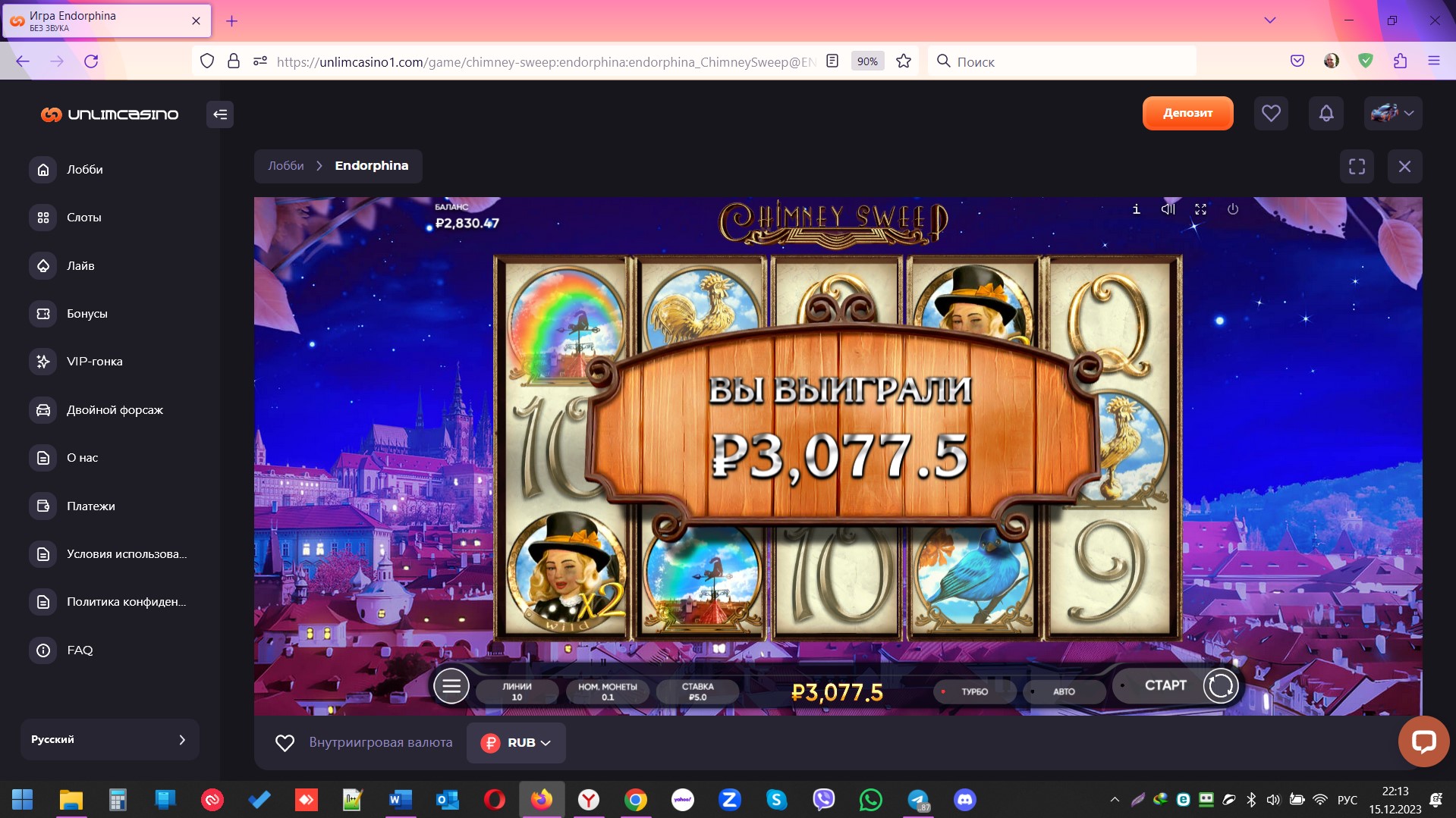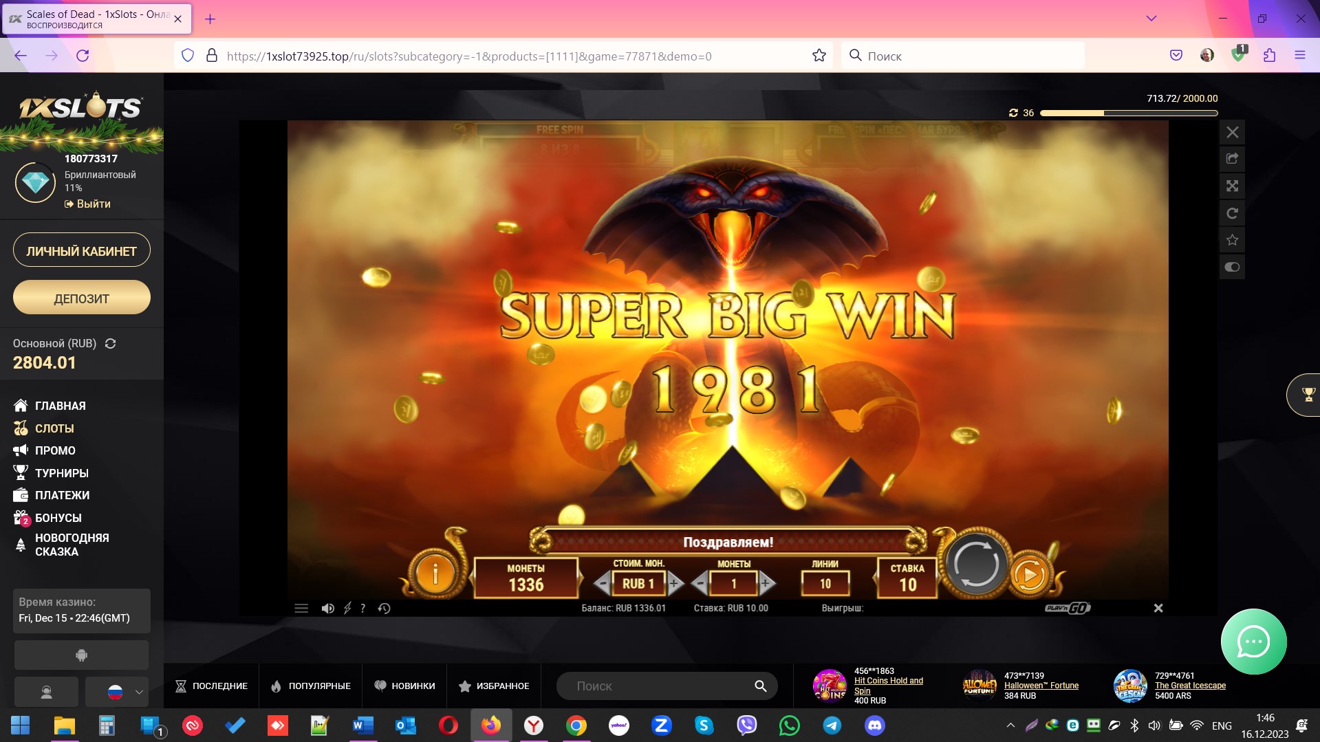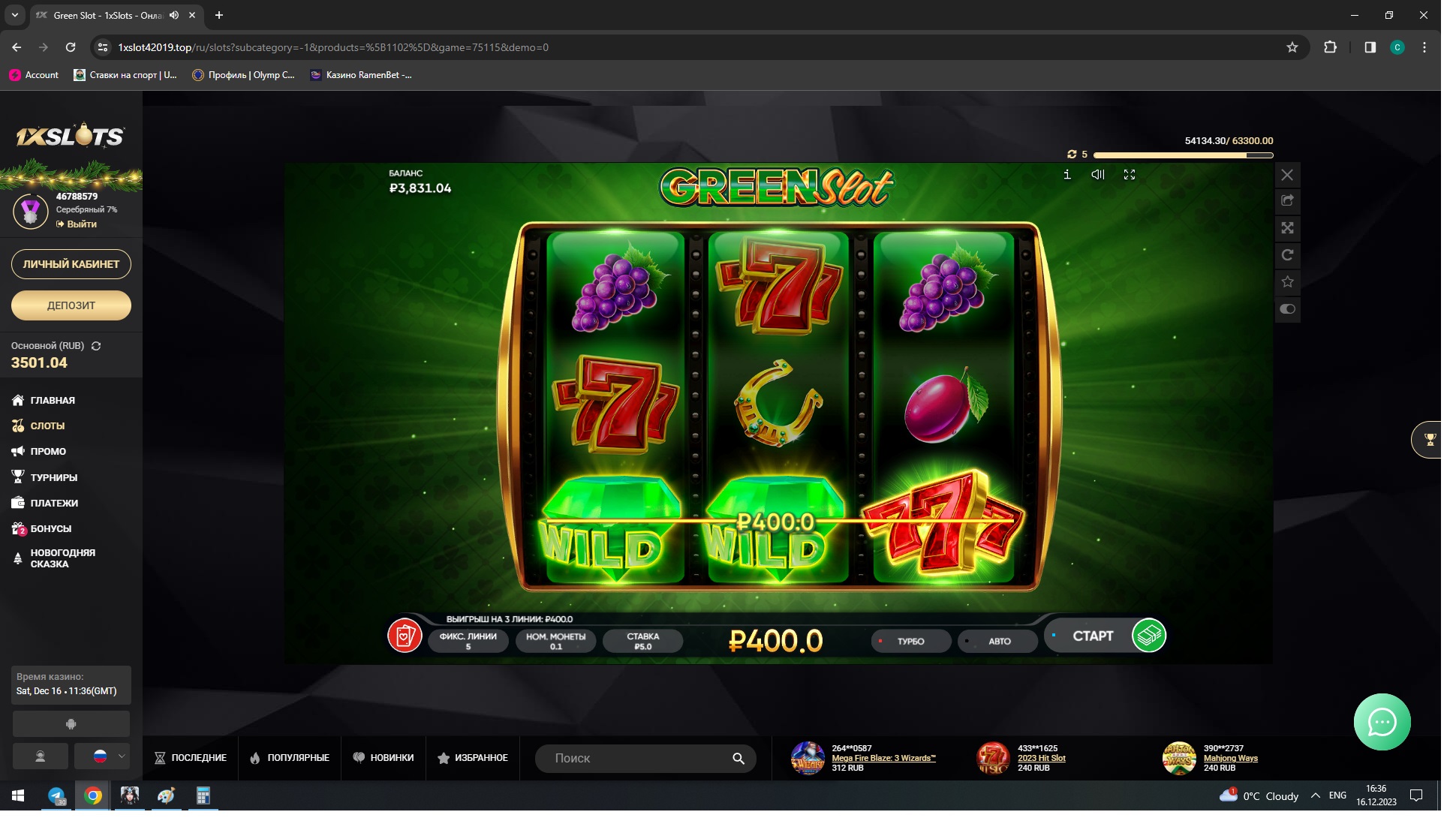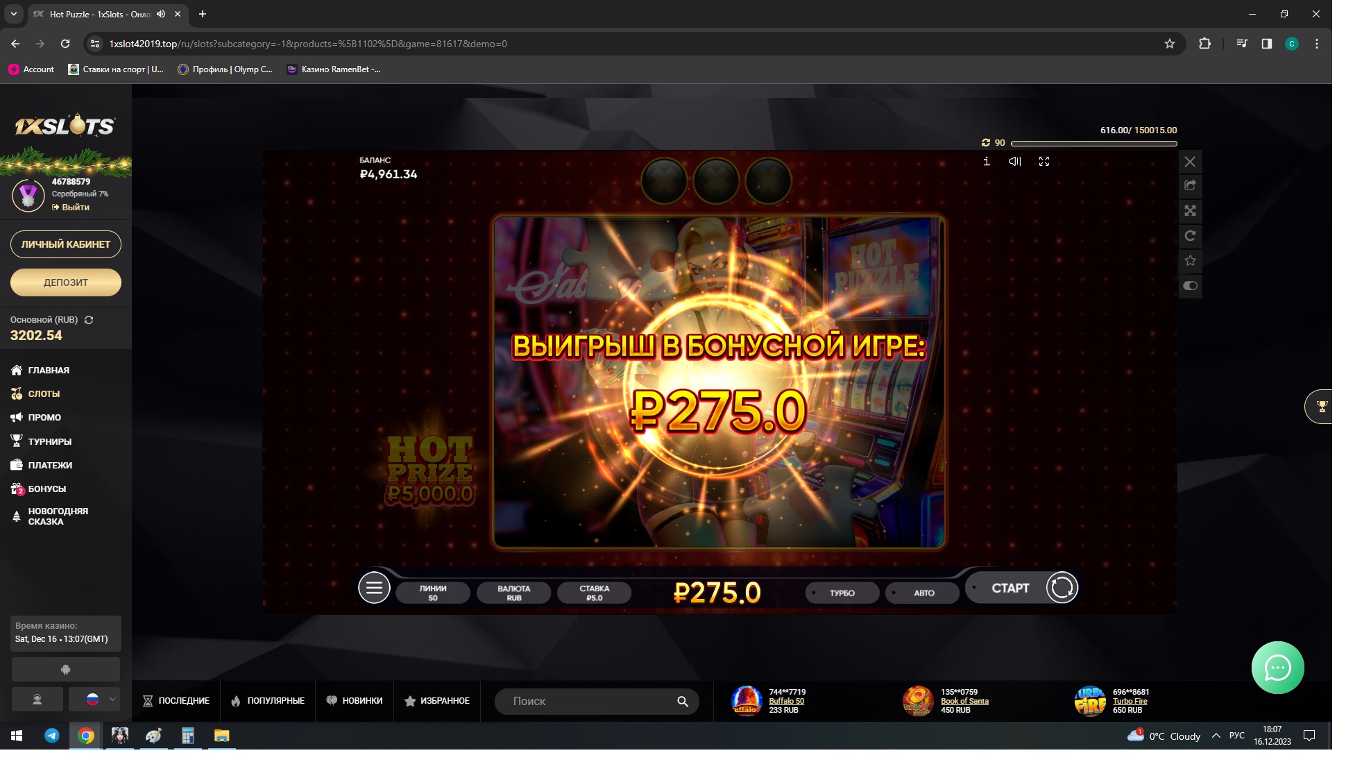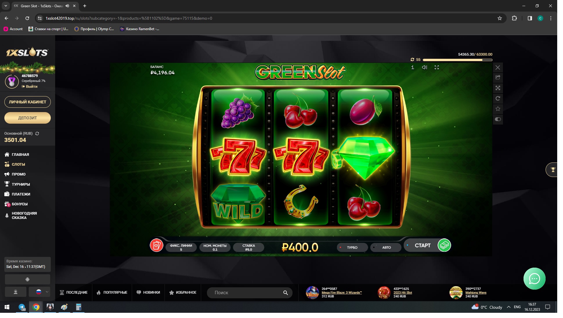 Скрины из истории ставок не принимаютсяСтавка 10 руб, спин выдал