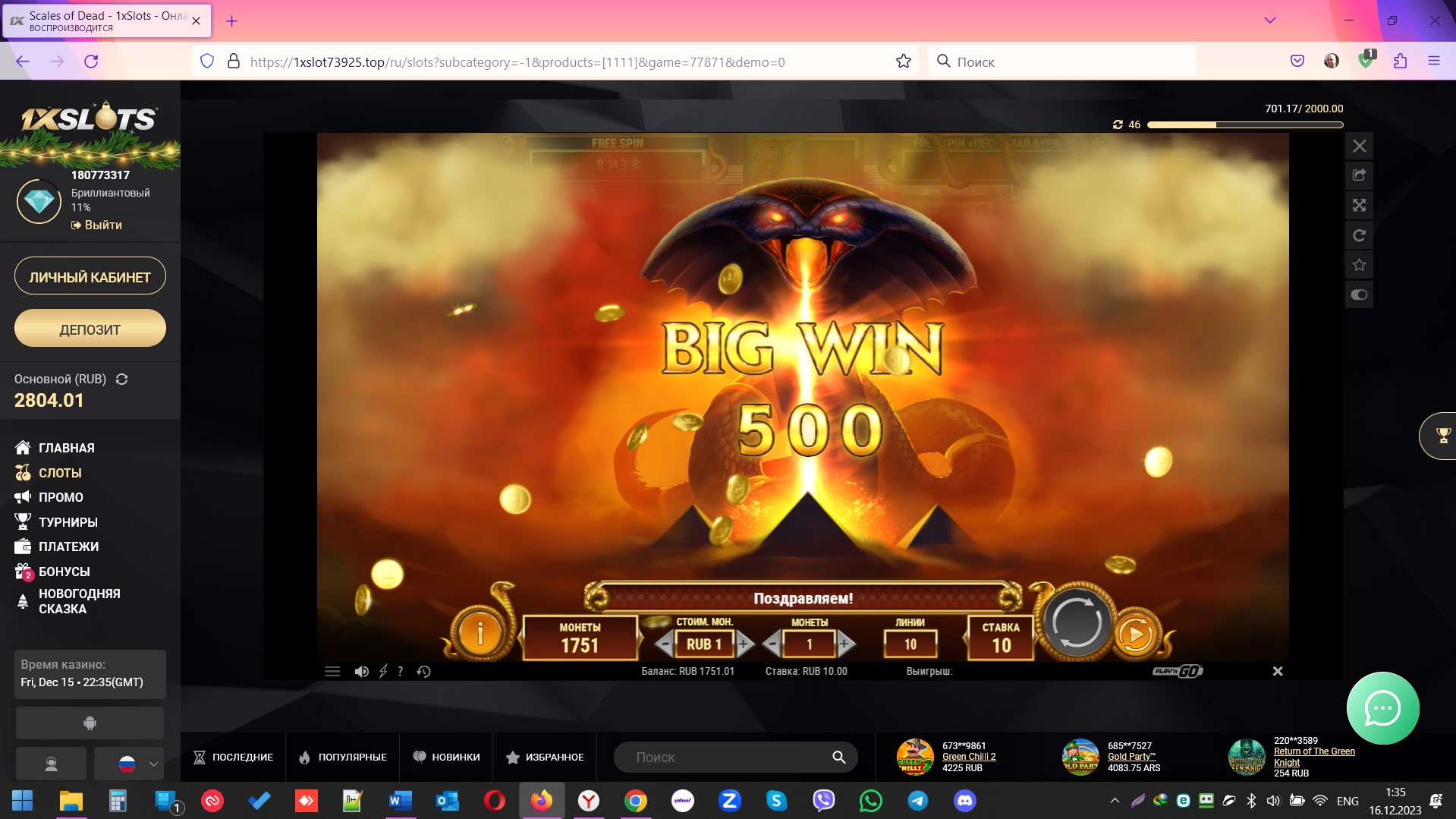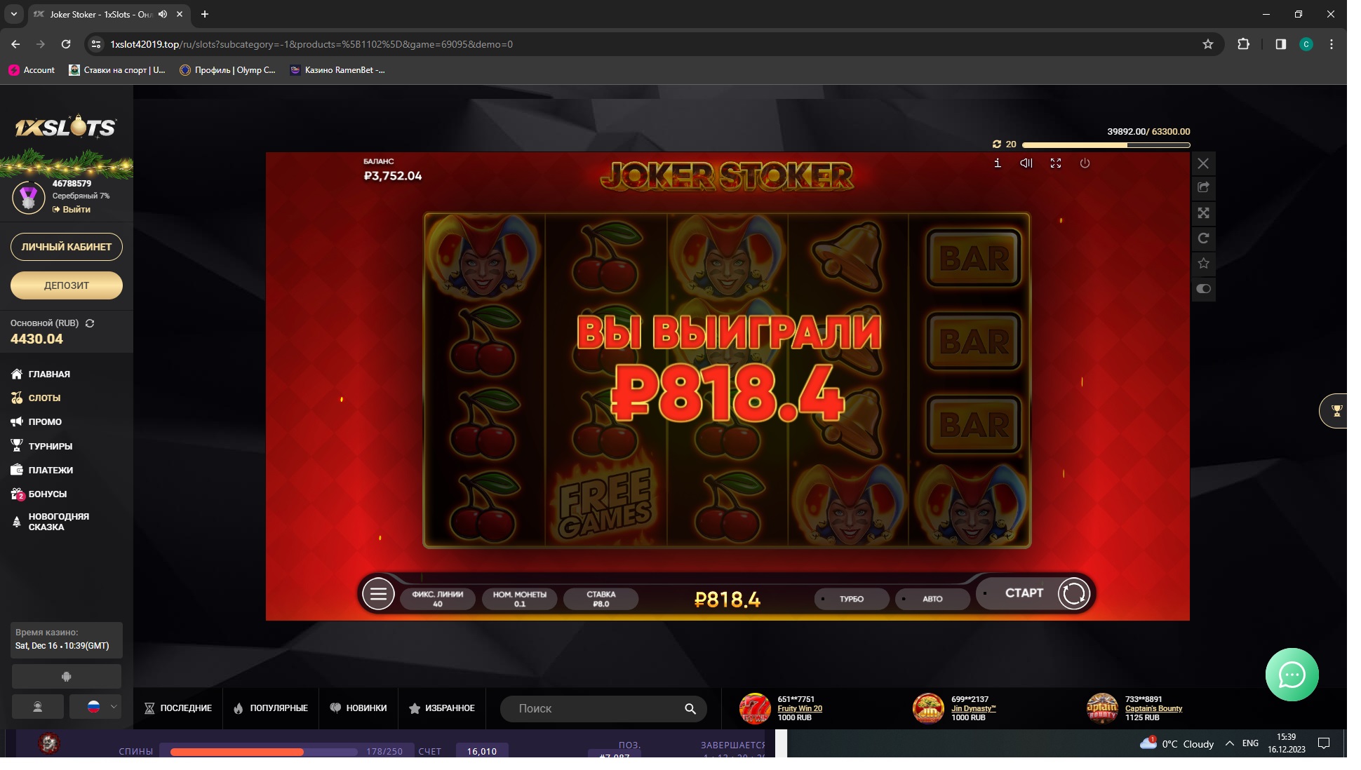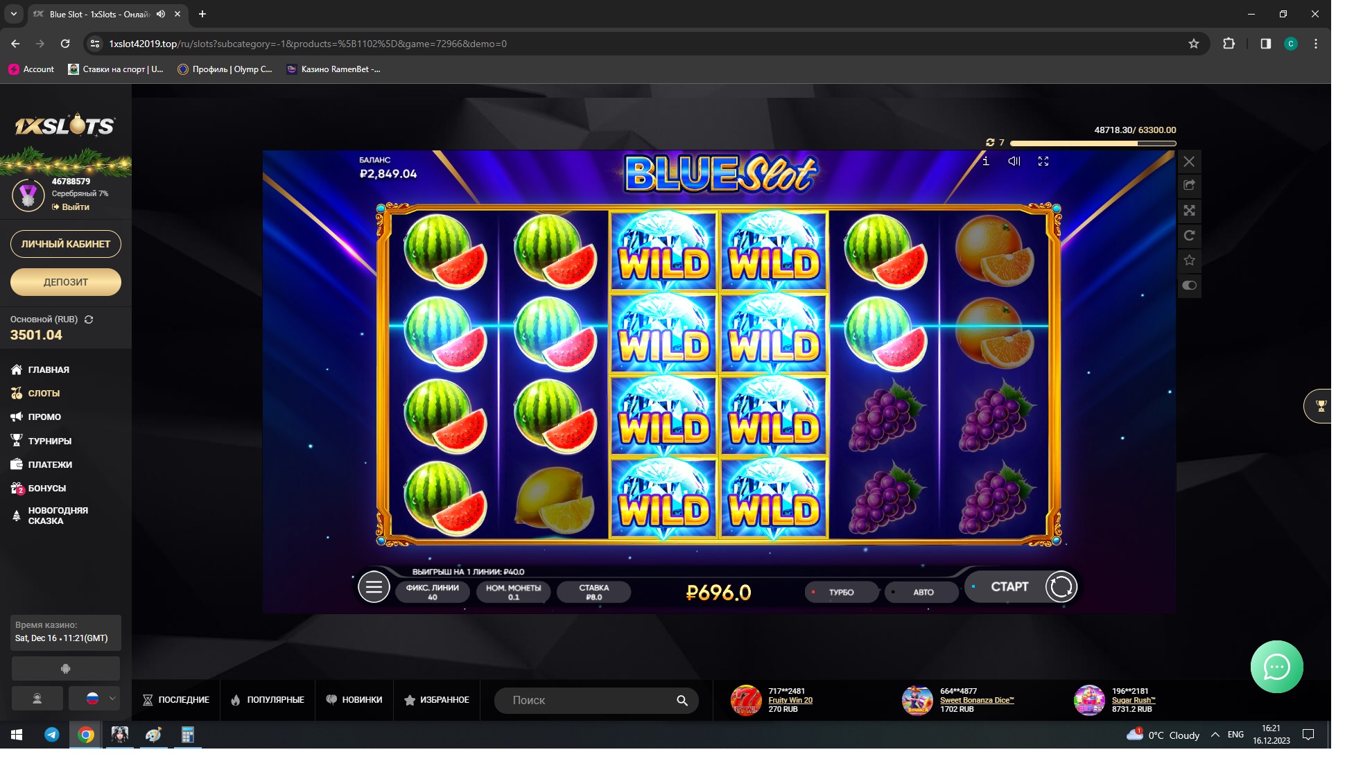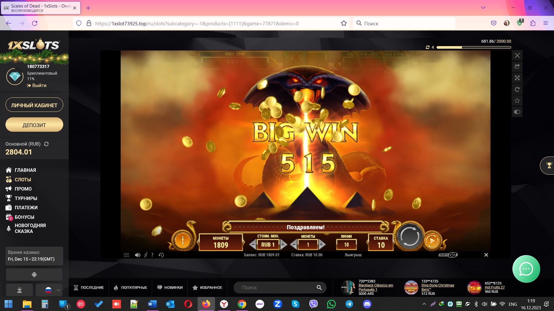 Скрины из истории ставок не принимаютсяСтавка 10 руб, спин выдал