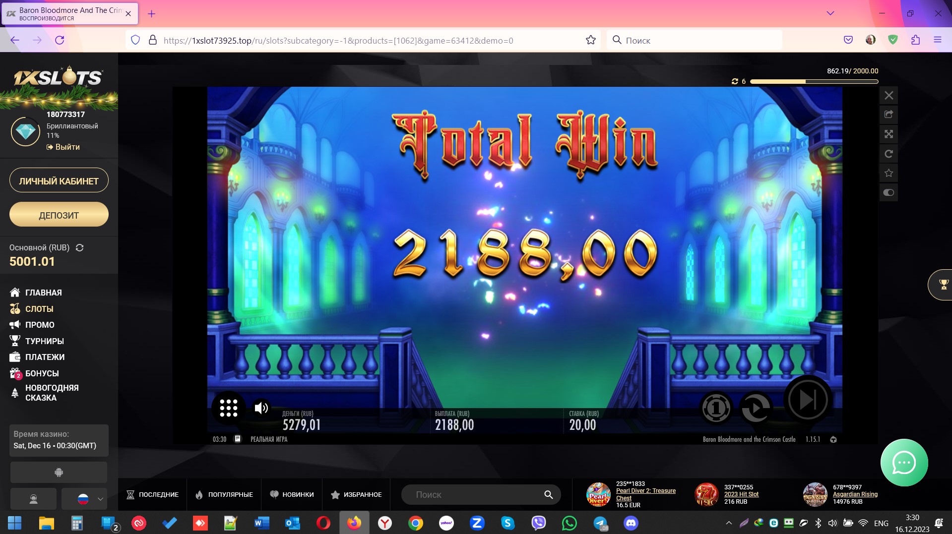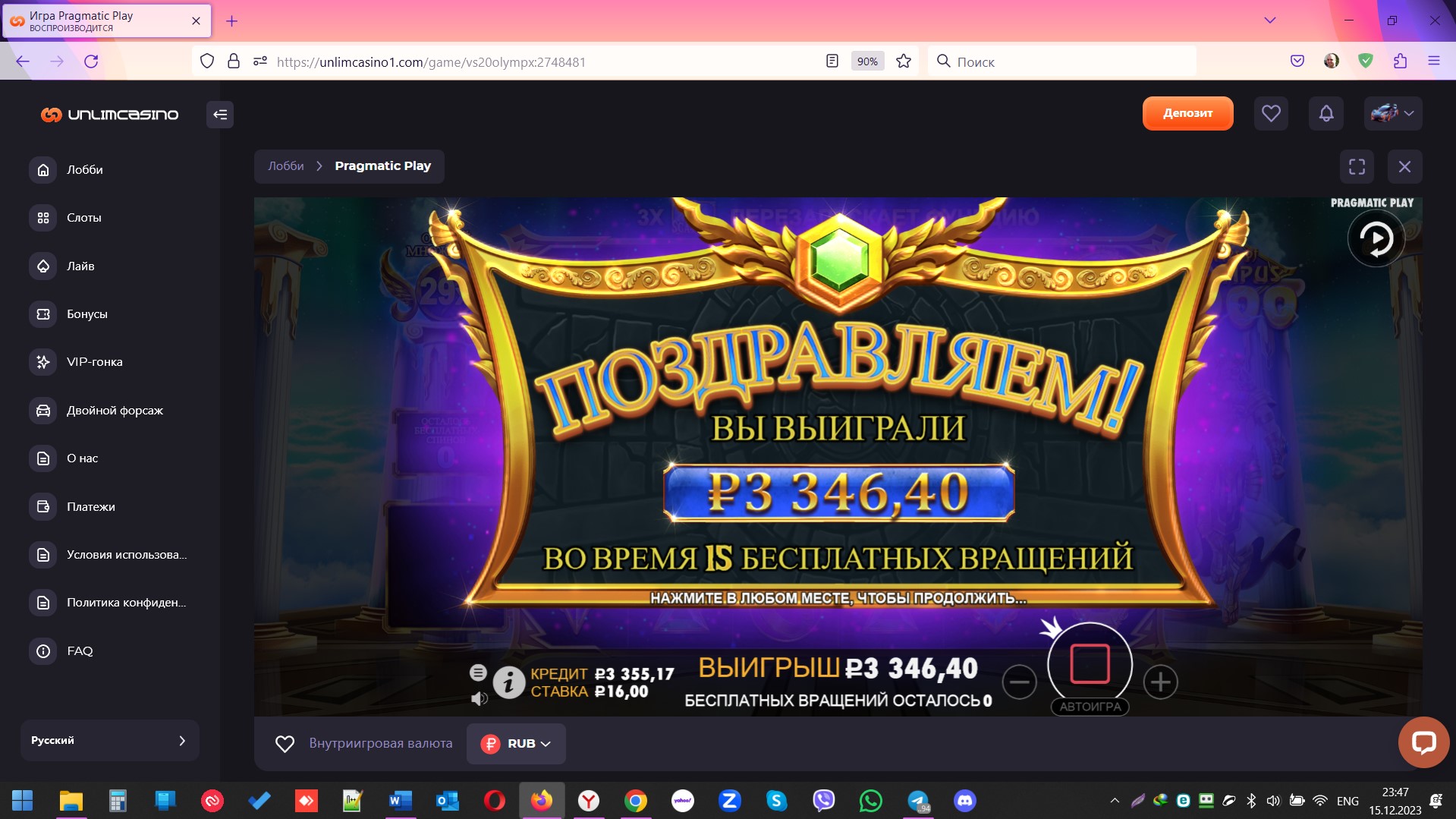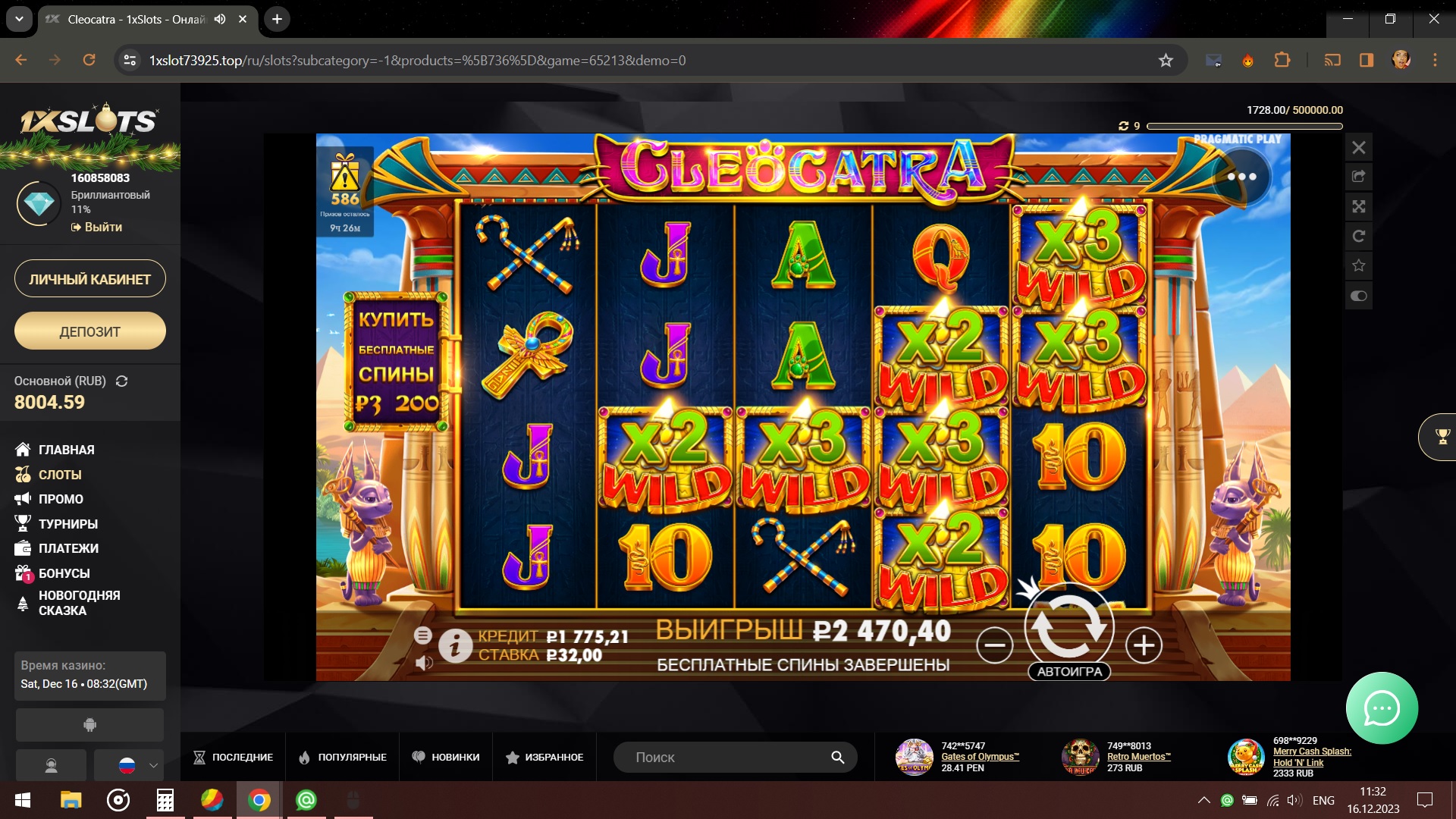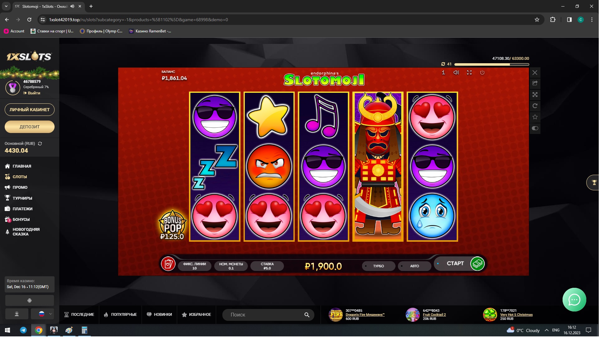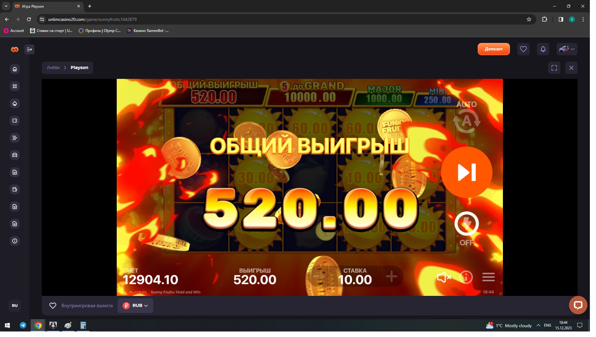 Скрины из истории ставок не принимаютсяСтавка 10 руб, спин выдал