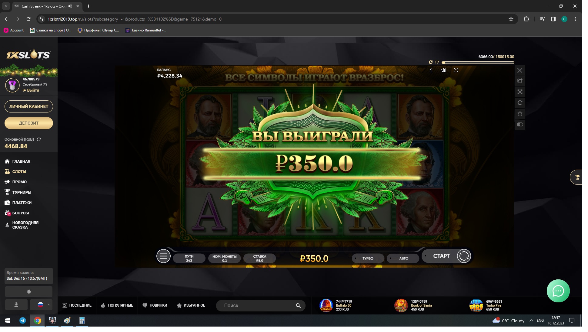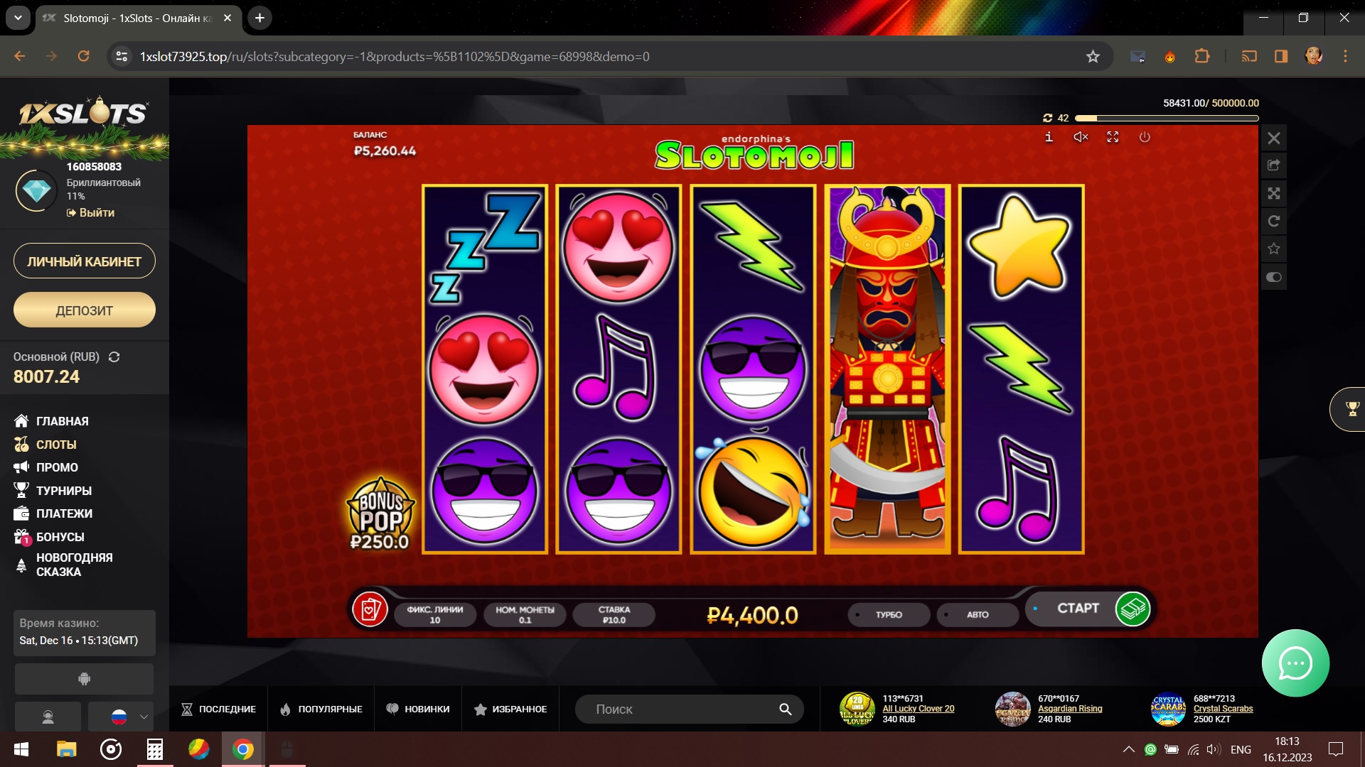 Нет? Тогда регистрируйся по промокоду CASINOMY и забирай 200% + 100 FS + 5$ free bet при первом депозите от 2000 руб!