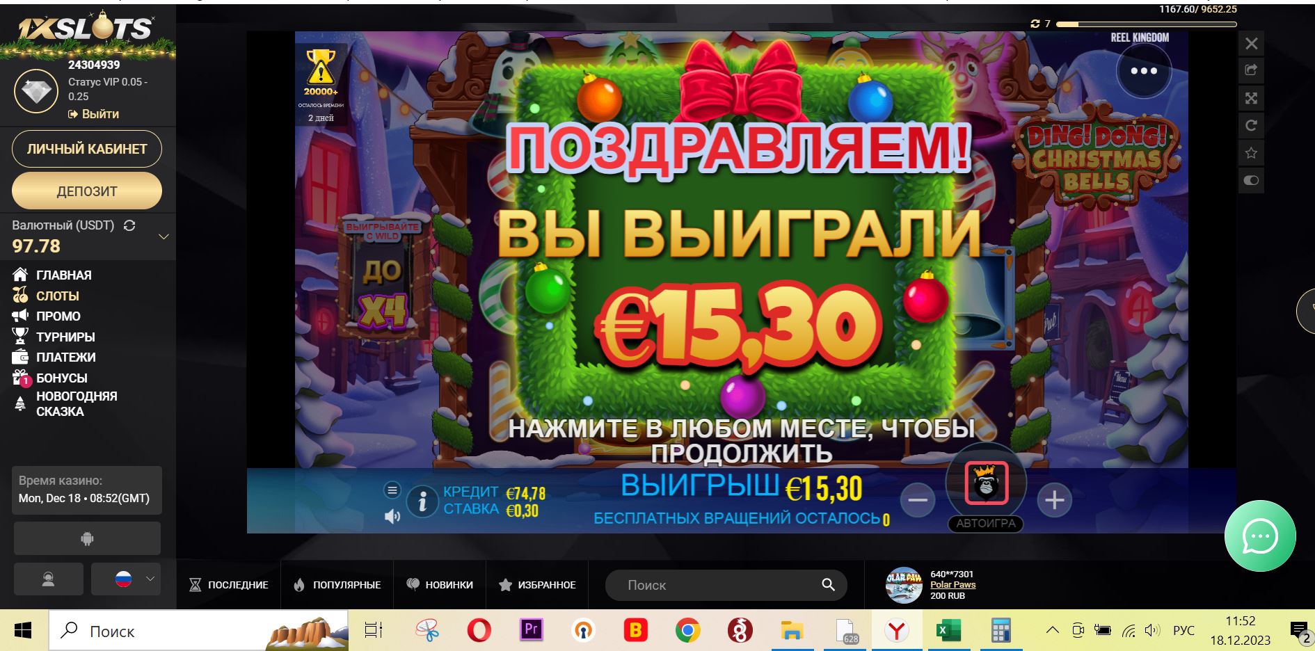 Сегодня скринов маловато, наверное как и я в ожидании кешбэка🤣, я вчера сферу в 1хслотсе взял 300% бонус, и пожалел, -30к и не отмыл