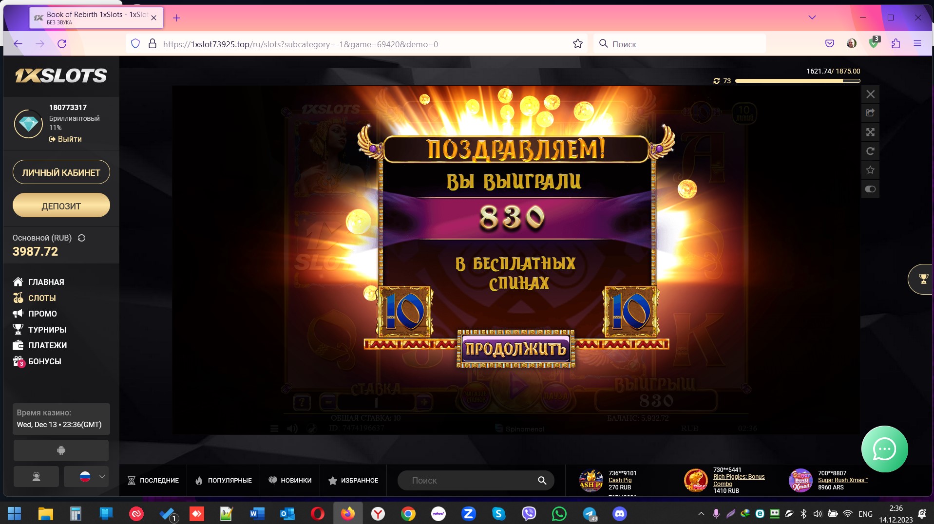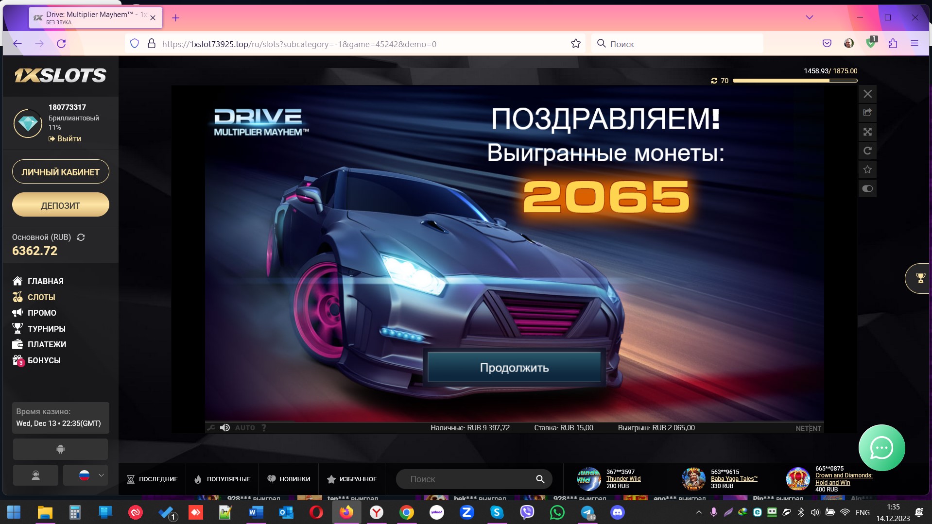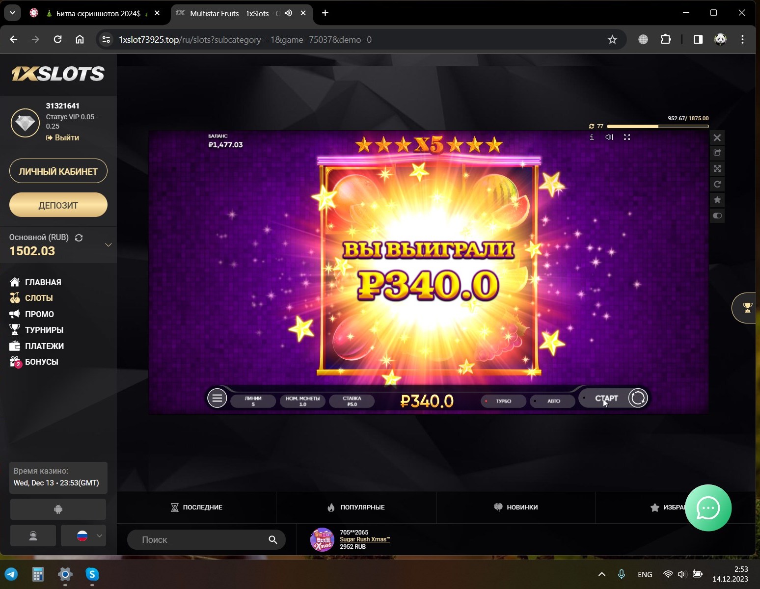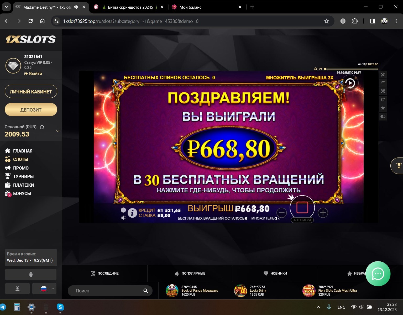 ну так чётное же: 1x slotsПиши в каком казино заносы...