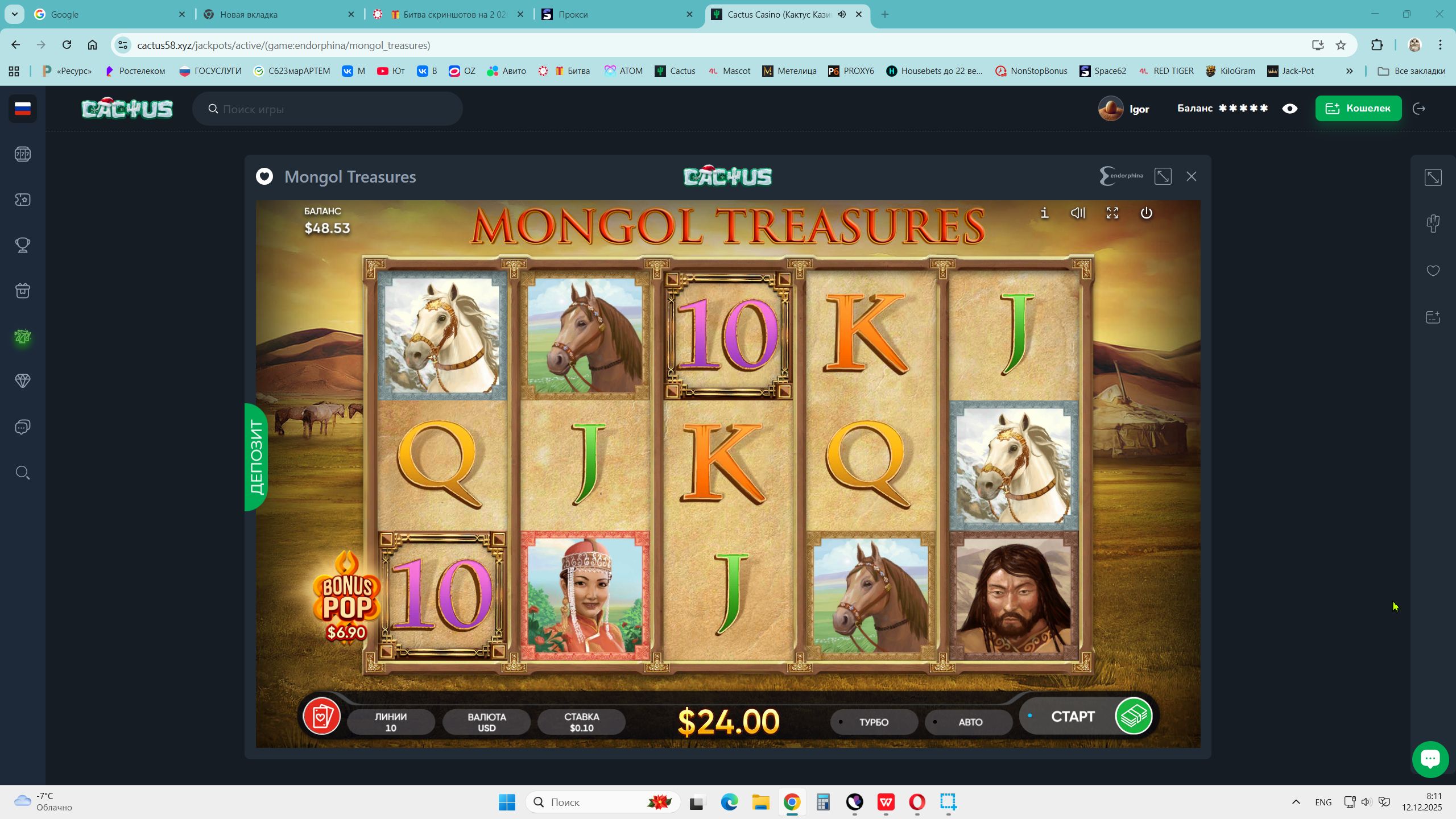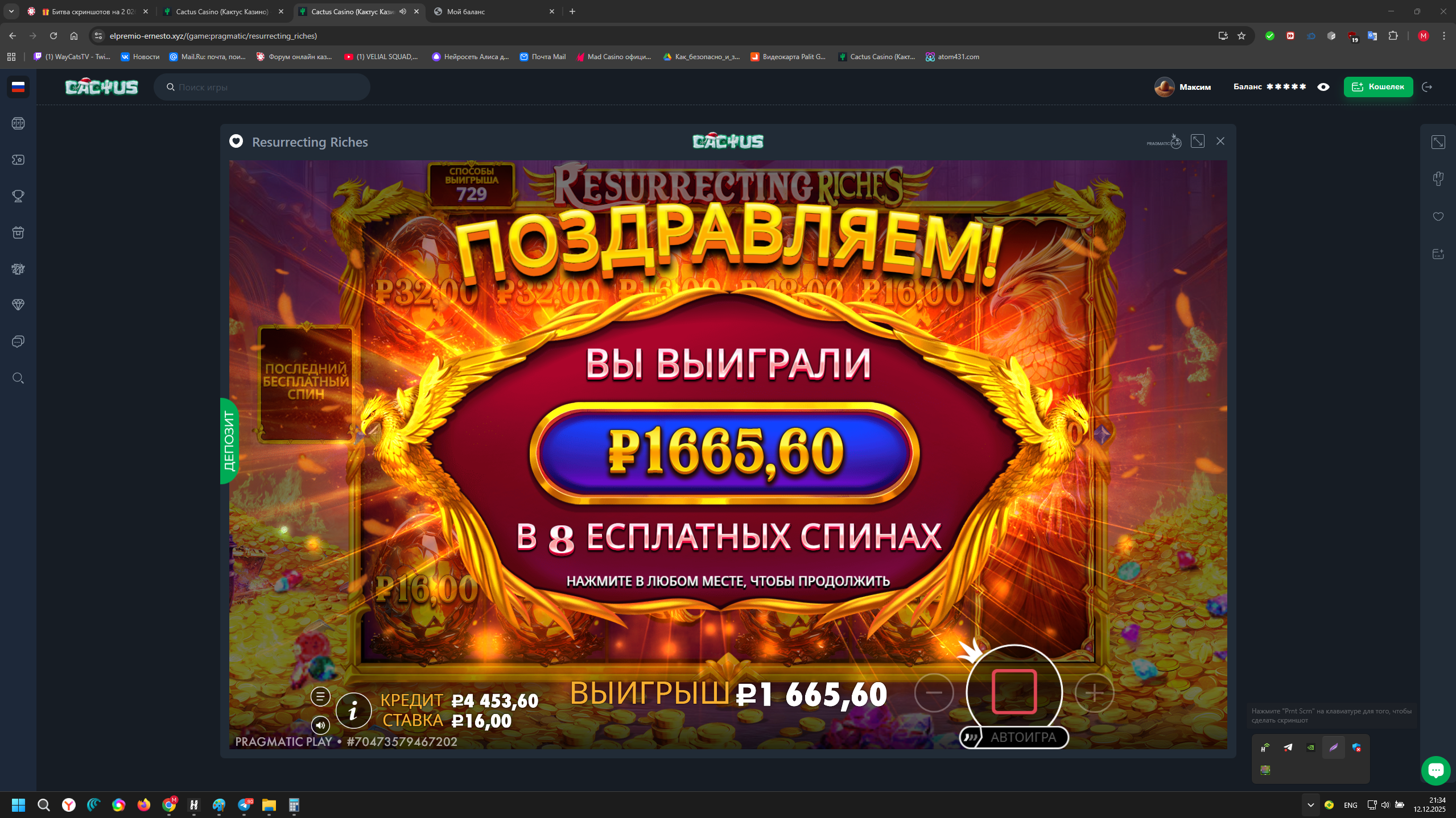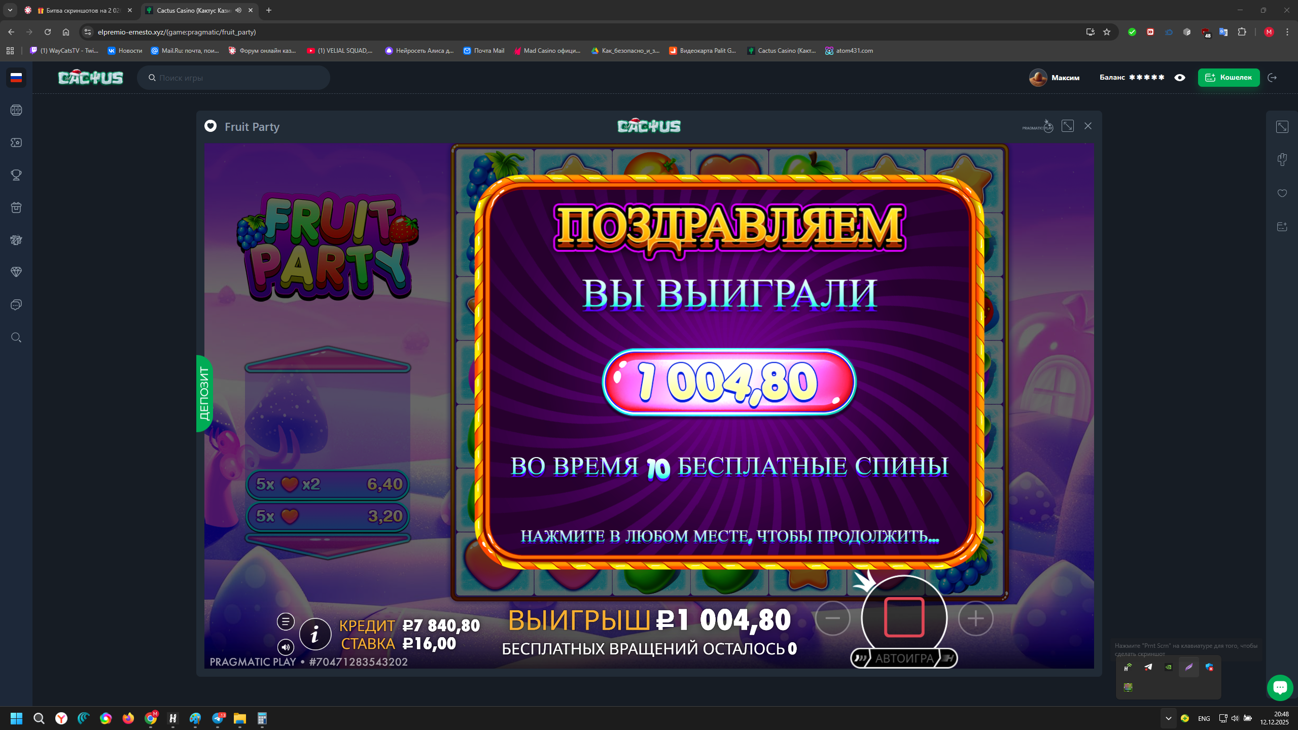Сегодня скрины считаются с тройным коэффициентом в казино Cactus!