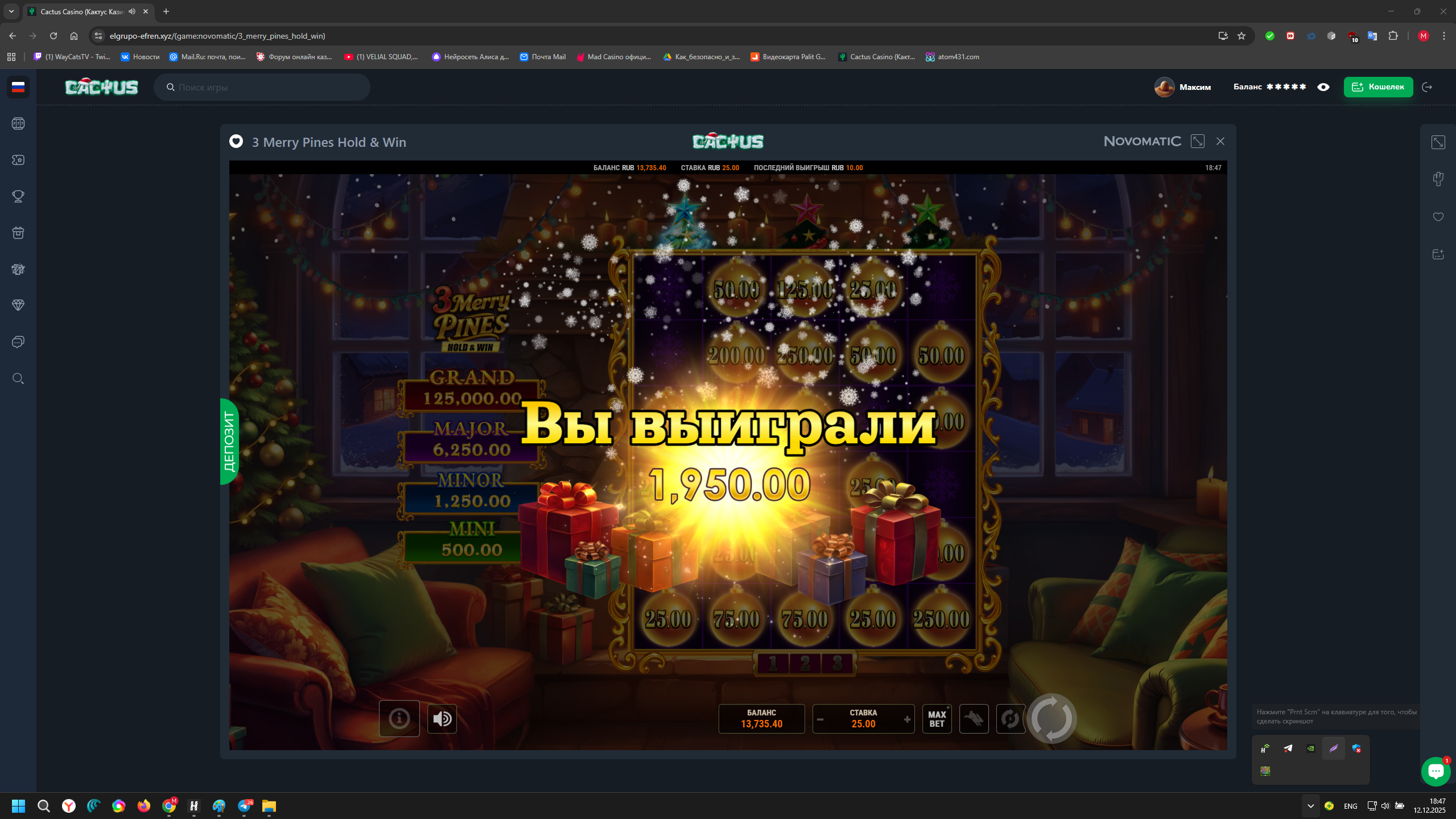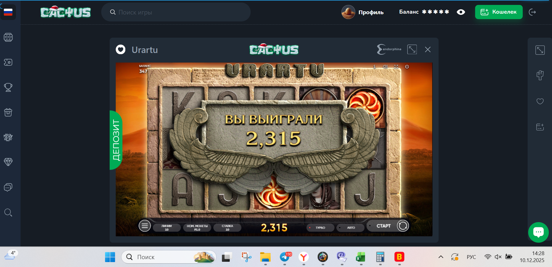 Казино Cactus 10, 12, 14, 16, 18, 20, 22, 24, 26, 28 декабря