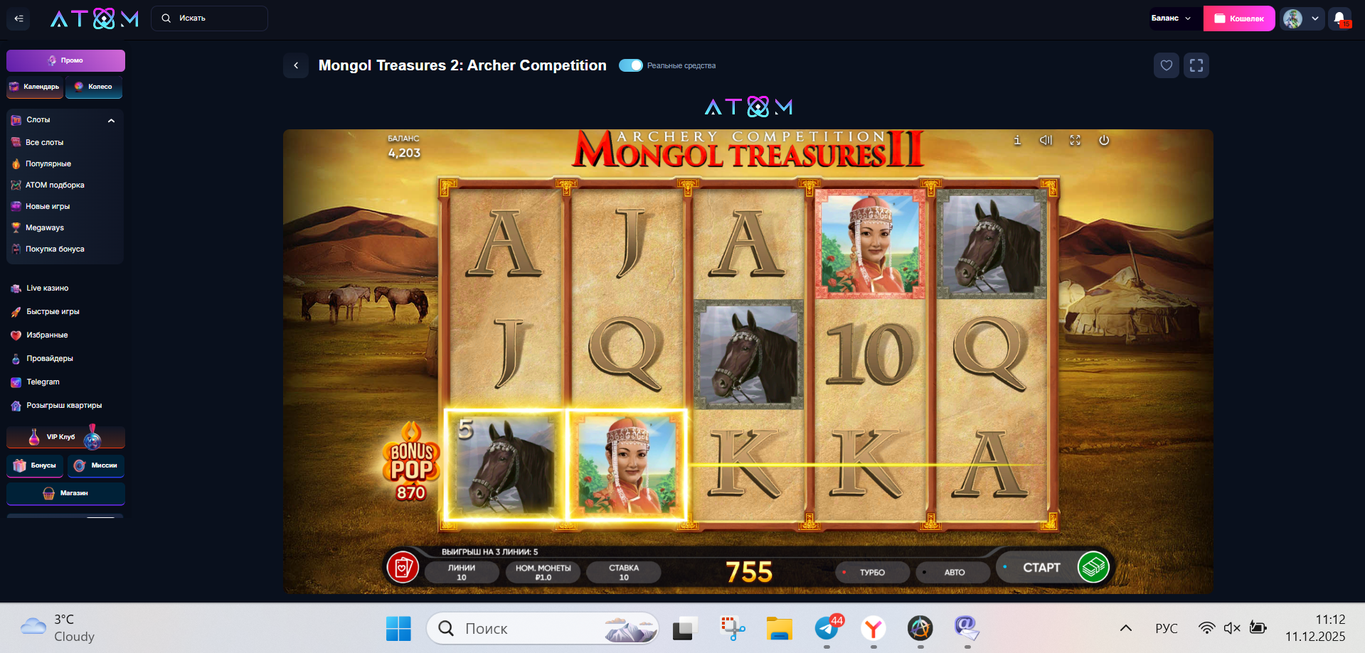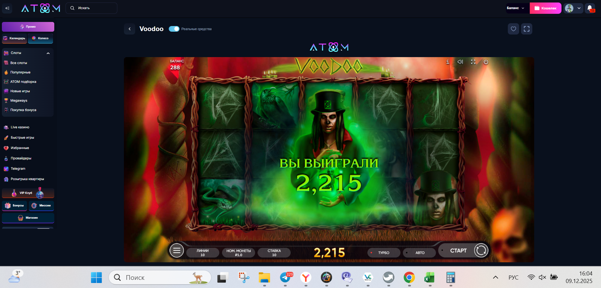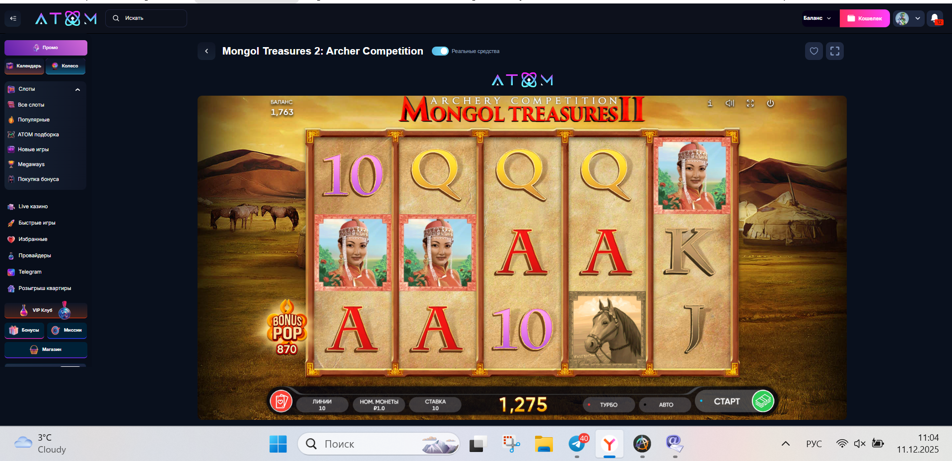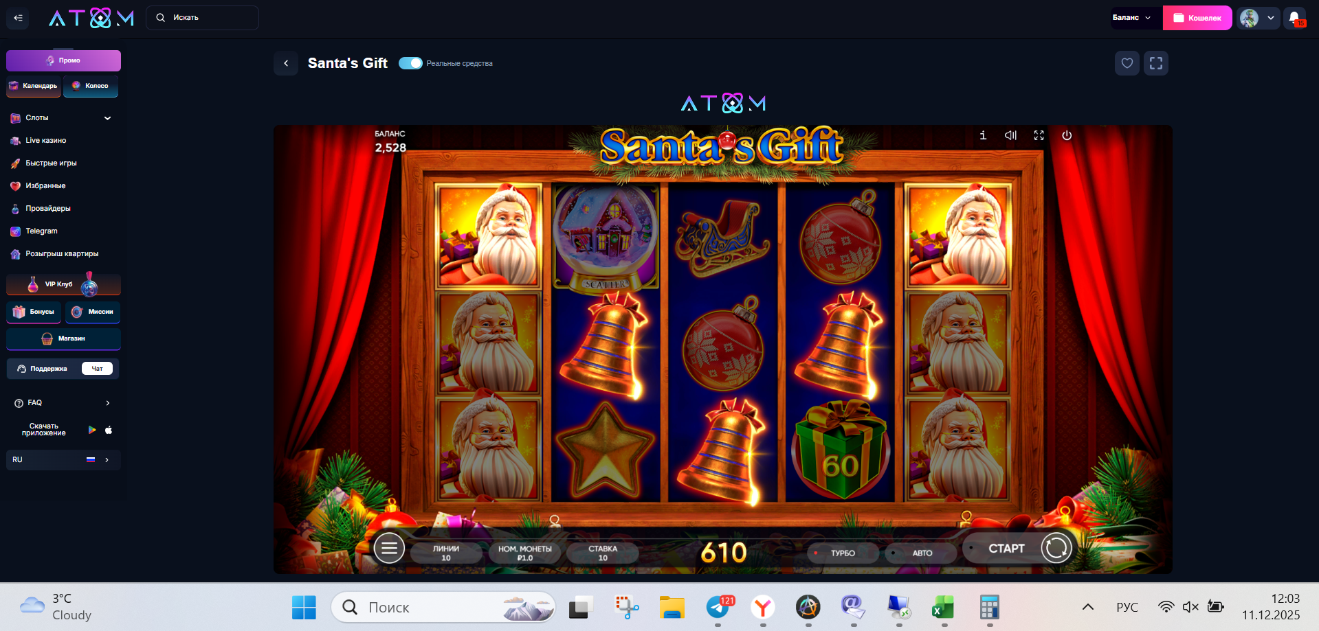 Казино Atom 9, 11, 13, 15, 17, 19, 21, 23, 25, 27 декабря