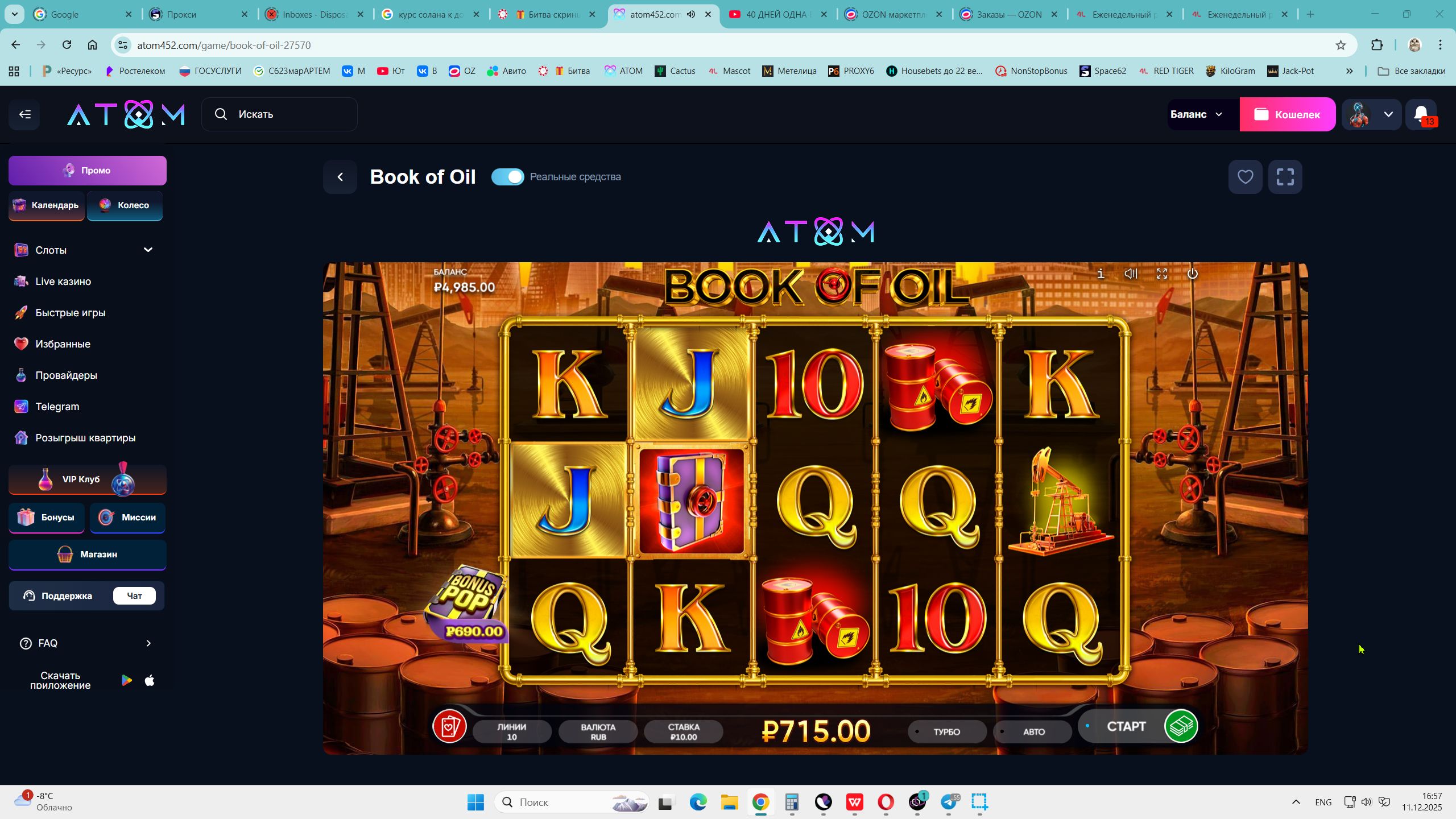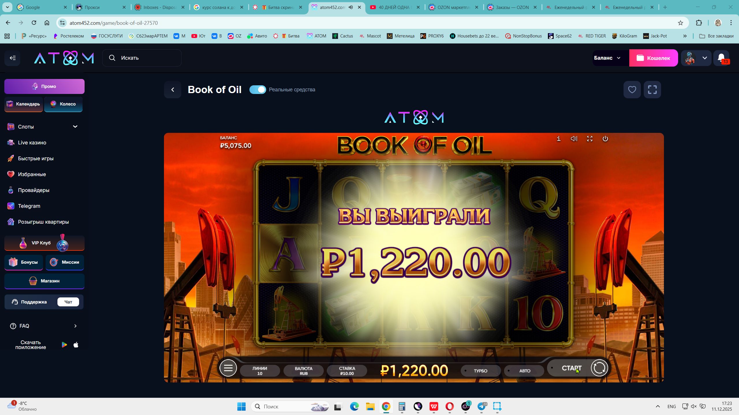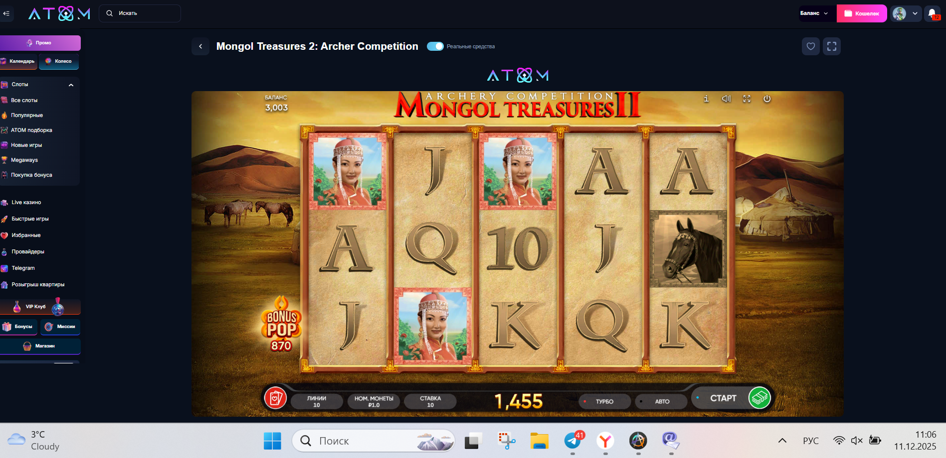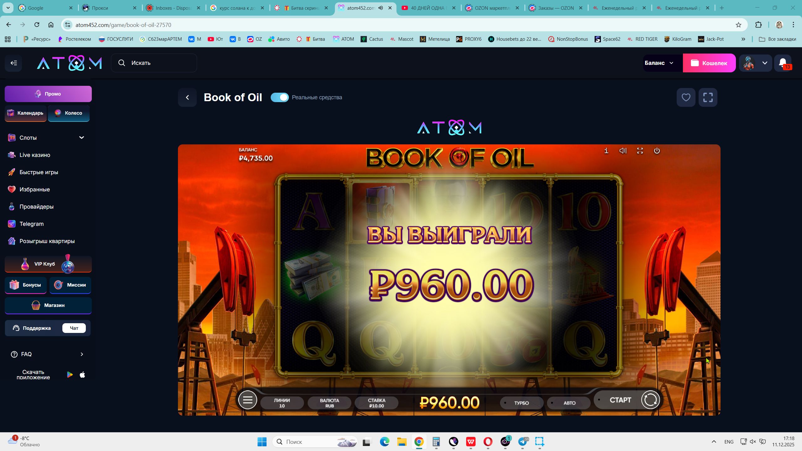 Казино Atom 9, 11, 13, 15, 17, 19, 21, 23, 25, 27 декабря