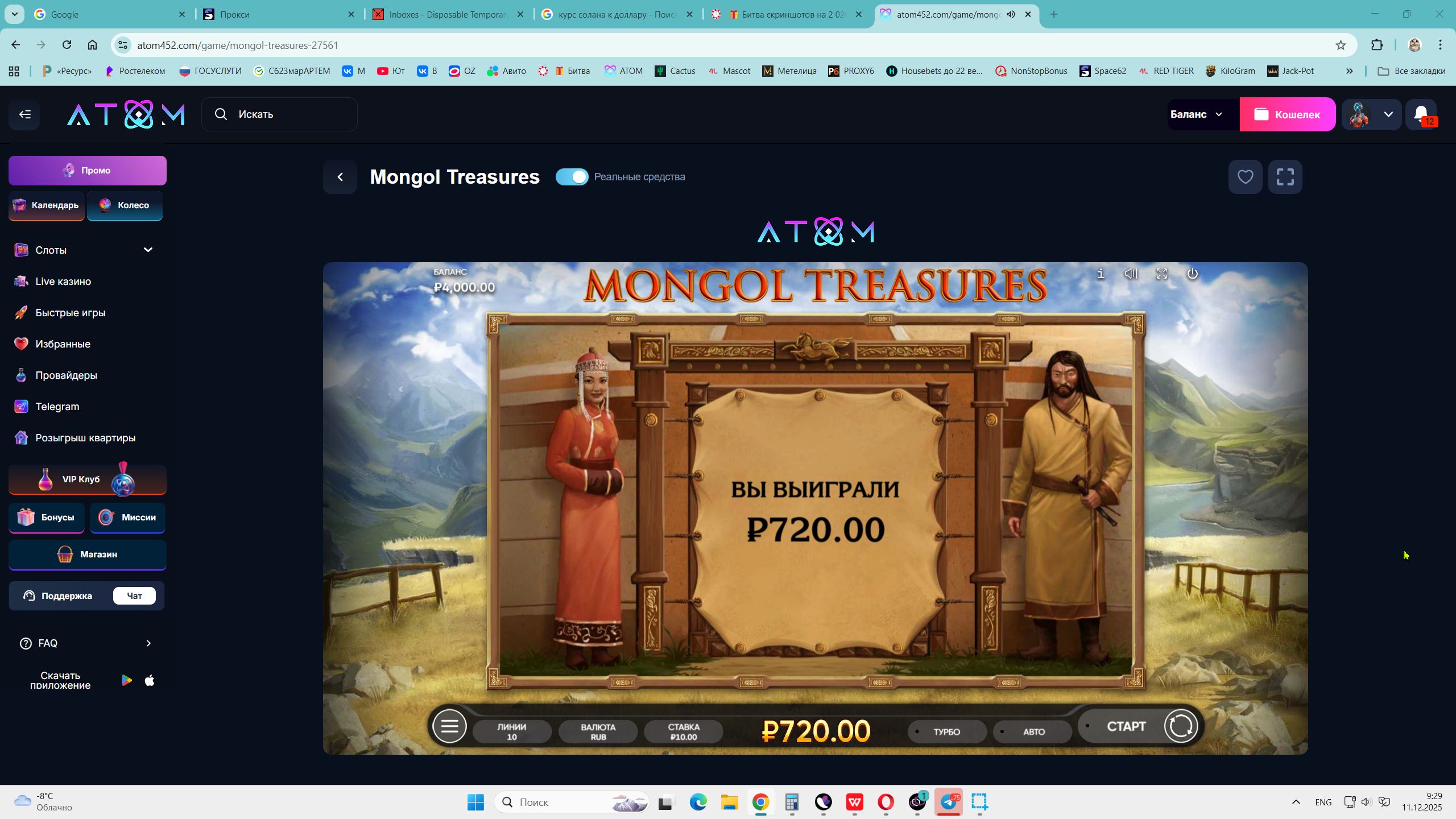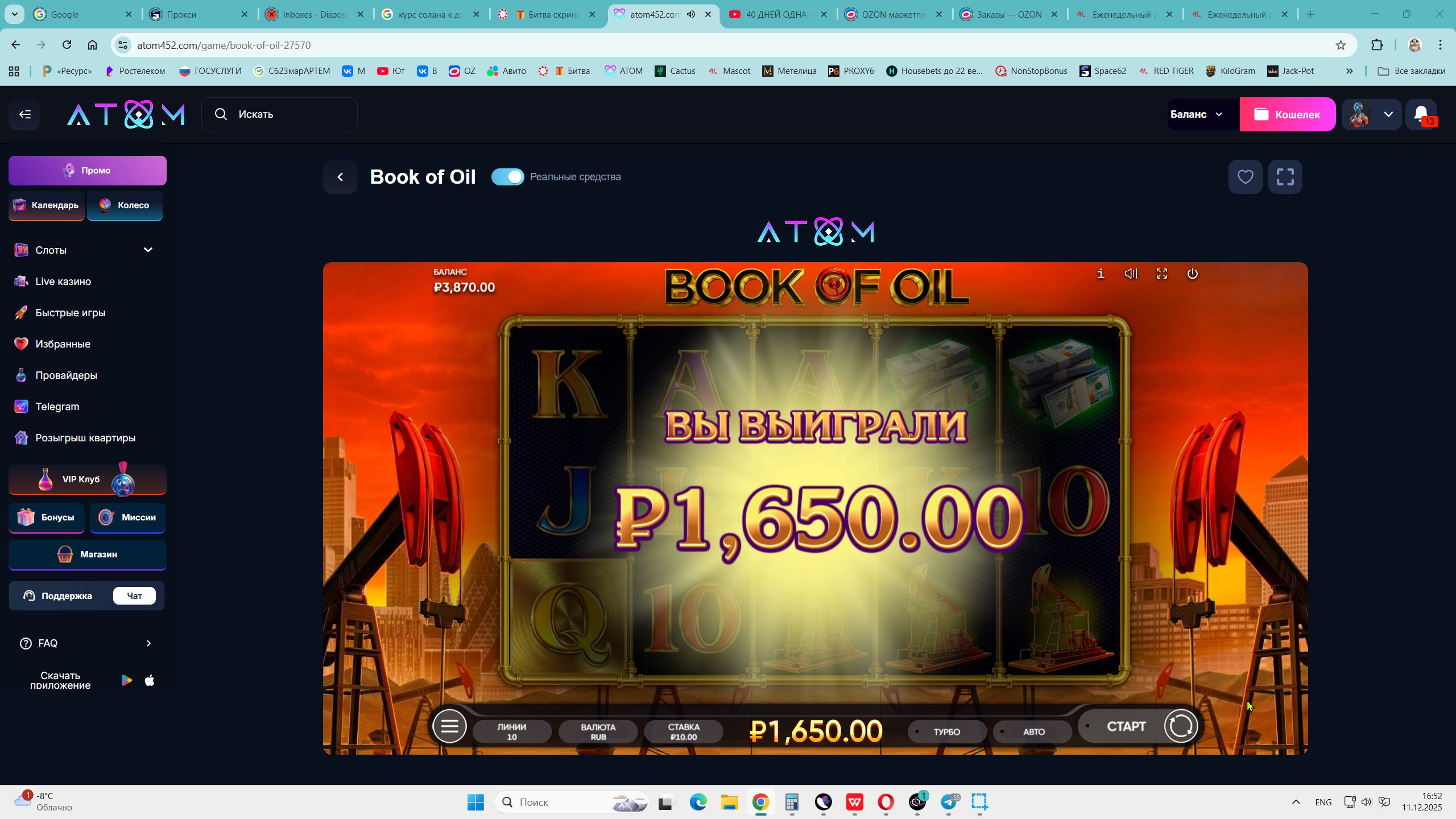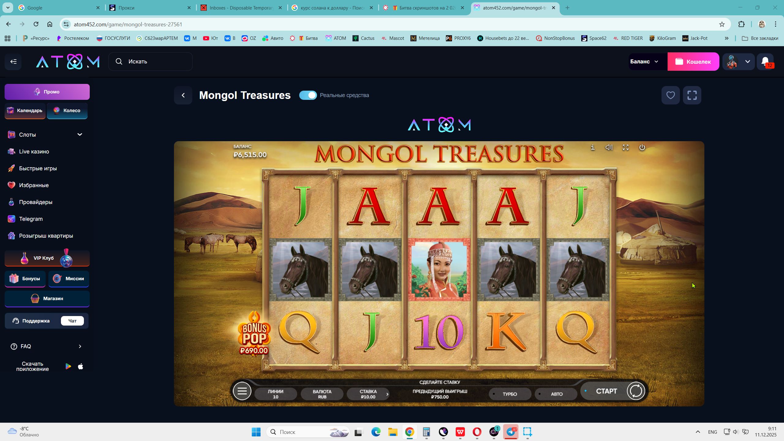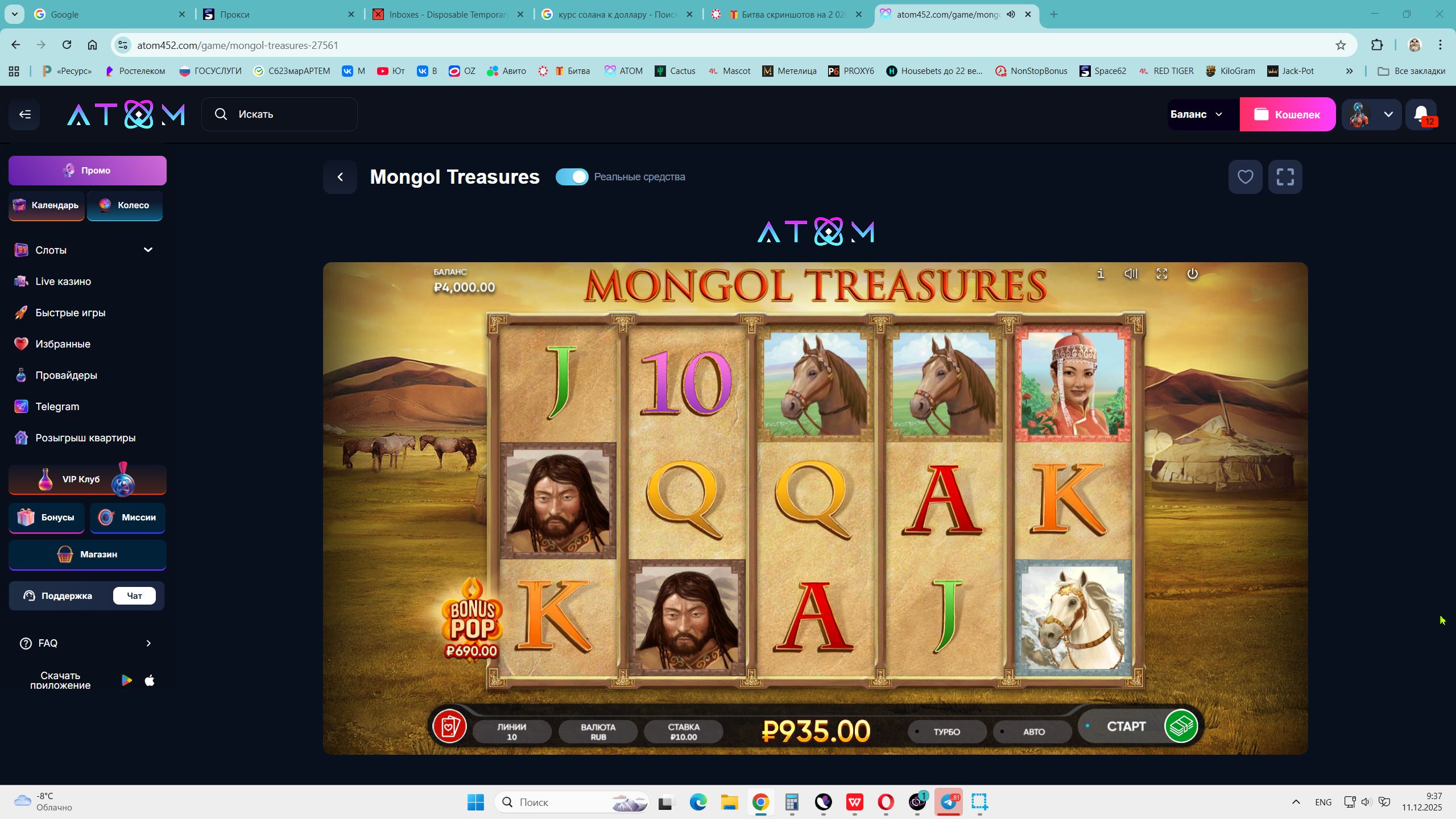 Казино Atom 9, 11, 13, 15, 17, 19, 21, 23, 25, 27 декабря
