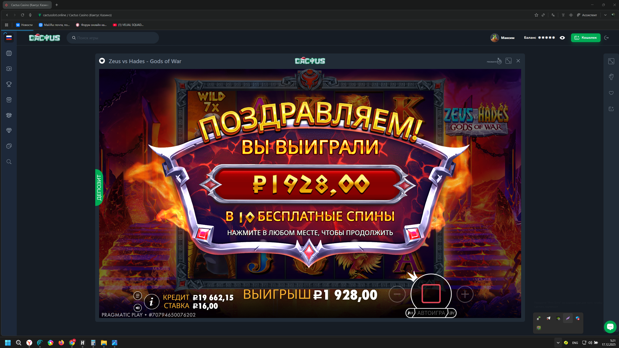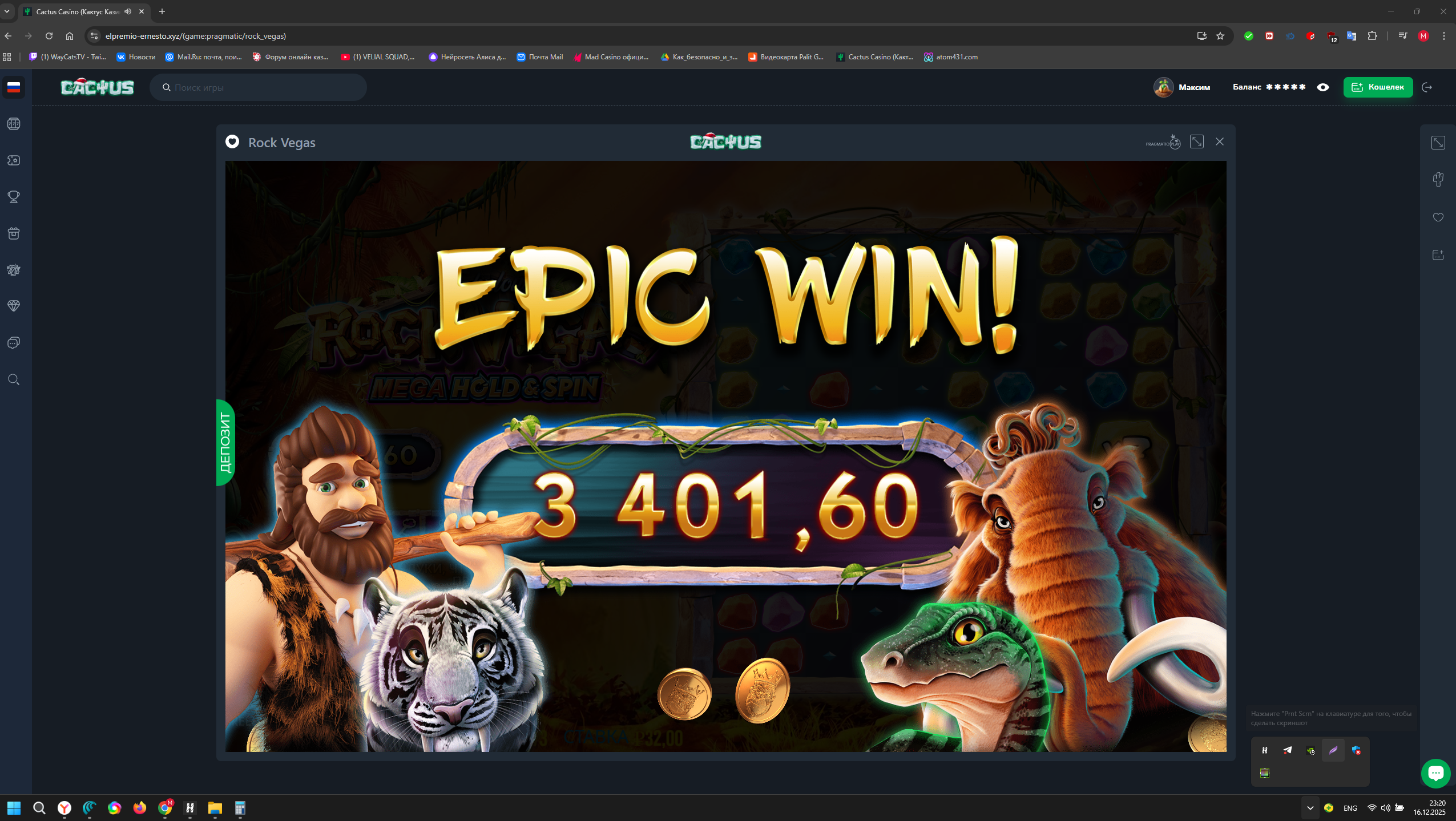 Время на скрине 00:00. Время джекпотов.