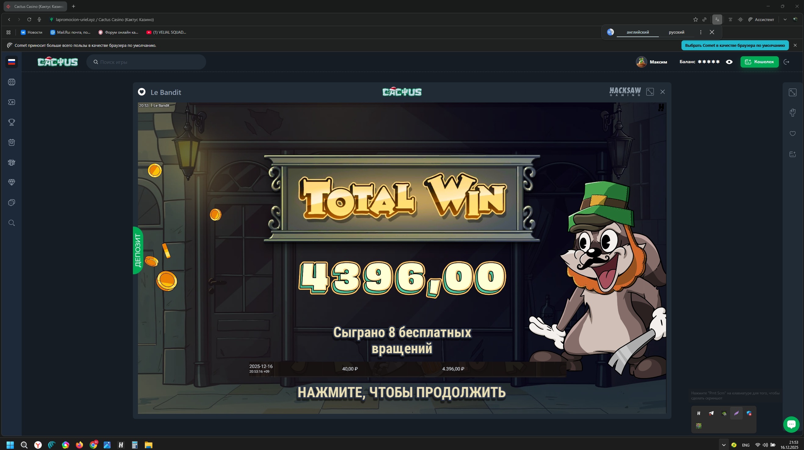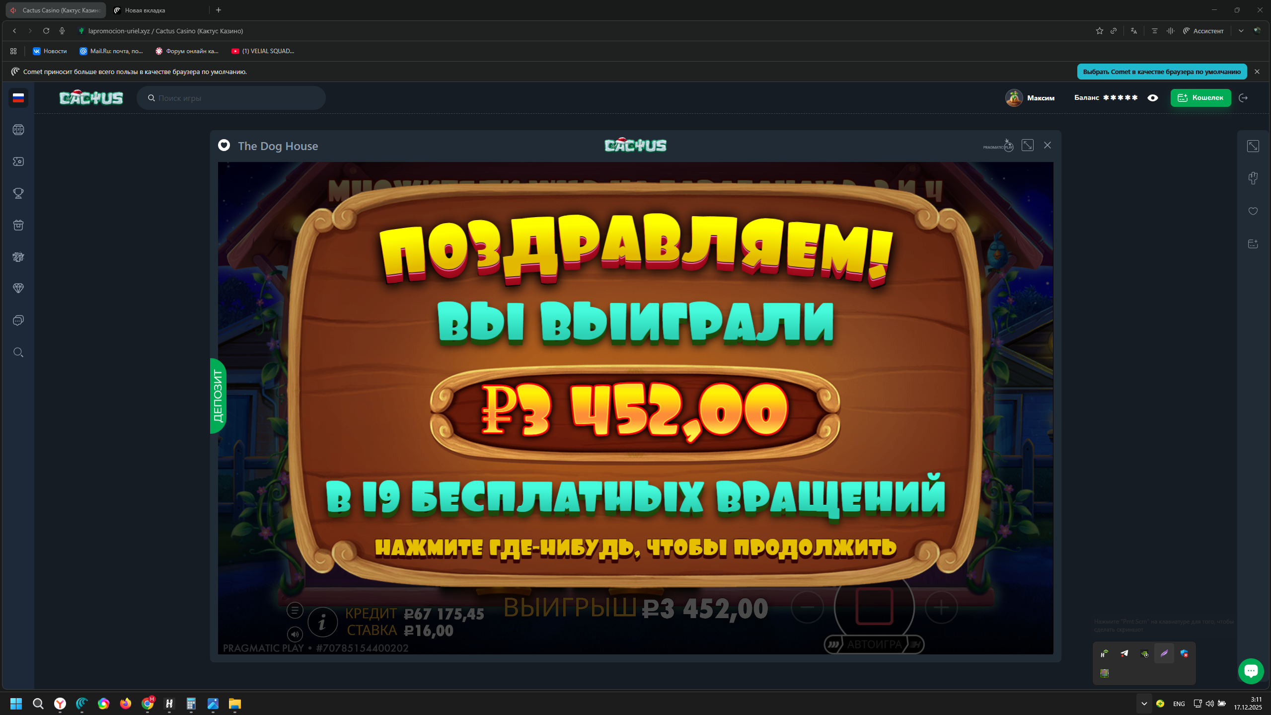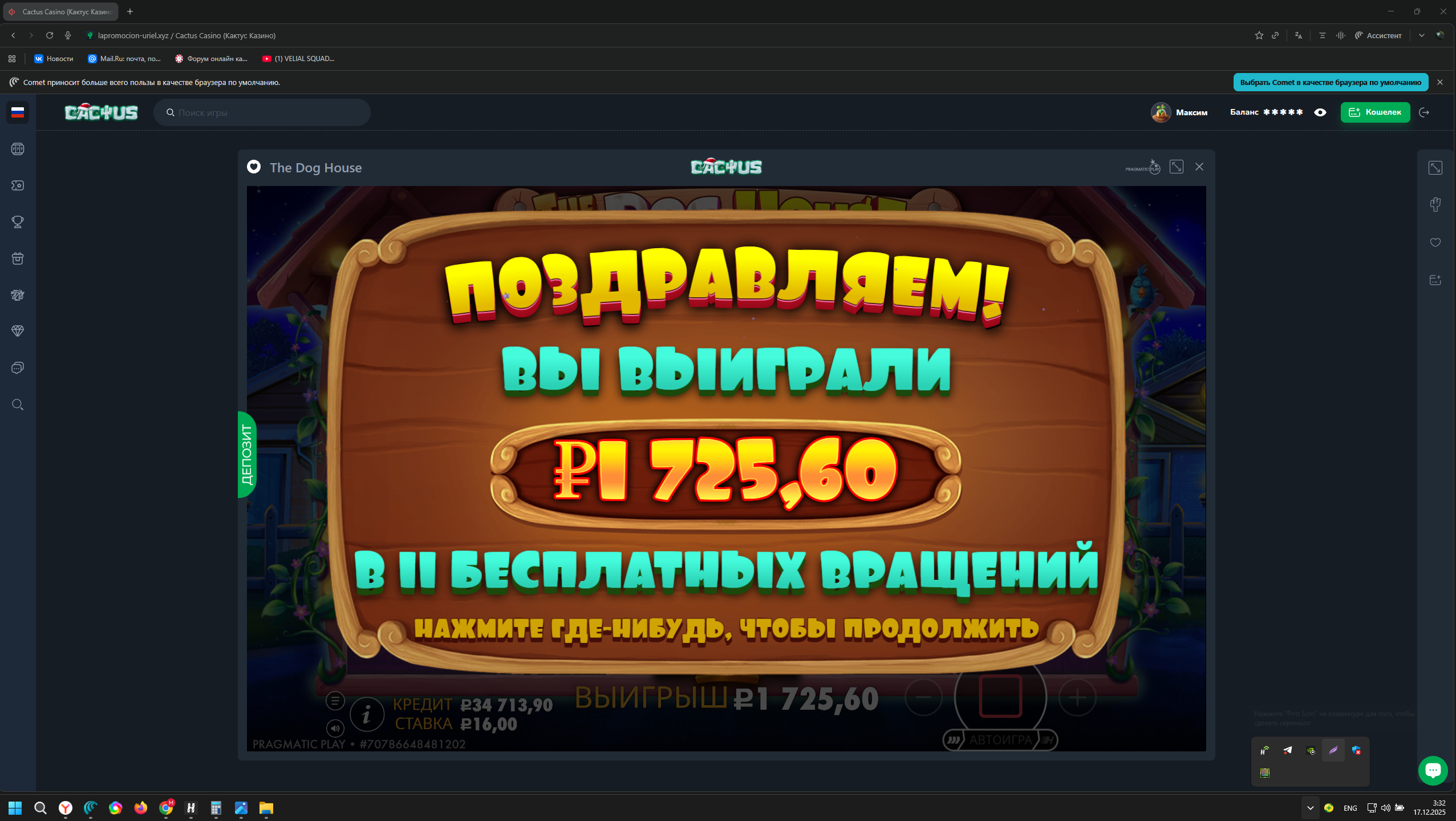 Ваучер на 5 EUR в Kometa Casino