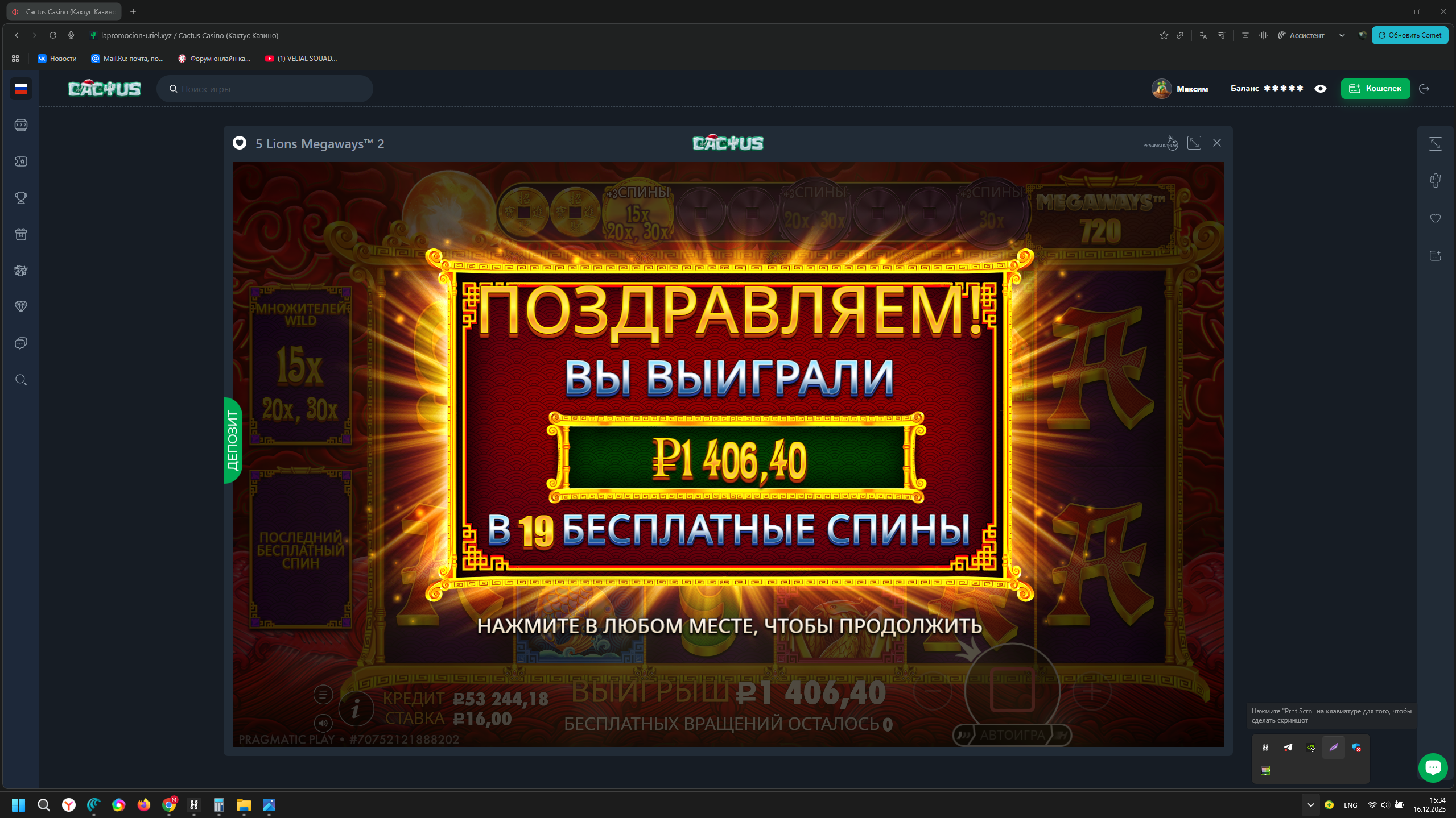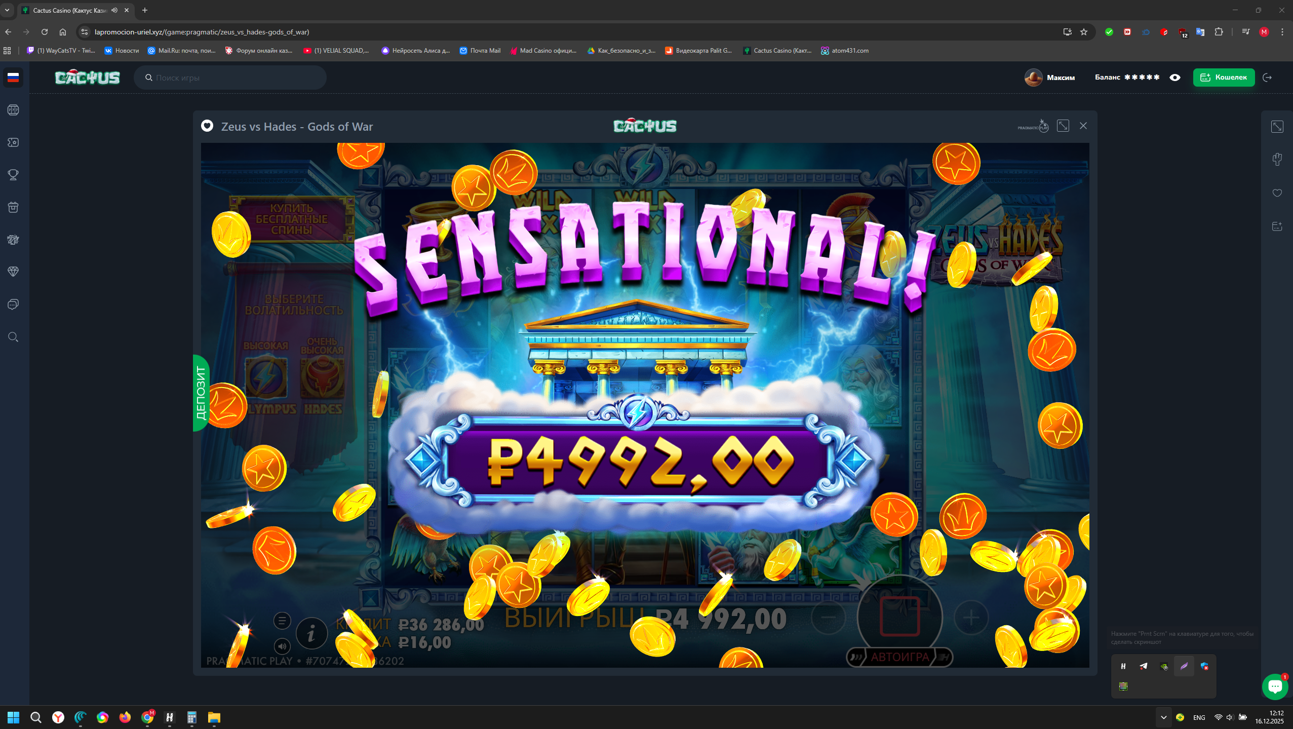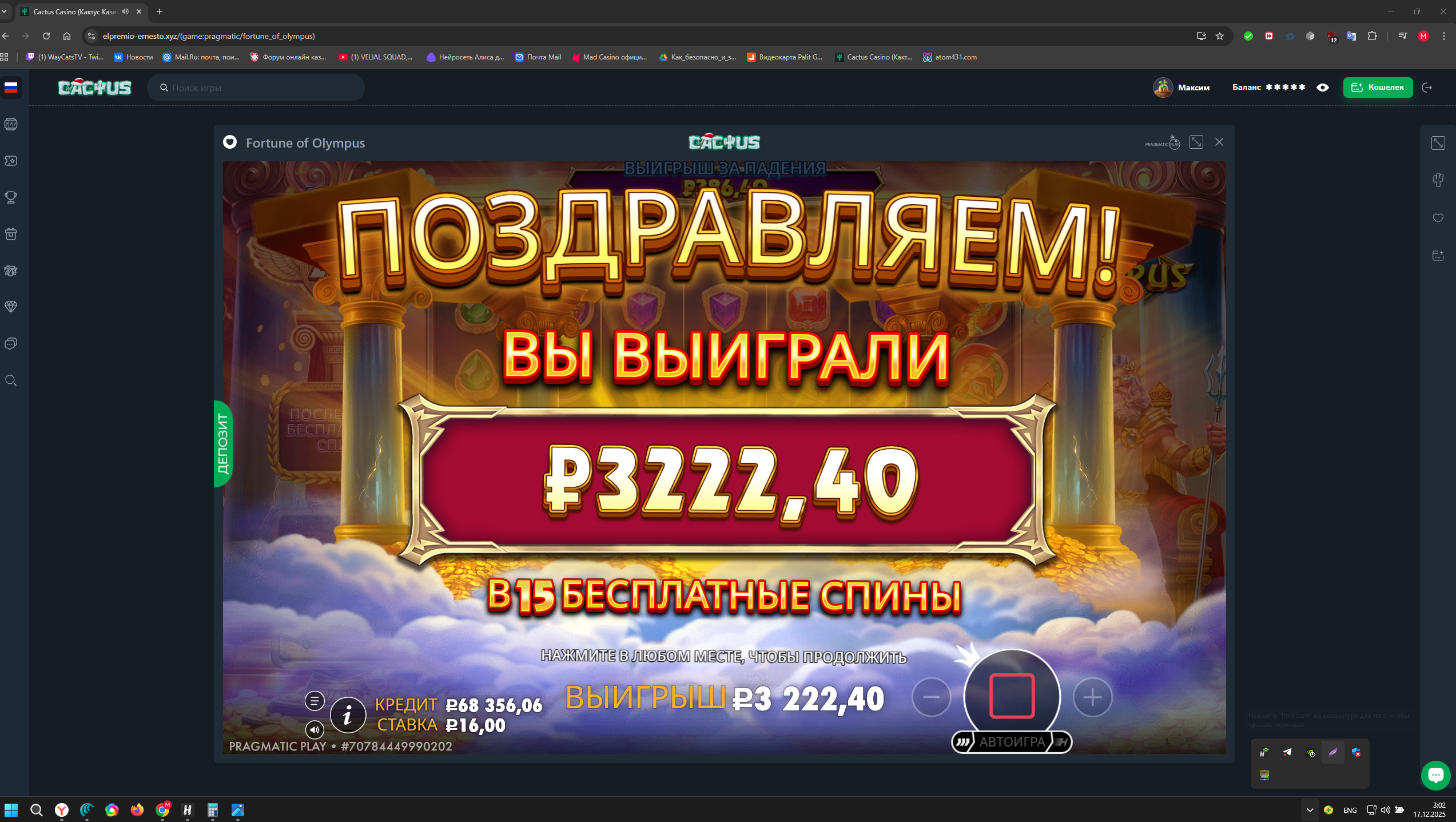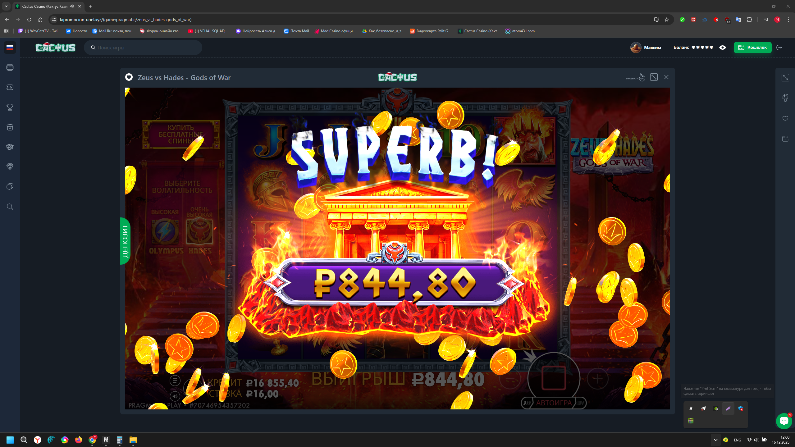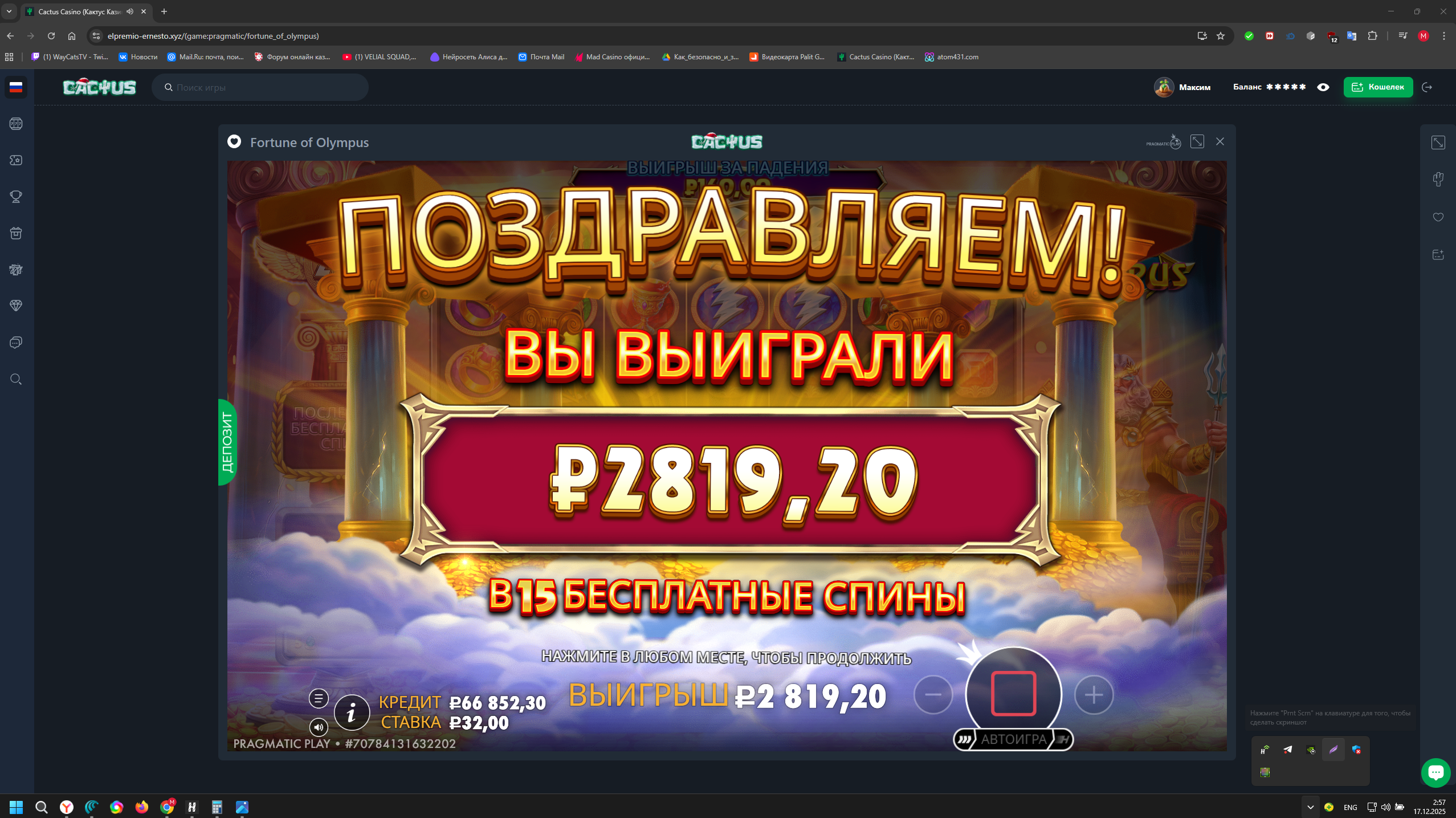 Сегодня скрины считаются с тройным коэффициентом в Казино Atom