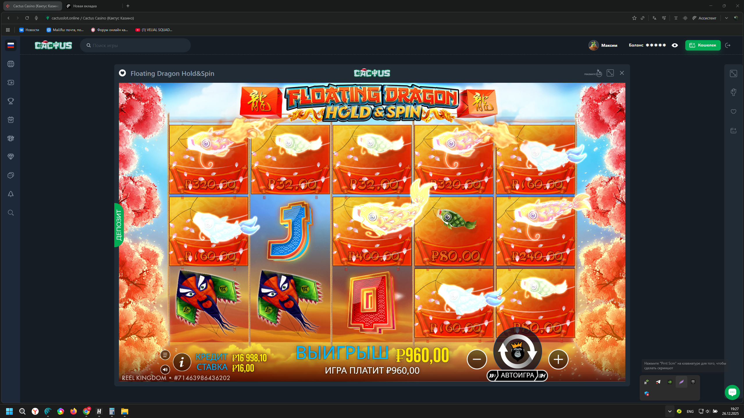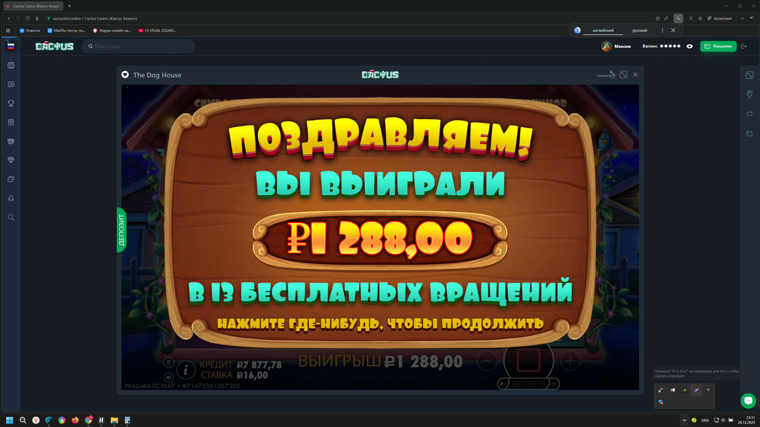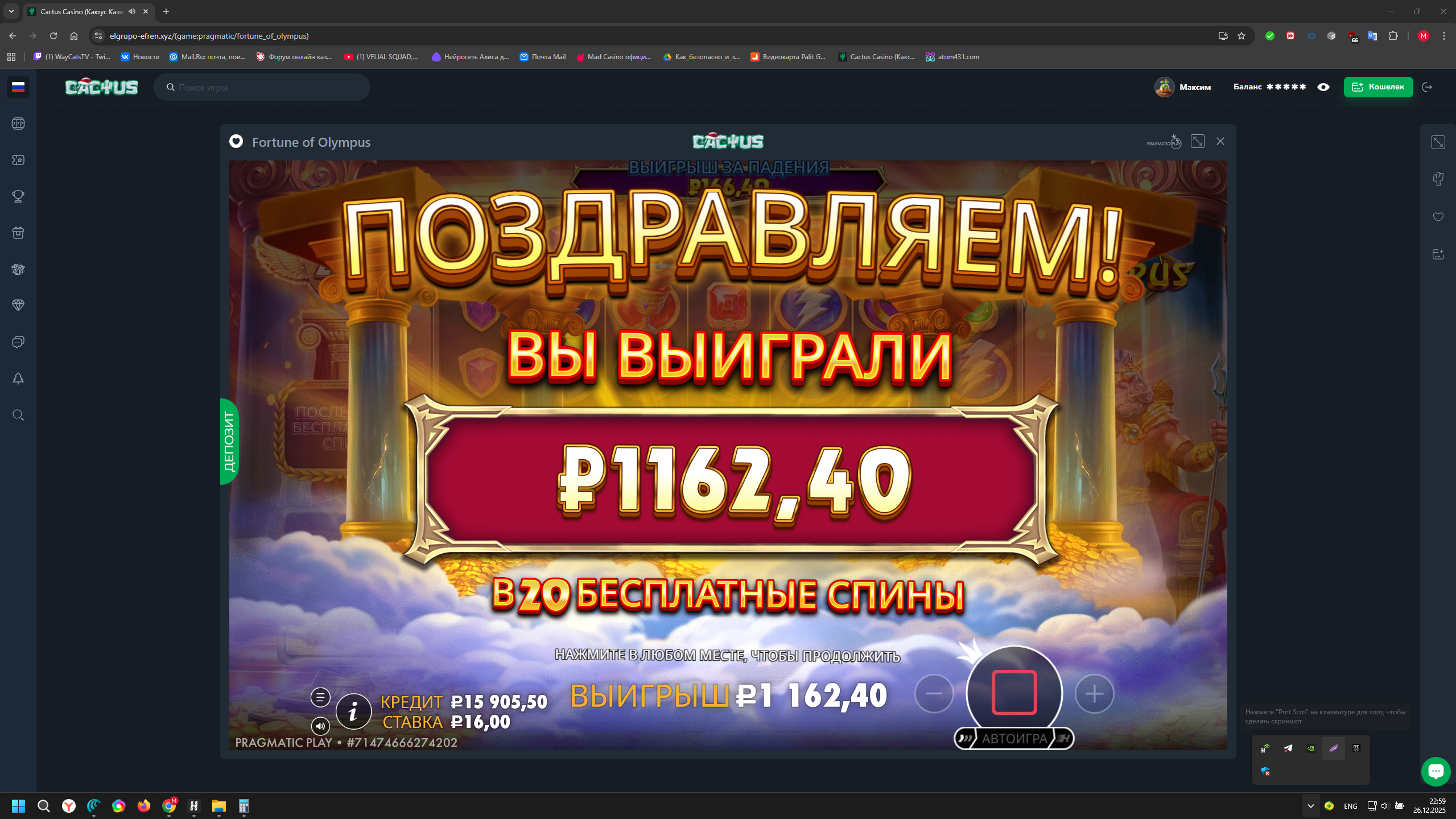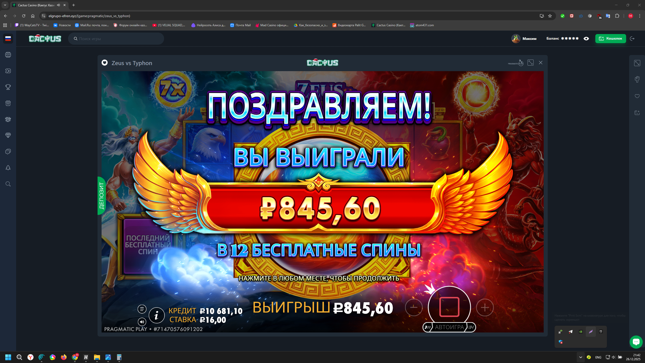 Сегодня скрины считаются с тройным коэффициентом в казино Cactus!
