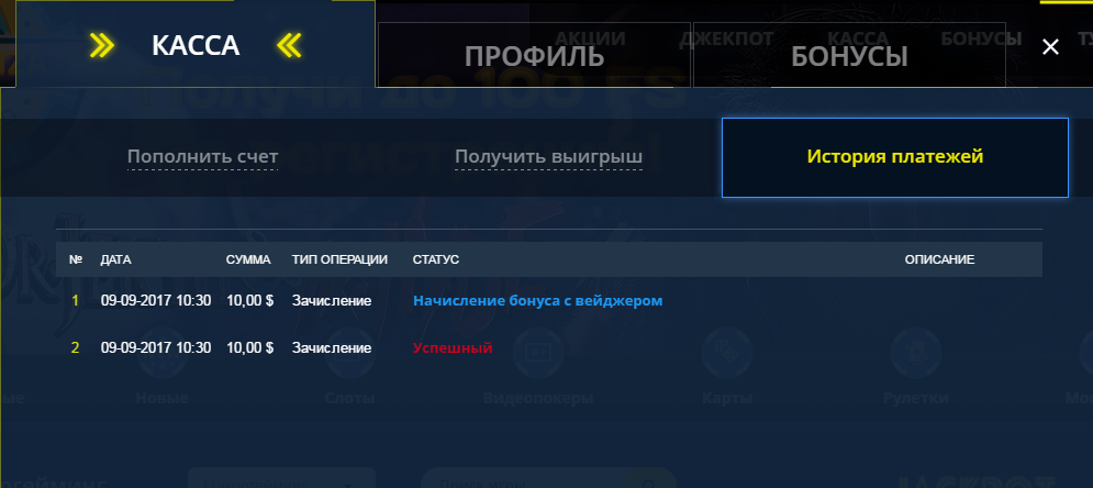 Впечатление от казино осталось хорошее, слоты не плохо дают, главное во время останавливаться. Сейчас обнаружил какой то баг, сначала радовался а потом понял что толку от этого мало, администрация всё равно увидит, а так может даст бездеп. Баг заключается в следующем, всё возвращается как в фильме "День сурка", баланс всегда равен последней сумме при заходе в слот но при одном условии если сливаешь в слоте полностью в "0" деньги, после выходишь а у тебя опять та сумма которая была при входе.