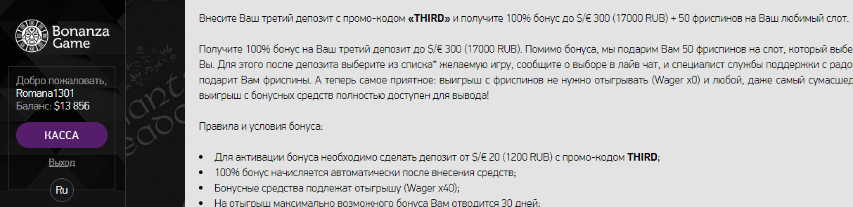 Bonanza Game Casino не платит выигрыш, а просто блокирует аккаунт и возвращает депозит, если удалось выиграть!!!