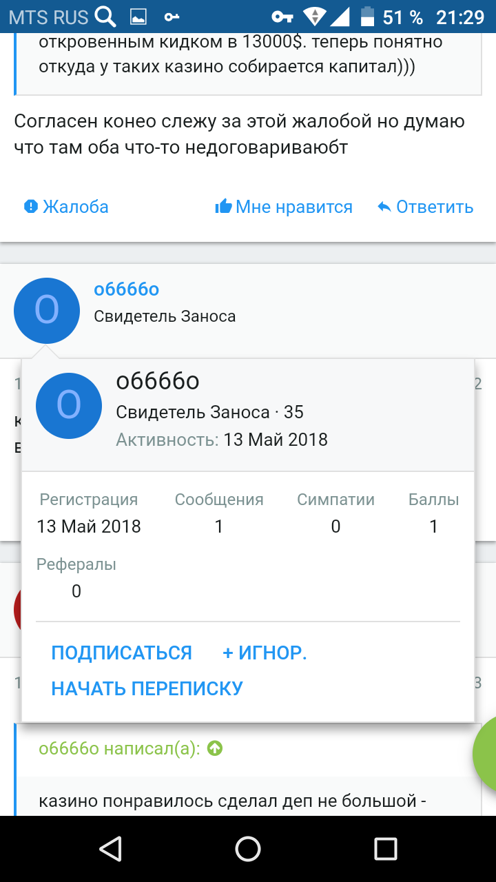 На казиномейстер не писала, что-то не слышала об этом форуме раньше,но теперь напишу. Писала на разных форумах, была еще жалоба на одном форуме, но доказательств не получили и закрыли, как не решена и казино кинули в список наблюдения. AskGamblers тоже сначала закрыли, как не решена, после того как на протяжении больше месяца не предоставили доказательств... но потом открыли специально для бонанзы и через день закрыли как решена, что само собой подозрительно. Если казино блокирует аккаунт, то должно иметь доказательства сразу, а не тянуть полтора месяца время и не предоставлять ничего.. Тут как только жалобу закрыли, то и доказательства нашлись.. Но мне так никто ничего не хочет предоставлять. Никаких доказательств, все решилось внутри между AskGamblers командой и бонанзой. Мне как пострадавшей стороне ничего не хотят предоставить.Не поленился. Прочитал всё. Ну что я могу сказать. Это полный писнессссссс. А кроме асков пробовала писать ещё куда ? На казиномейстер ?