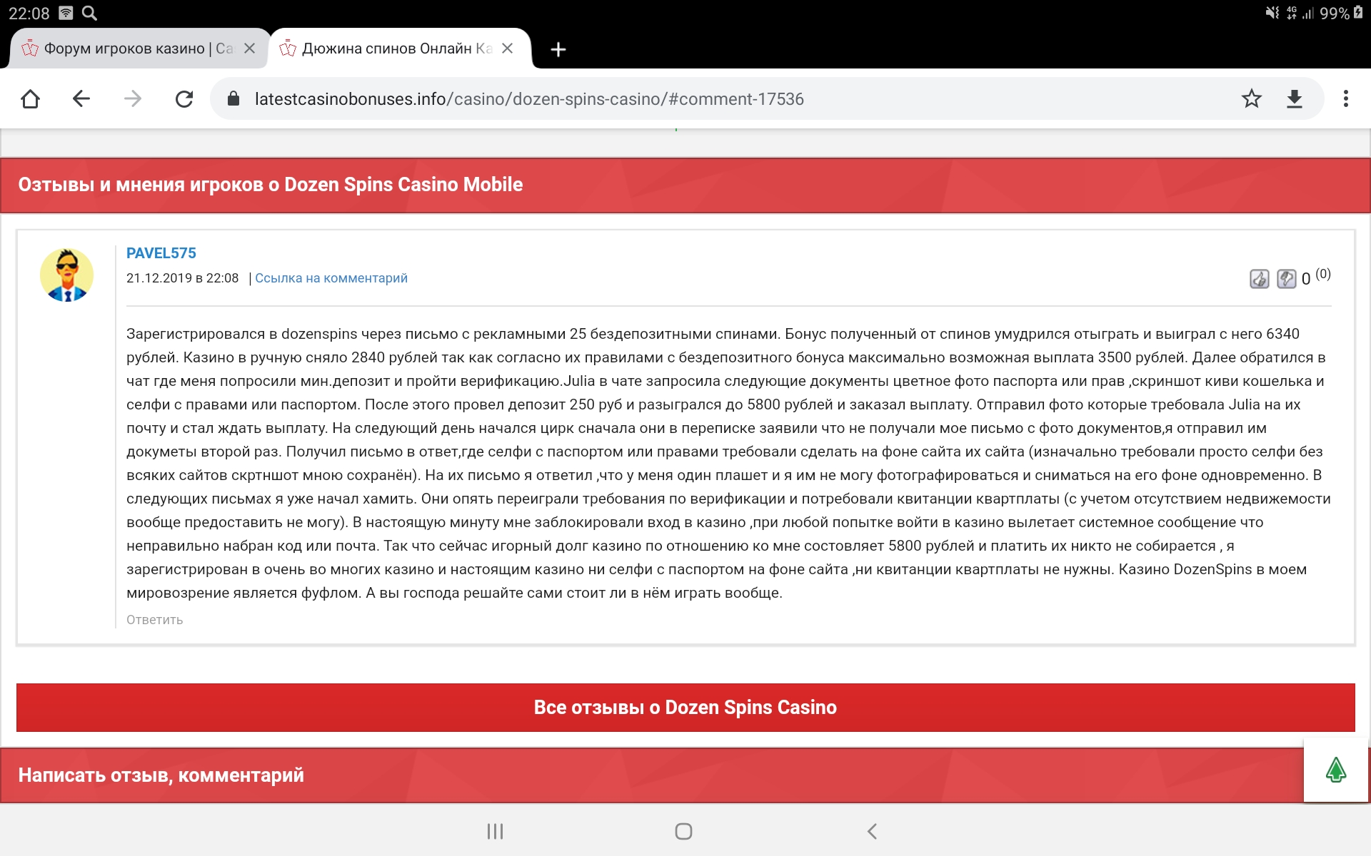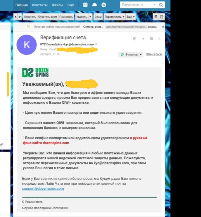 Скриншот 1 свидетельствует о том что я выиграл с бездепа и с меня запросили 250руб депозит и индефикацию . Скриншот 2 показывает какие документы с меня запросили изначально в чате (все документы по этому скриншоту мною были предоставлены). Скриншоты писем показывают что фуфлыжкино казино меняет требования по документам как хочет(подменили требования по документам дважды) , с целью неоплаты игорных долгов. Скриншот с операциями свидетельствуето том что фуфлыжкино казино должно 5800 рублей и оплачивать их не собирается. Не радуйтесь бездепам от этого казино , эти выигрыши НЕ ПЛАТЯТ !!!