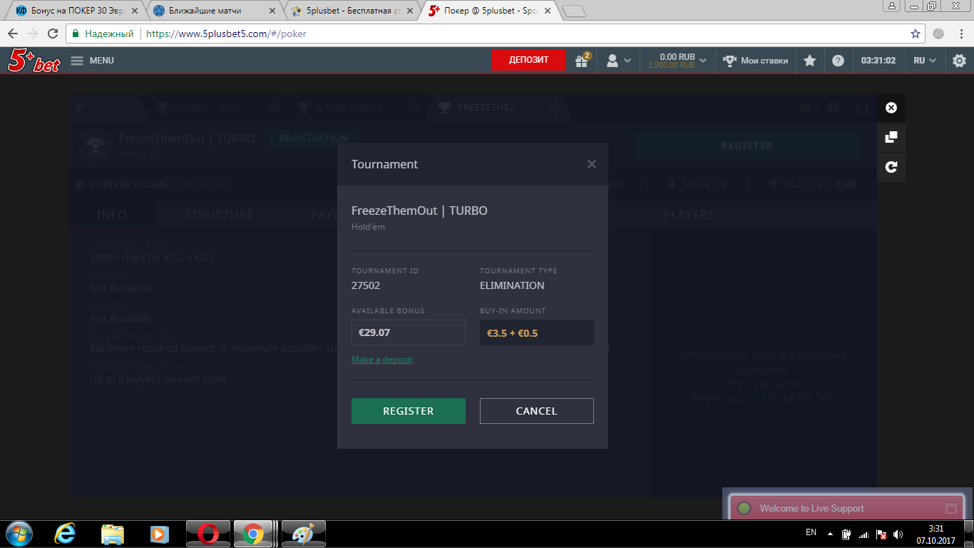 Друг подскажи,я подарок активировал на счету стало 35 евро,скачал покер клиент ,захожу регистрация в Турнире-пишет типа денег у меня нет!как играть то на этот бонус?