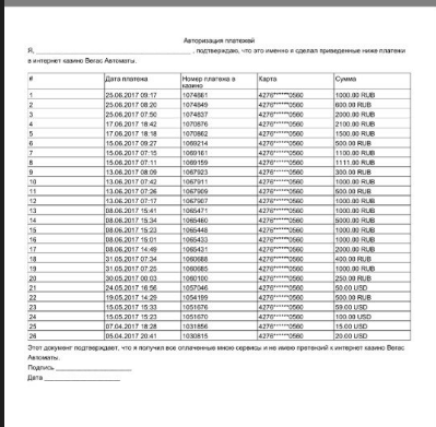 меня казино вегас авт .заблокировали . пока я не подпишу лично бумагу где сказано (сейчас найду покажу ее )