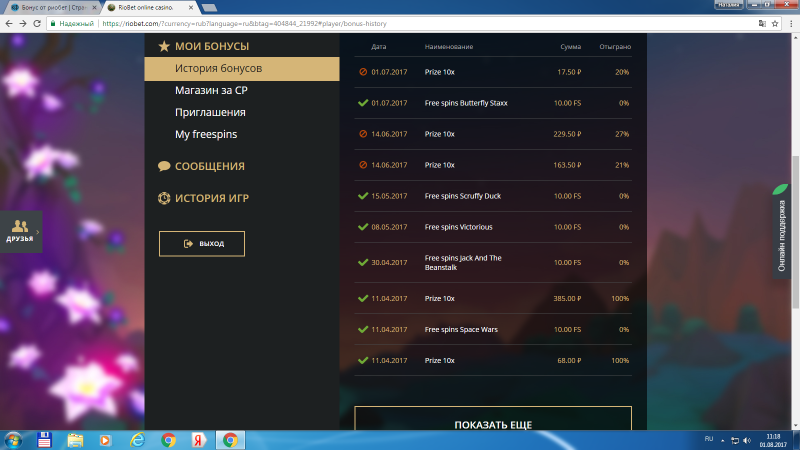 Друзья, если у вас есть какие-либо вопросы или пожелания касательно казино Риобет, обращайтесь, мы с радостью ответим вам на форуме casino.my Для пользователей форума сейчас действует бонус 15$ по промокоду casinomy. Если вы уже зарегистрированы, но не получали Регистрационный Бонус - можно получить через саппорт. Если вы уже получали данный бонус, то в получении может быть отказано.