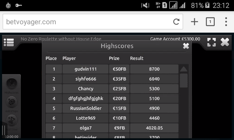 Пока на третьем месте иду, что будет дальше хз, многие наши там :) зашла 36 красная подняла банкролл мой.