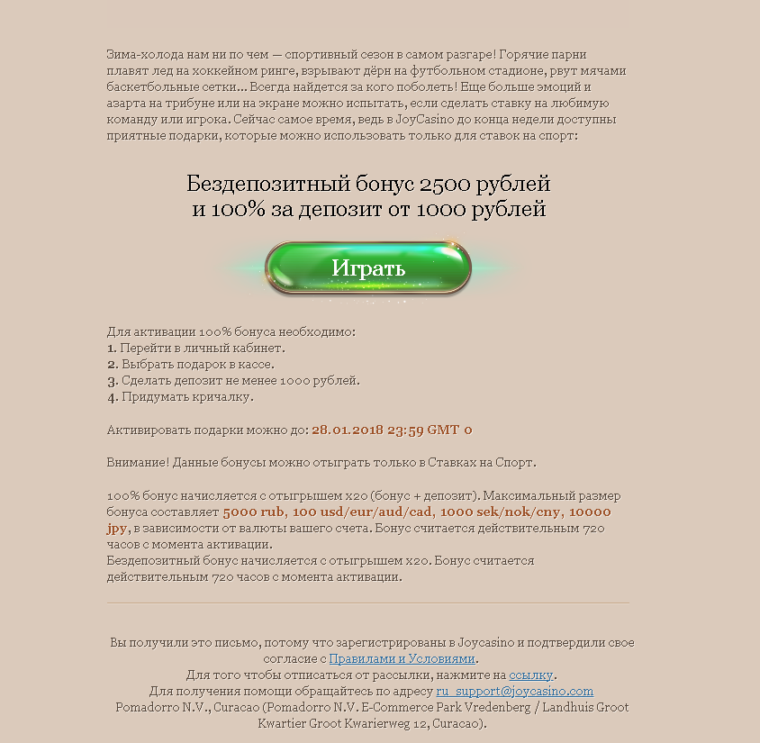 Бонус на депозит Бонусы и акции от JoyCasino, промокод при регистрации