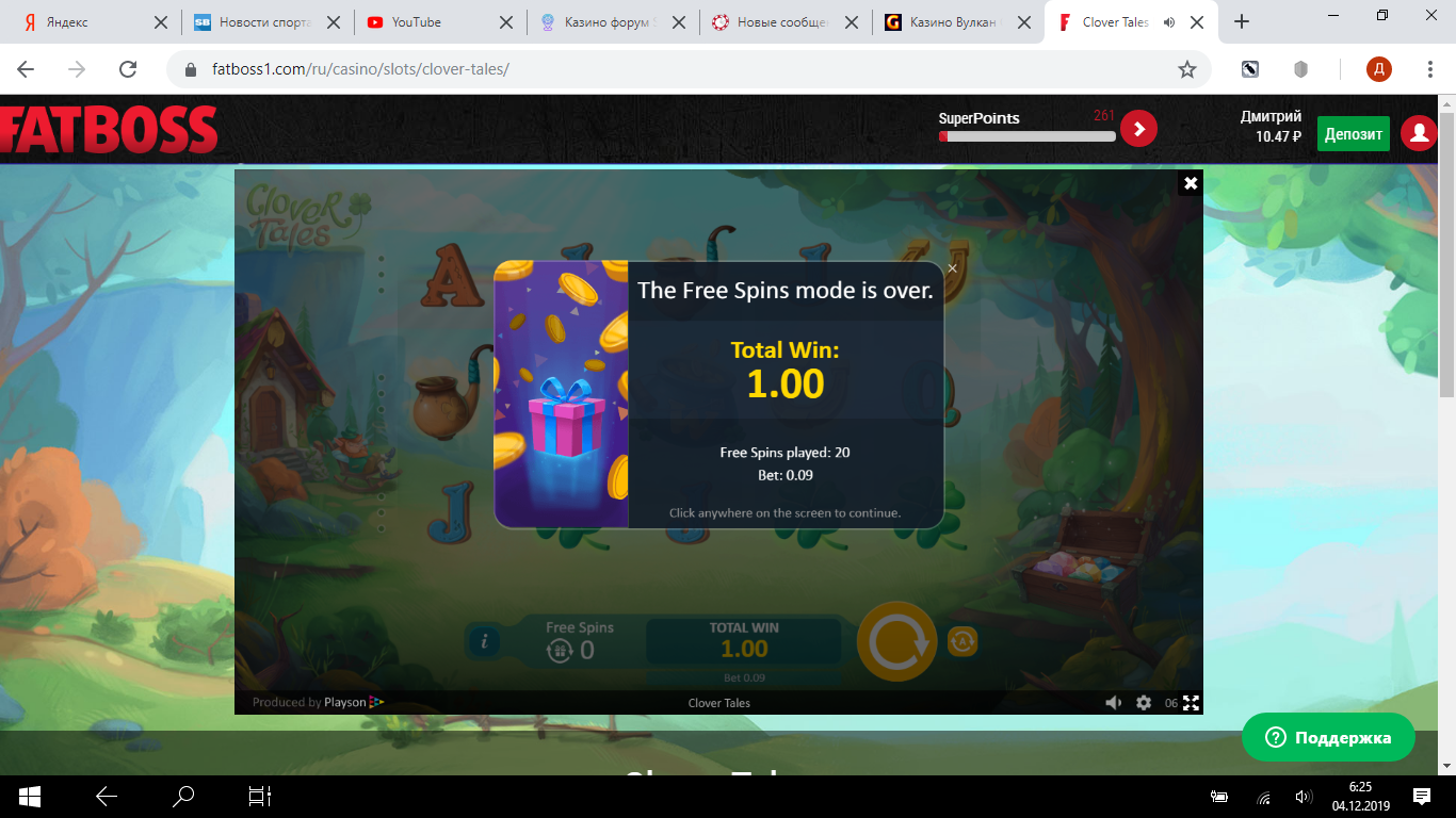 Добрый день,И если можно, сразу мой вопрос решить по поводу покупки фриспинов за 10000 поинтов по 9 копеек. А то выходит, крутил вчера ввесь день, а поинты поменял на рубль