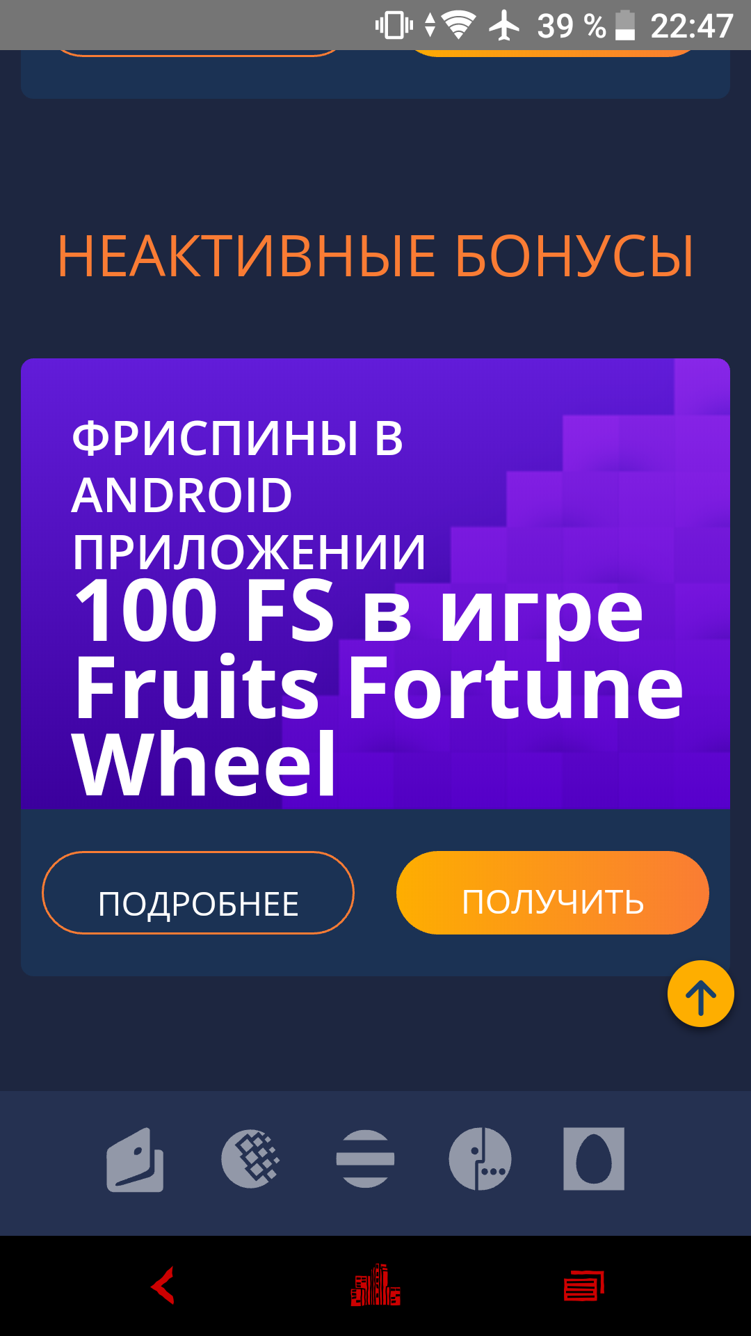 В бонусах увидел 100 спинов по акции, нажал получить и ничего.