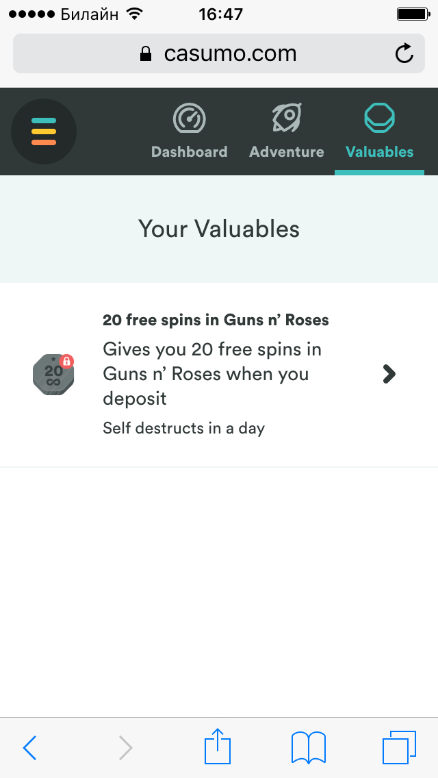 Как зашел, предложили 30-ть в Guns Roses за деп, но бывало заходишь в слот, и там 5 без депозита висит. А в этот раз такого не произошло.А за бабло 20 у тебя есть?