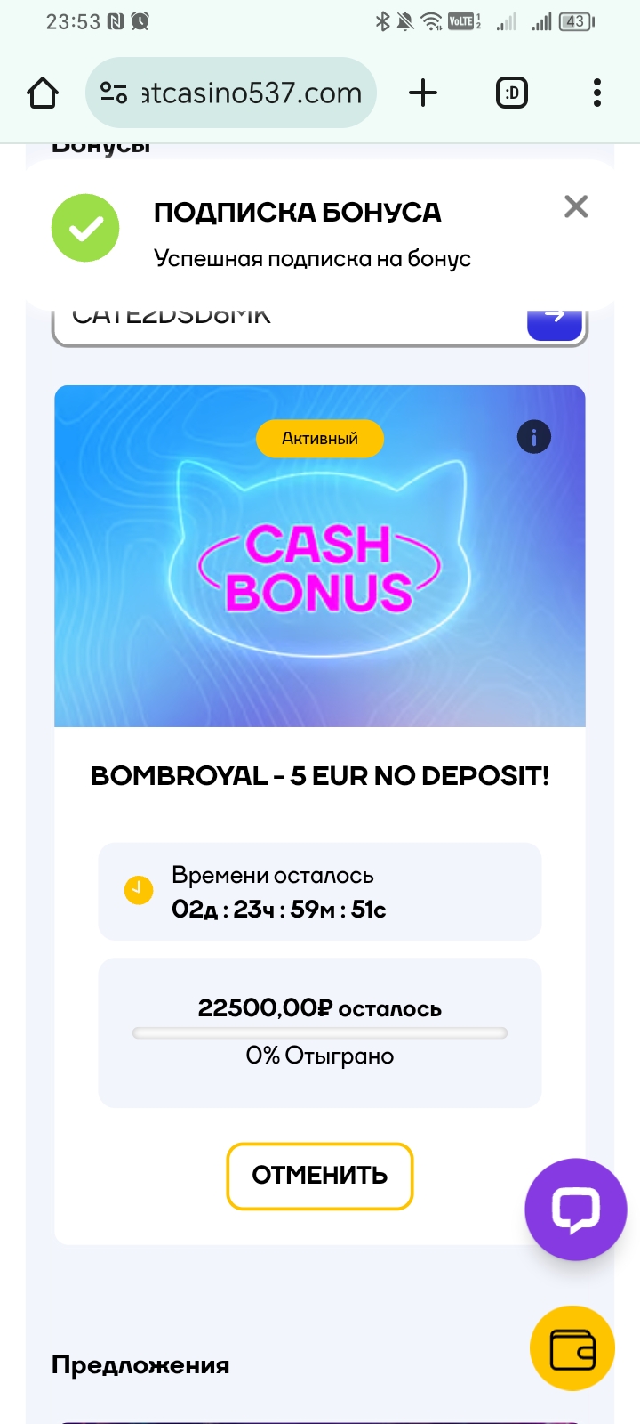 Бездеп Catcasino - раздача ваучеров на 3 EUR No Deposit