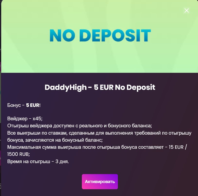 Бездеп Daddy - раздача ваучеров на 5 EUR No Deposit