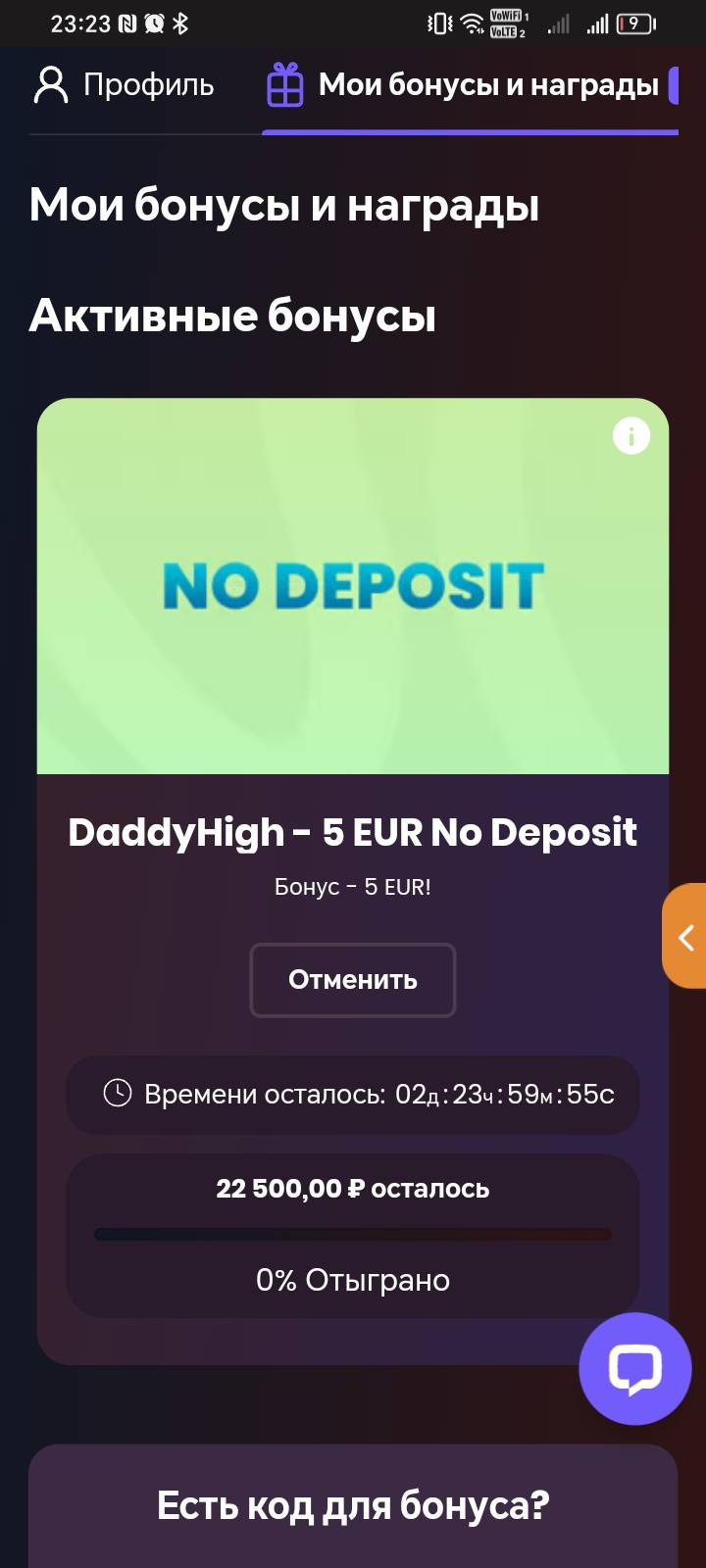Сегодня 1 промокод, забираем и пишем результат -