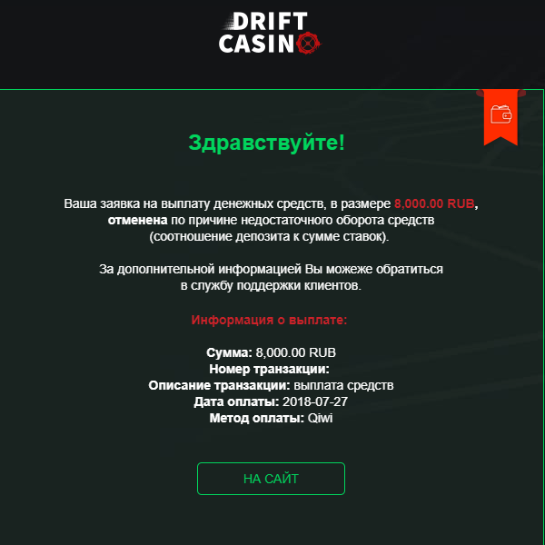 Дрифт казино - заведение мирового уровня, которое заботится о благополучии своих игроков. Поэтому заруливай к нам и убедись в этом сам.