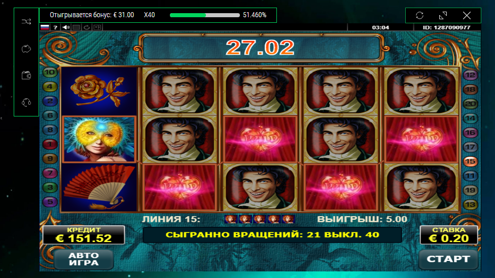 ну не знаю, 300р сожрало, без просветаКстати, тоже заметил, что он на отдаче. Осталось 12 рублей, зашёл и по 4 рубля спинов 40 сделал, правда бонуски не дождался