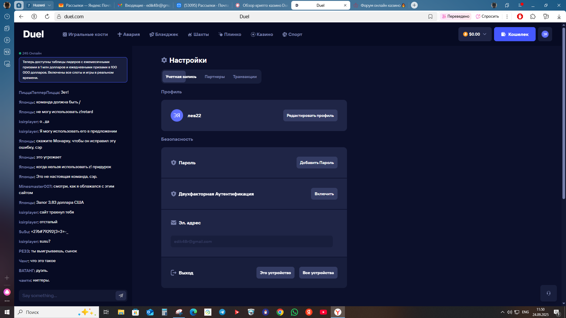 3. Уникальное предложение - игра Dice в вышеупомянутом казино Duel с отбором 0.1%. Каждая ваша ставка "отбирает" у вас всего 1 / 1000 (в сорок раз меньше!), а значит всё зависит от удачи.