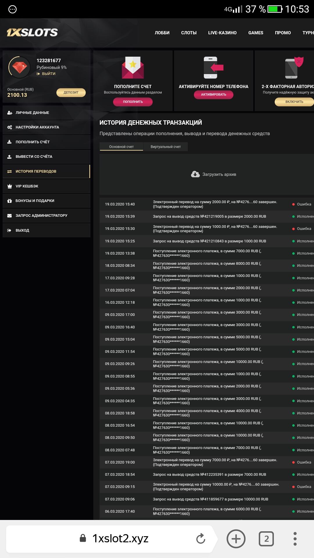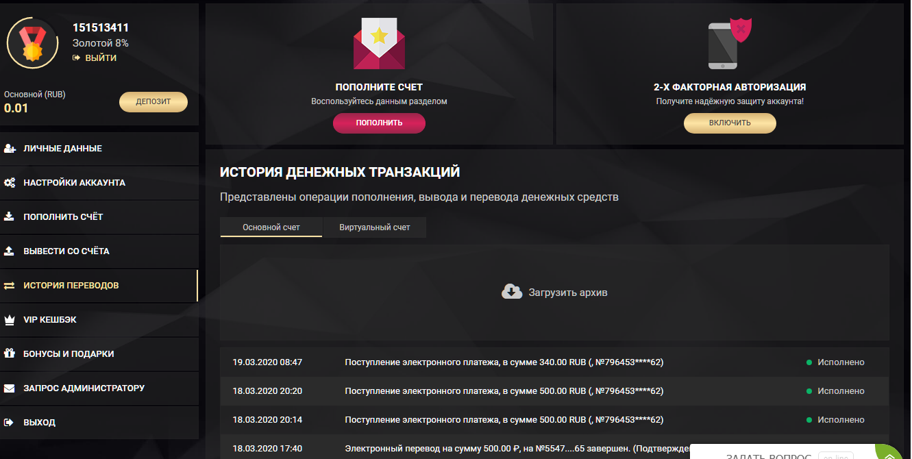 где видно логотип казино, номер счета, дата и сумма депозита и статус платежа Исполнено! С телефона скрины не принимаются, на них не видно номер счета!