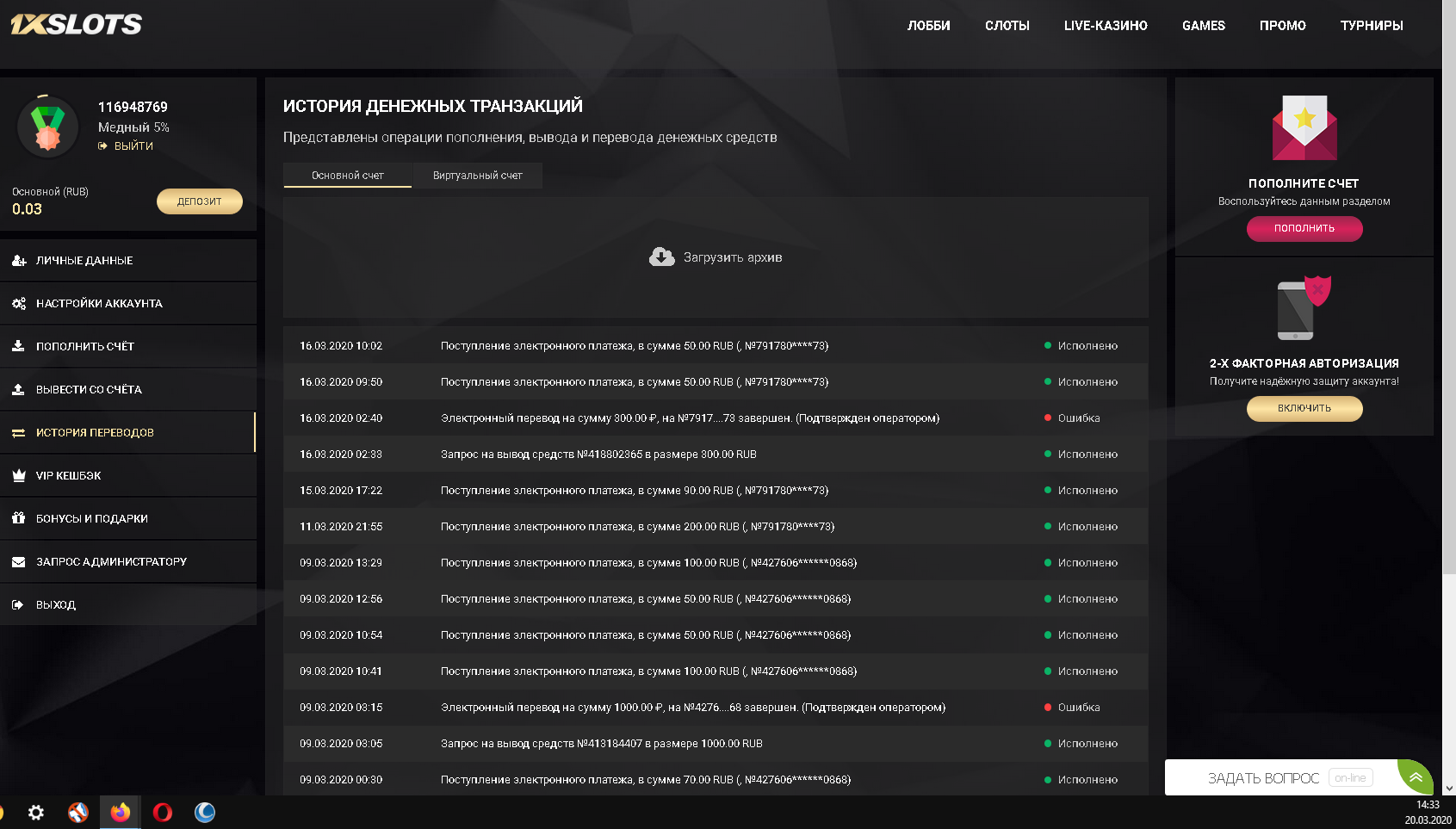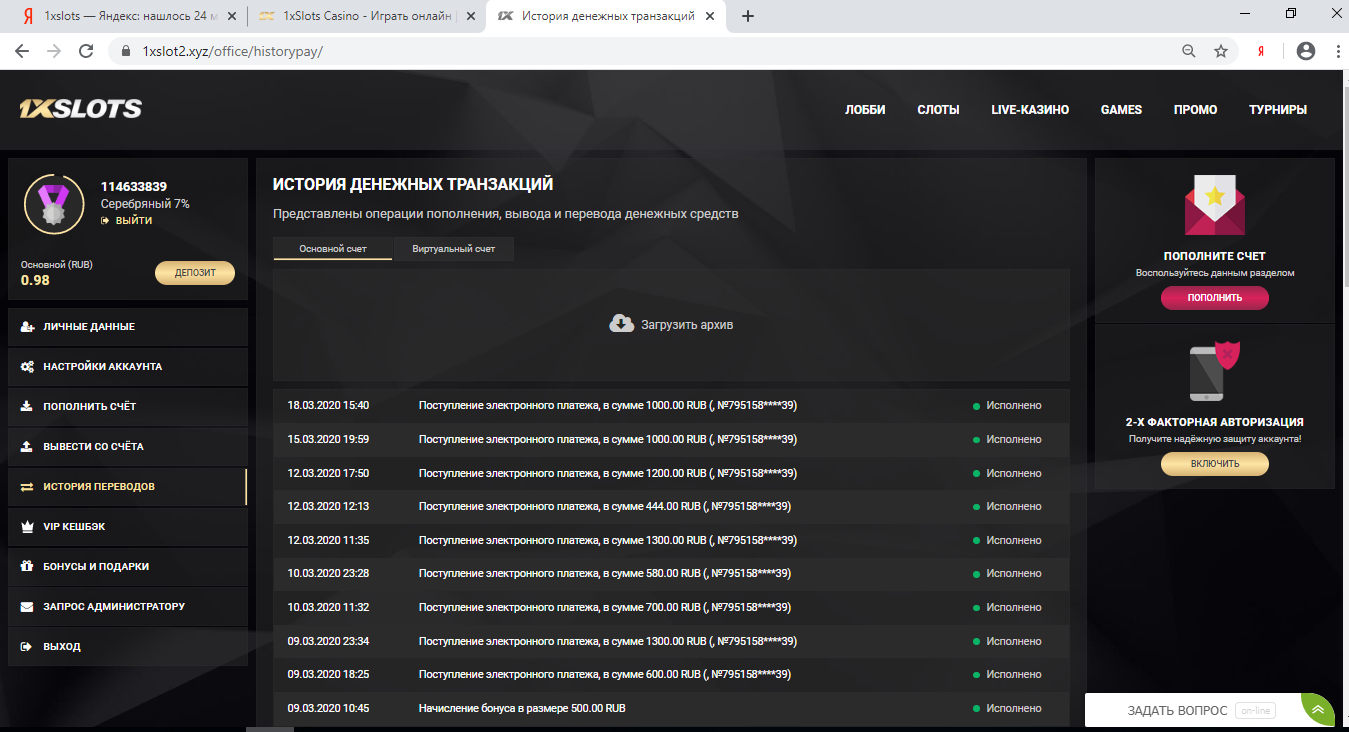 Сумма депозитов должна быть от 250р, на этом скрине сумма меньше...