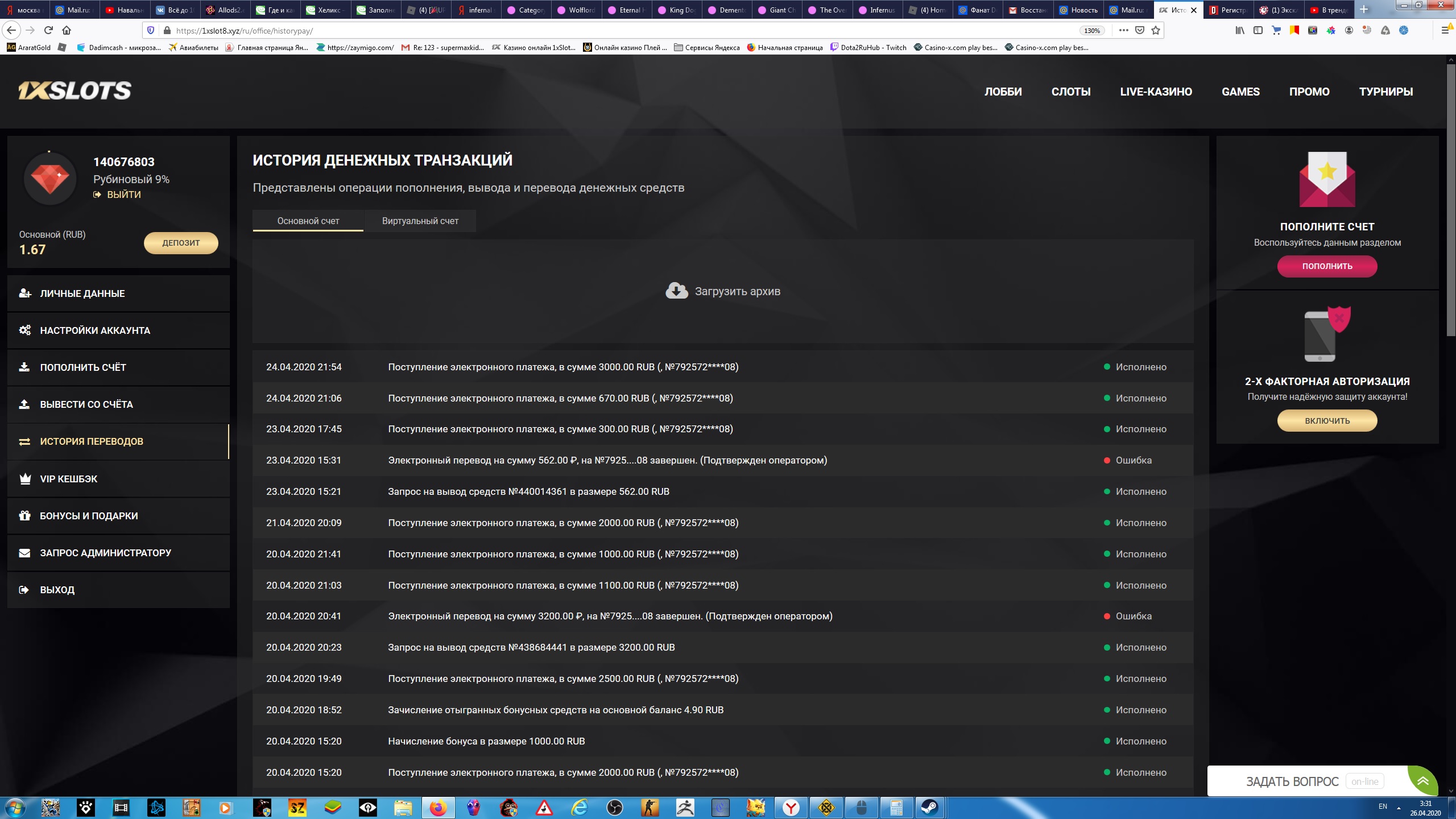 Сейчас в личку скину промокоды, после отыгрыша фриспинов делаете скрин результата, выкладываете в этой теме, если ваш промокод даст меньше 200 рублей, получаете страховку 200 кредитов!