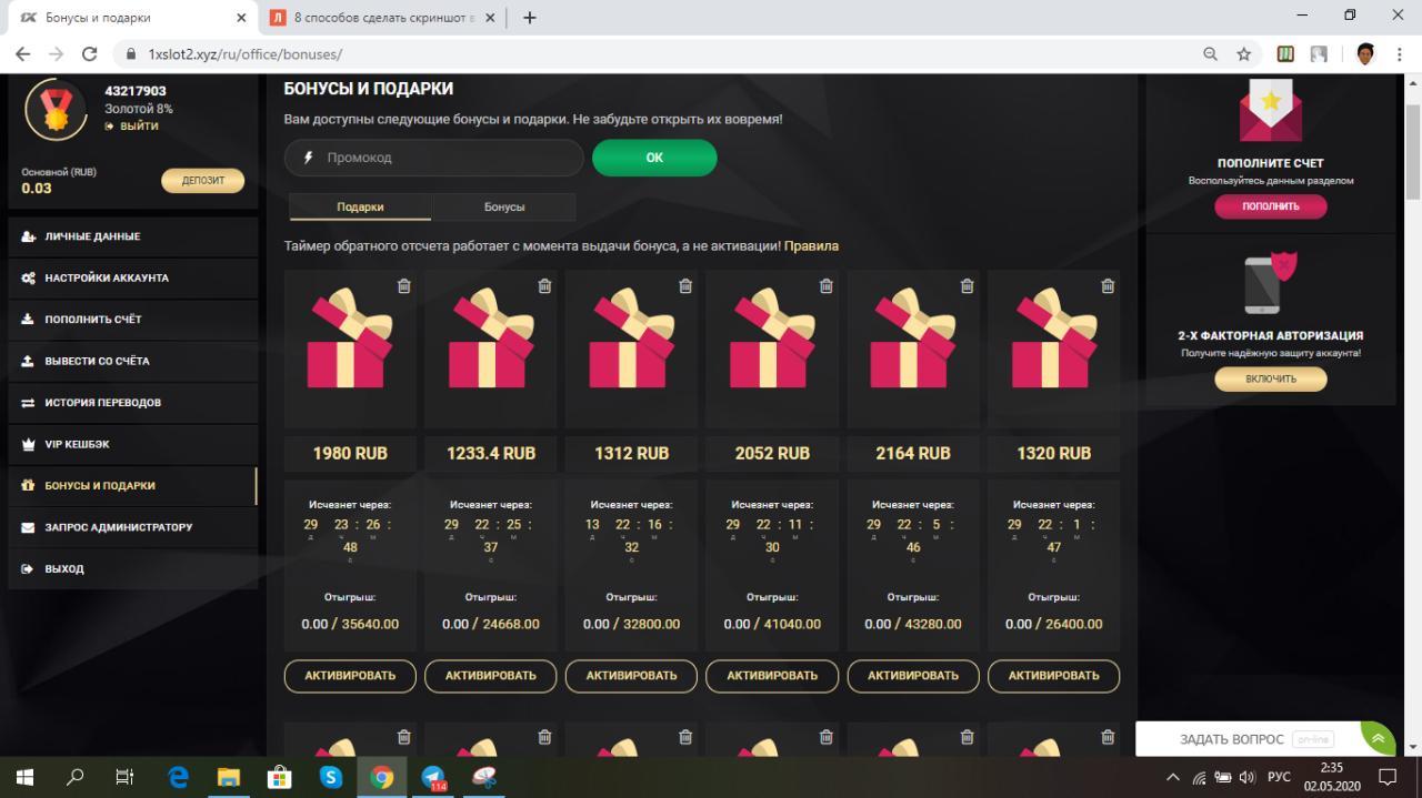 Люди пишут, что промо в обще кайф, лучше не придумать. Я хз, пытался и по мелким и по всяким. Один раз промо форума отбил, два раза каких то мелких. Ну и "занос" мой дикий в этом казино, по 100р х20 с копейками.