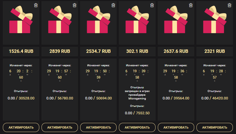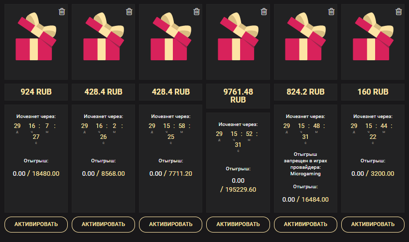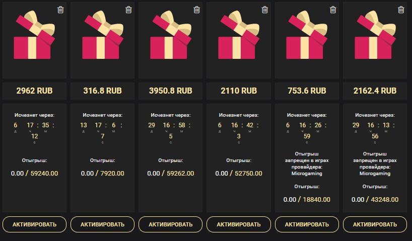 Ну типа они фоном отбиваются и это очень приятно когда доп кеш падает, кто постоянно играете. Но в моем случае, чтобы 400 упало, нужно 5000 депнуть. Это не говорит о том, что казино шляпа. Отличное место и вывод мгновенный. Но такое невезение.