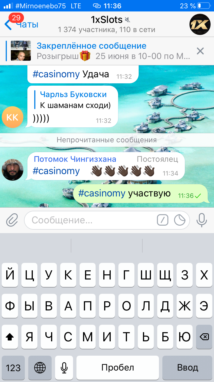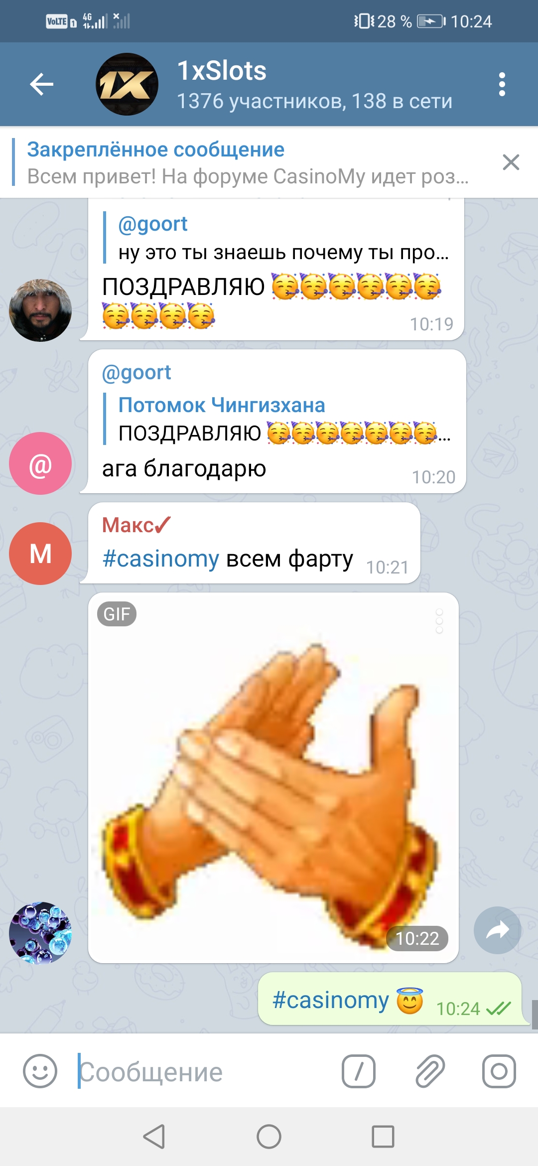 2) Быть подписанным на телеграмм канал казино 1xSlots https://t.me/onexslots и чат https://t.me/xslotschat, в телеграмм чате https://t.me/xslotschat написать любое сообщение с тегом #casinomy и разместить текст этого сообщения в этой теме вместе со скрином депозита.