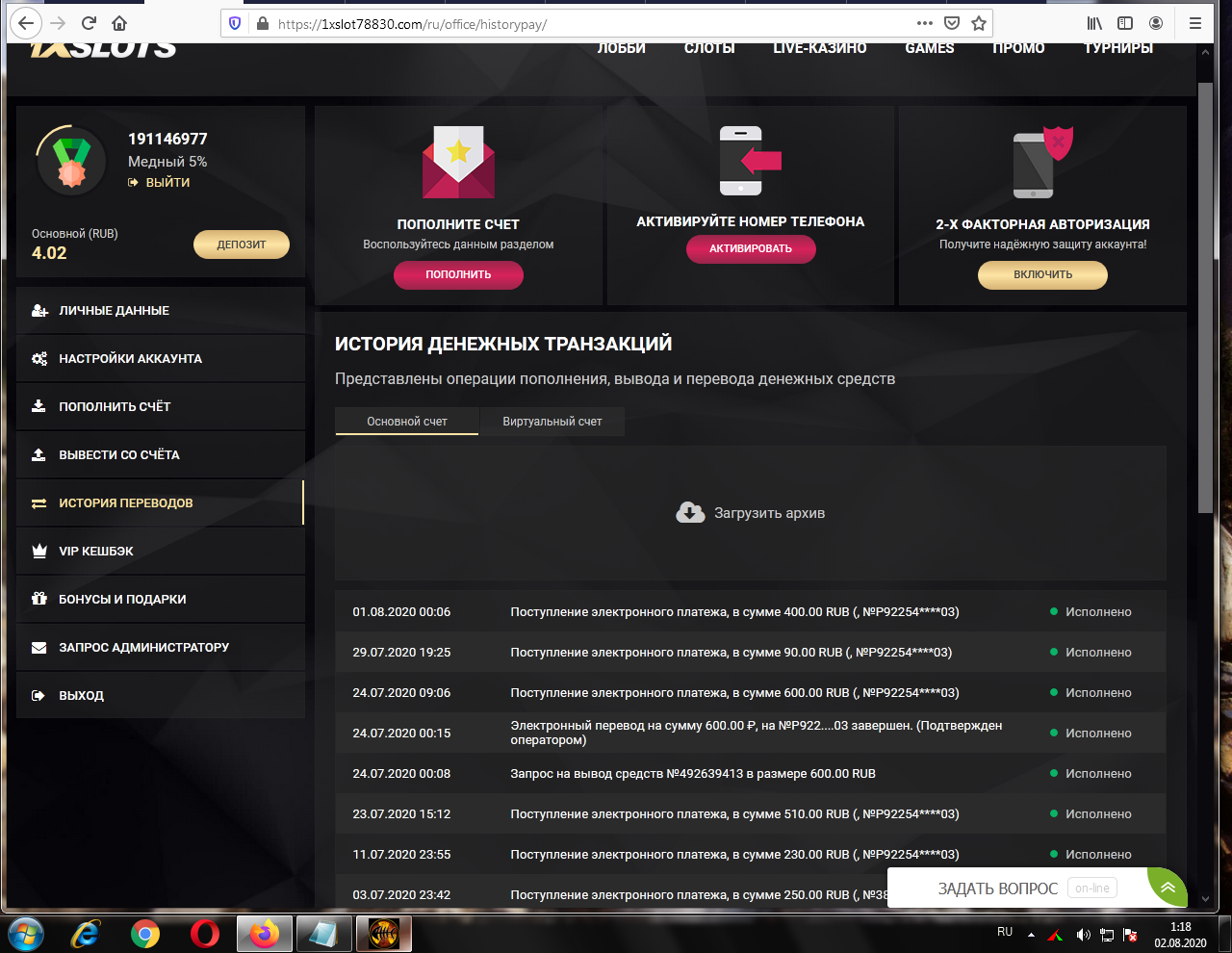 Условие для участия в розыгрыше - наличие депозитов в казино 1xSlots на сумму от 500р с 29 июля 2020 года, для подтверждения выкладываем в этой теме скрин.