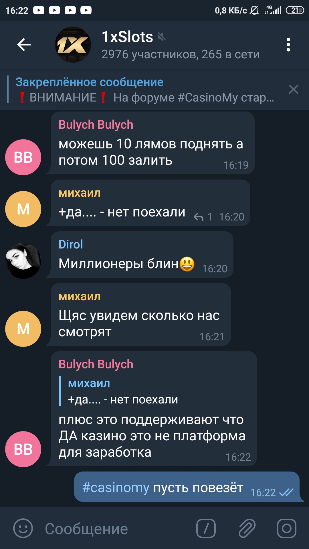 paradise3333333 Свидетель Заноса 23 Окт 2020 3 1 34 Credits ¢0 24 Окт 2020 #3,708 #Casinomy удачи всем еще раз пожелаю по жизни по факту по удаче..