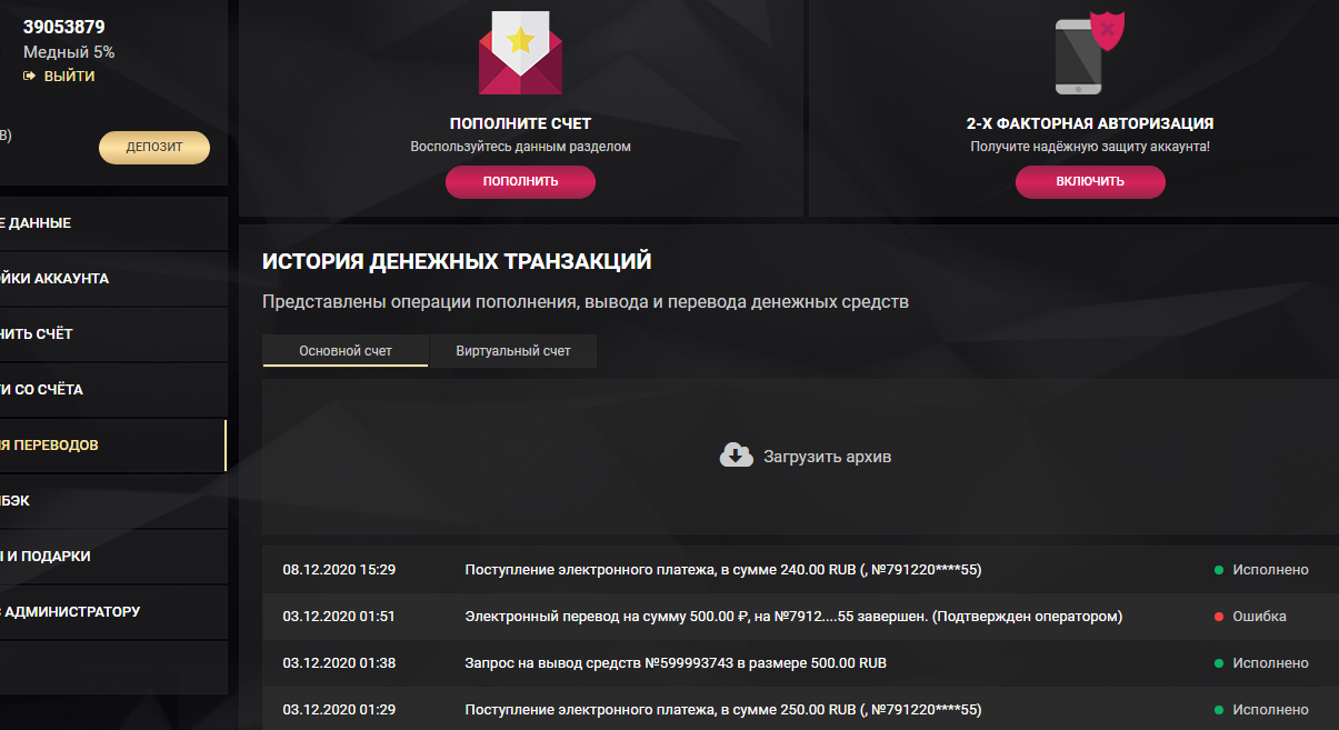 • отыгрыш: с реального счета •