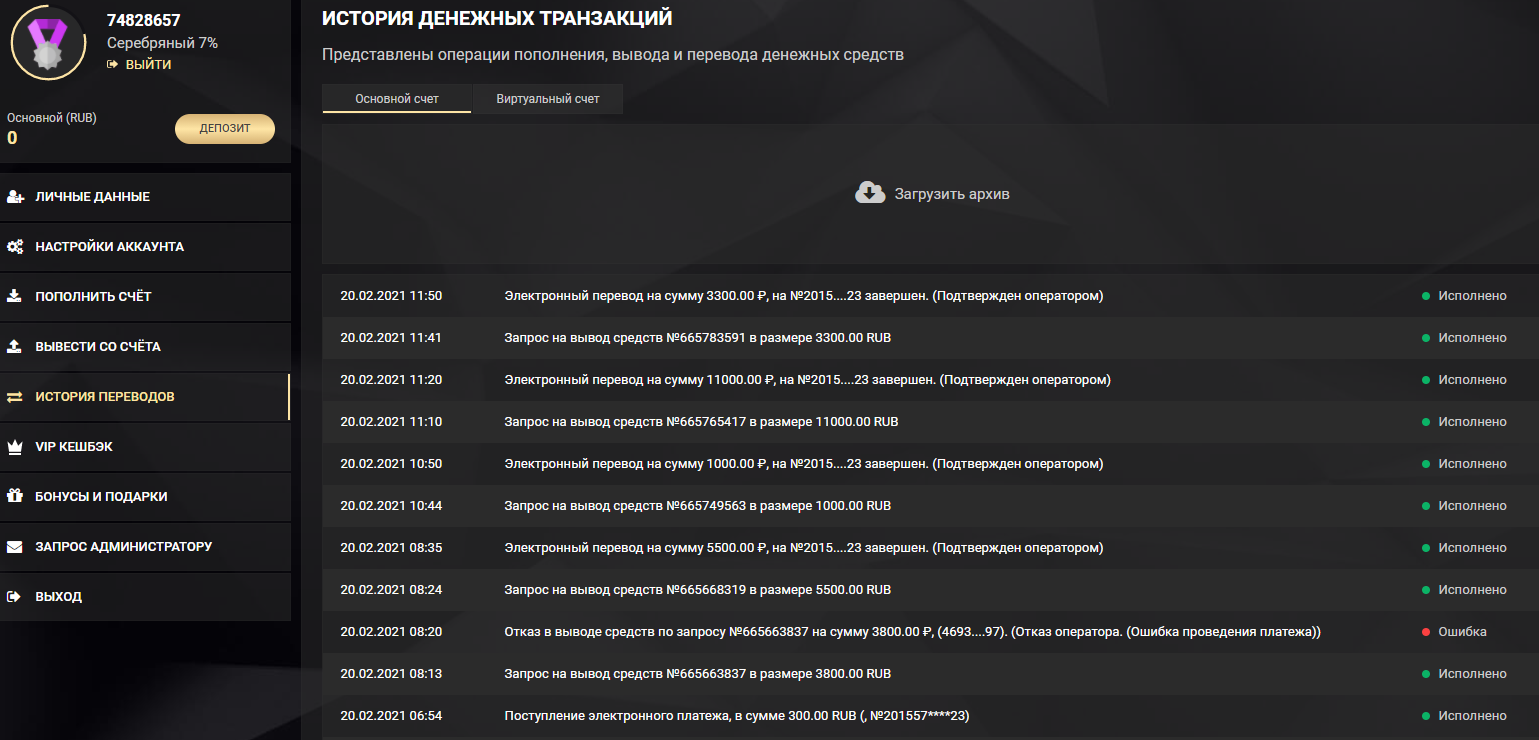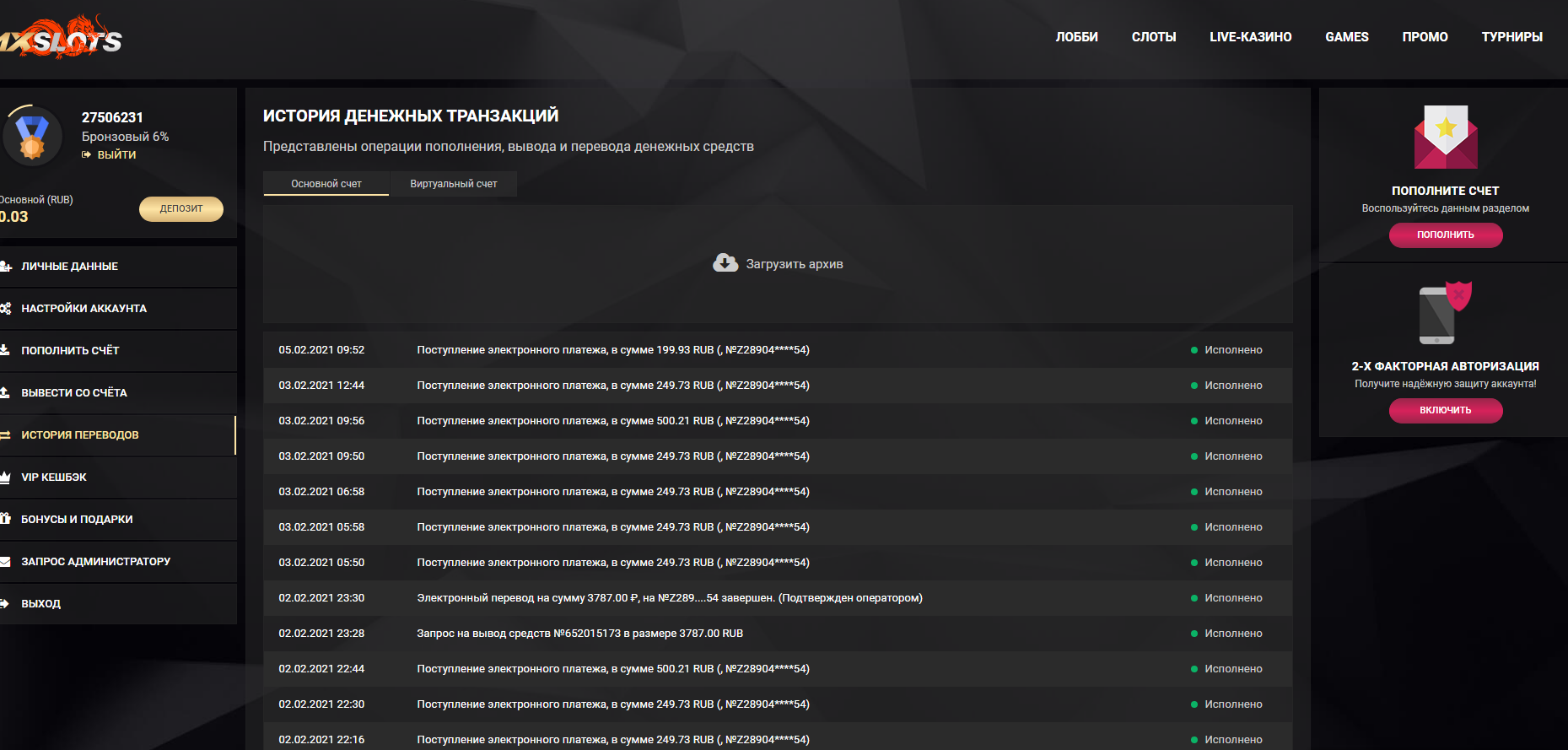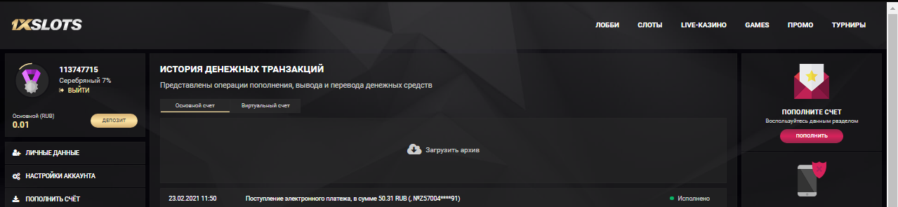 • отыгрыш: с реального счета •