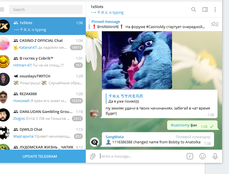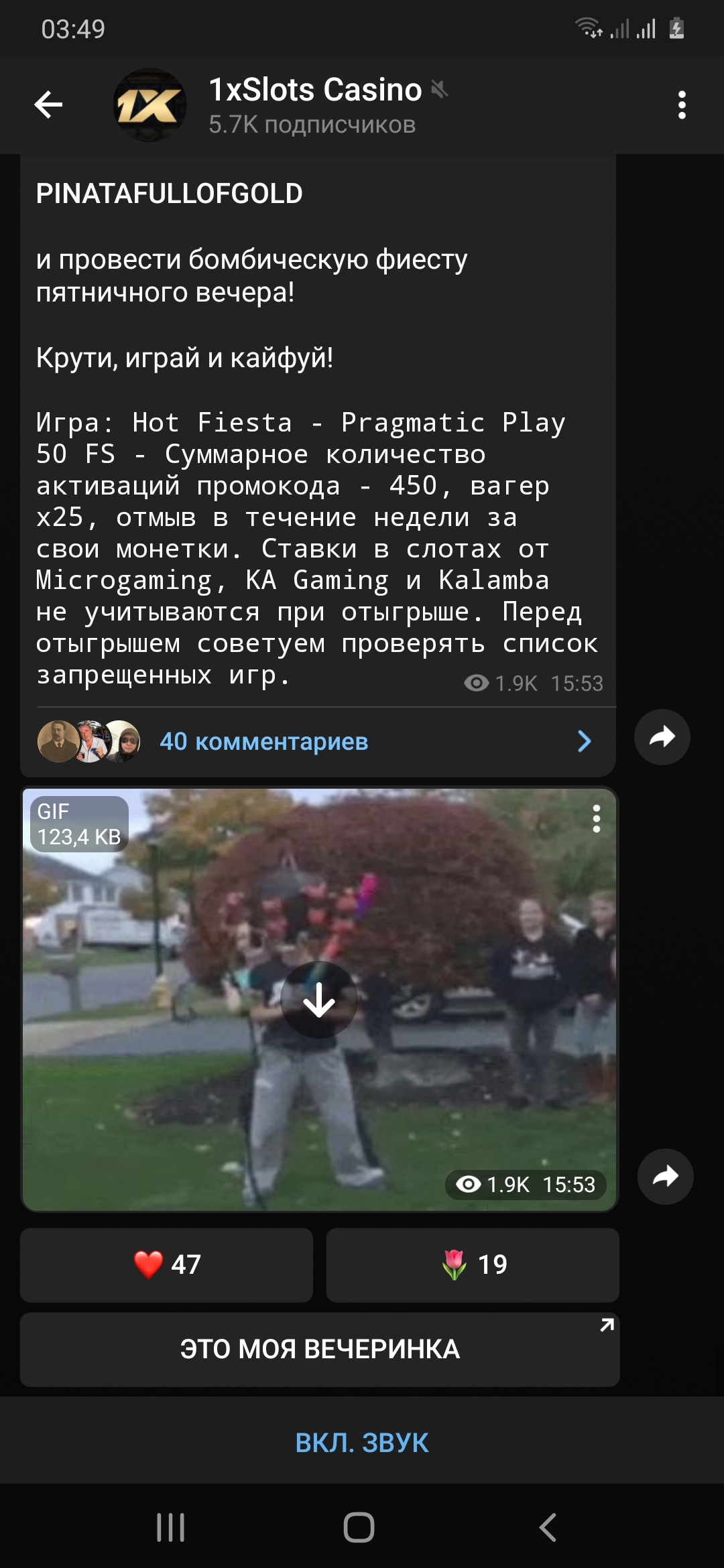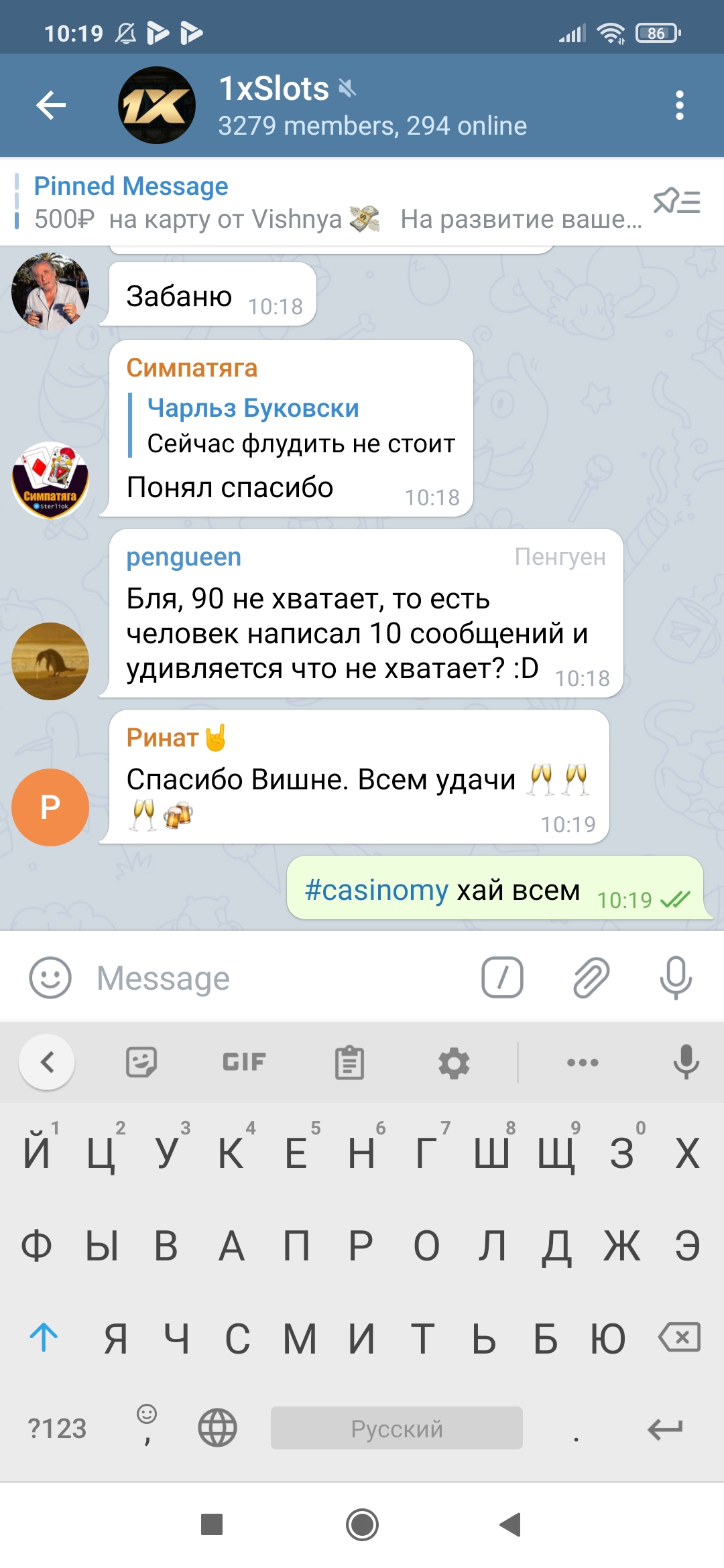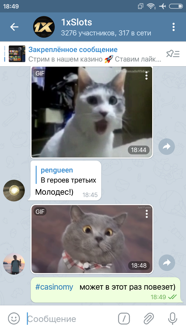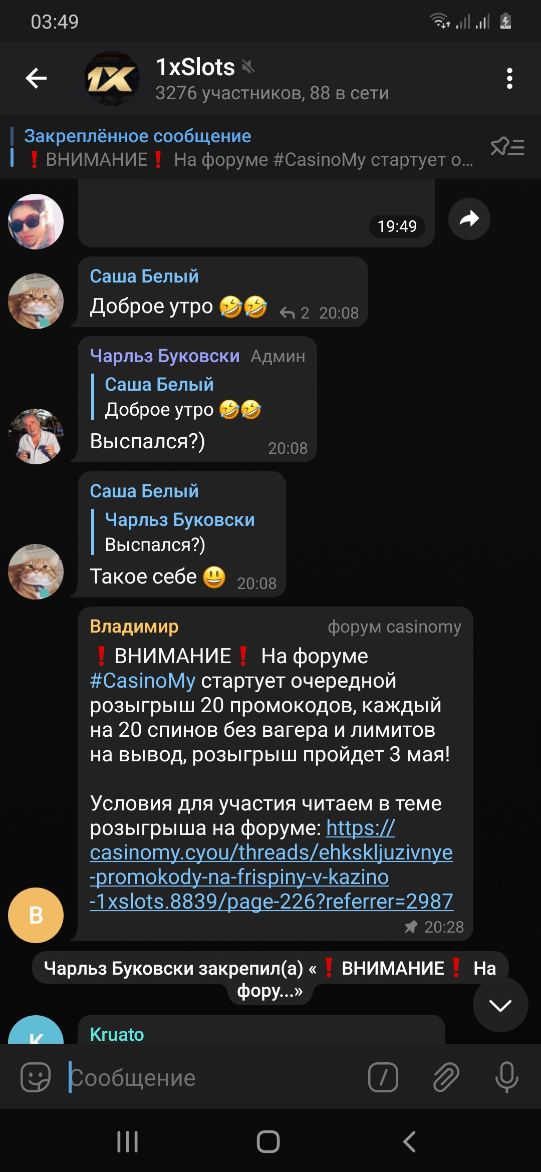 2) Быть подписанным на телеграмм канал казино 1xSlots https://t.me/onexslots и чат https://t.me/joinchat/TCG5aNJ_qCpI6SdO, в телеграмм чате https://t.me/joinchat/TCG5aNJ_qCpI6SdO