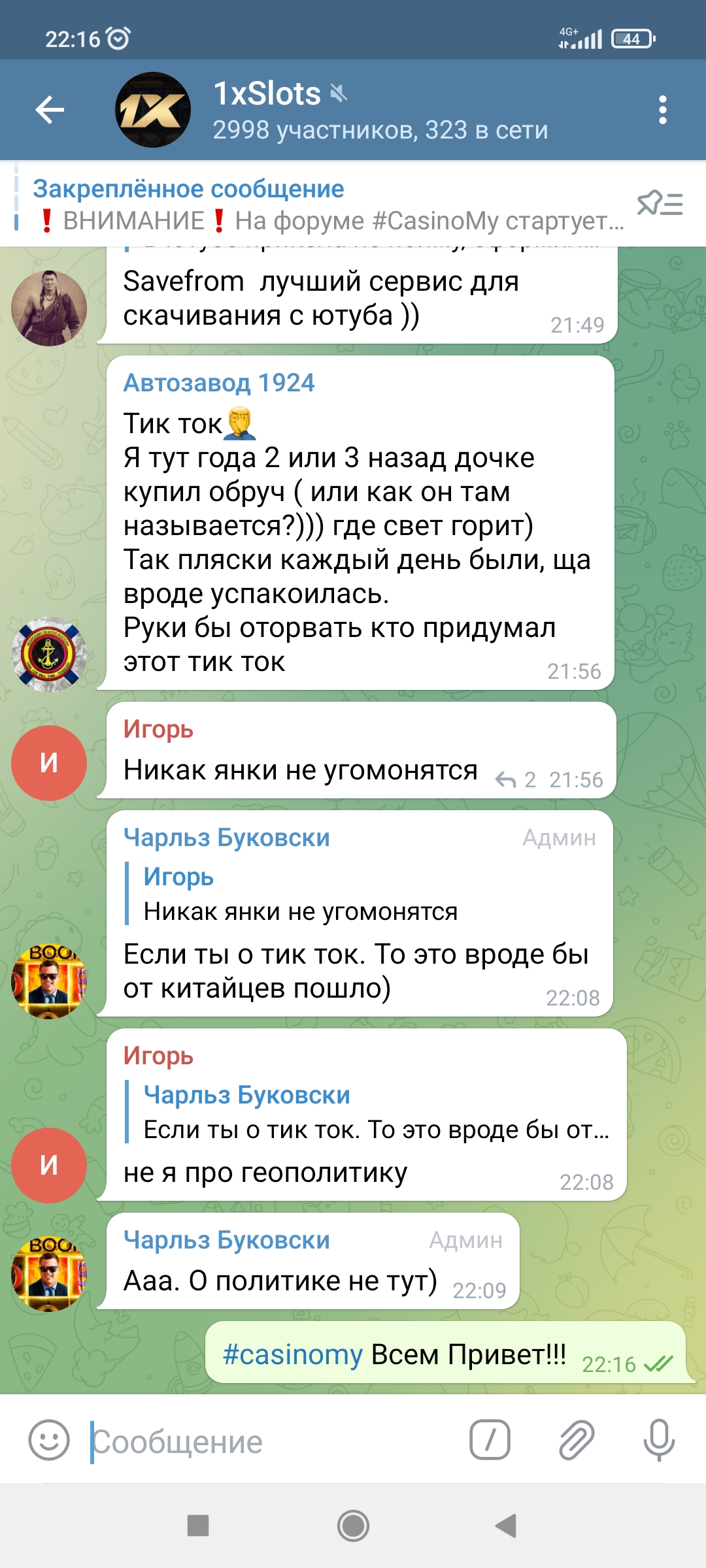 Brutto777 Ловец Скейтеров Проверенный 19 Авг 2020 199 33 40 Credits ¢349 24 Янв 2022 #5,305 Участвую 295239103 Вложения Screenshot_2022-01-24-22-17-03-299_org.xbet.slots.jpg 380 KB Просмотры: 161 Screenshot_2022-01-24-22-16-26-257_org.telegram.messenger.jpg 754.8 KB Просмотры: 153