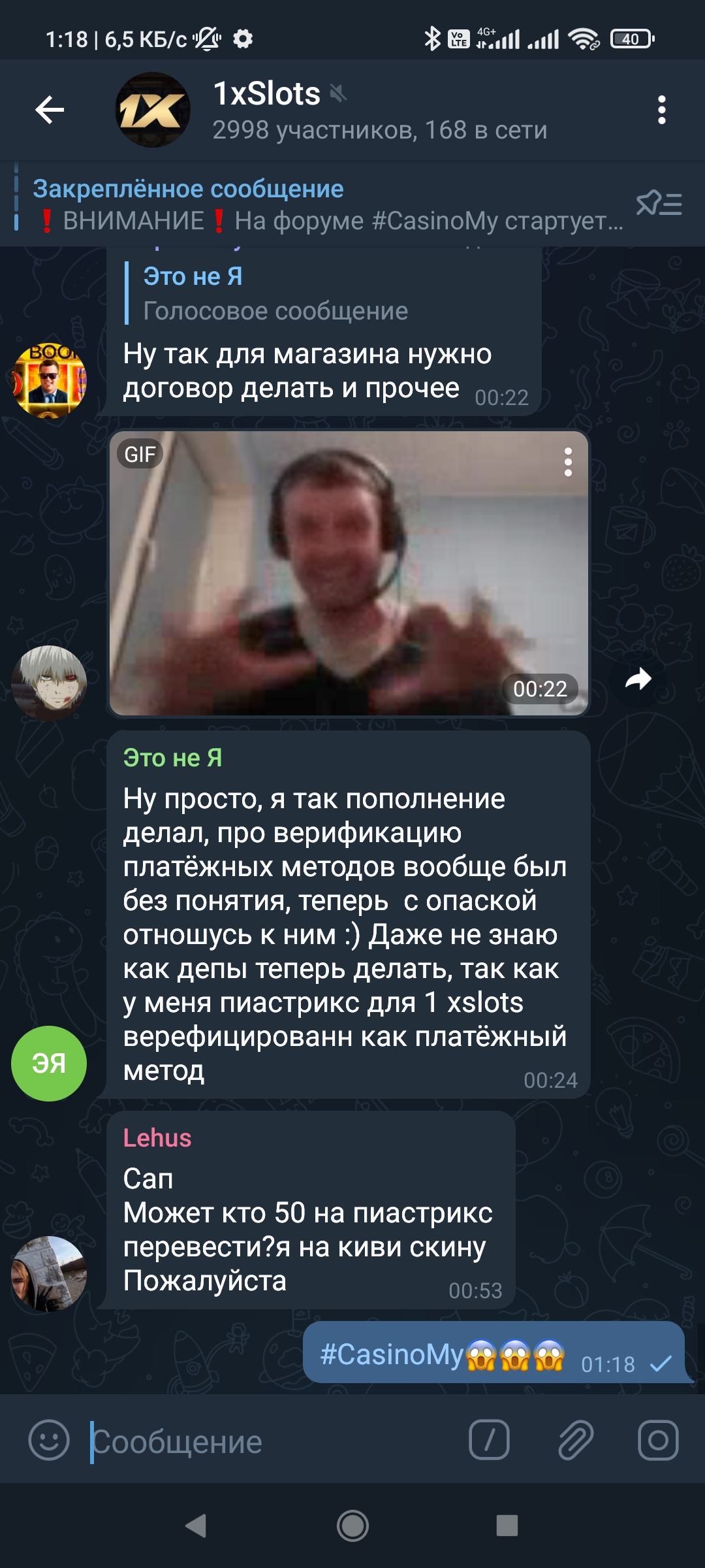 A Anna90 Свидетель Заноса 13 Дек 2021 13 3 35 Credits ¢0 25 Янв 2022 #5,311 #casinomy Участвую 329377643 Вложения Screenshot_20220125_045006_org.telegram.messenger.jpg 386.2 KB Просмотры: 162 Screenshot_20220125_044935_com.huawei.browser.jpg 280.3 KB Просмотры: 155
